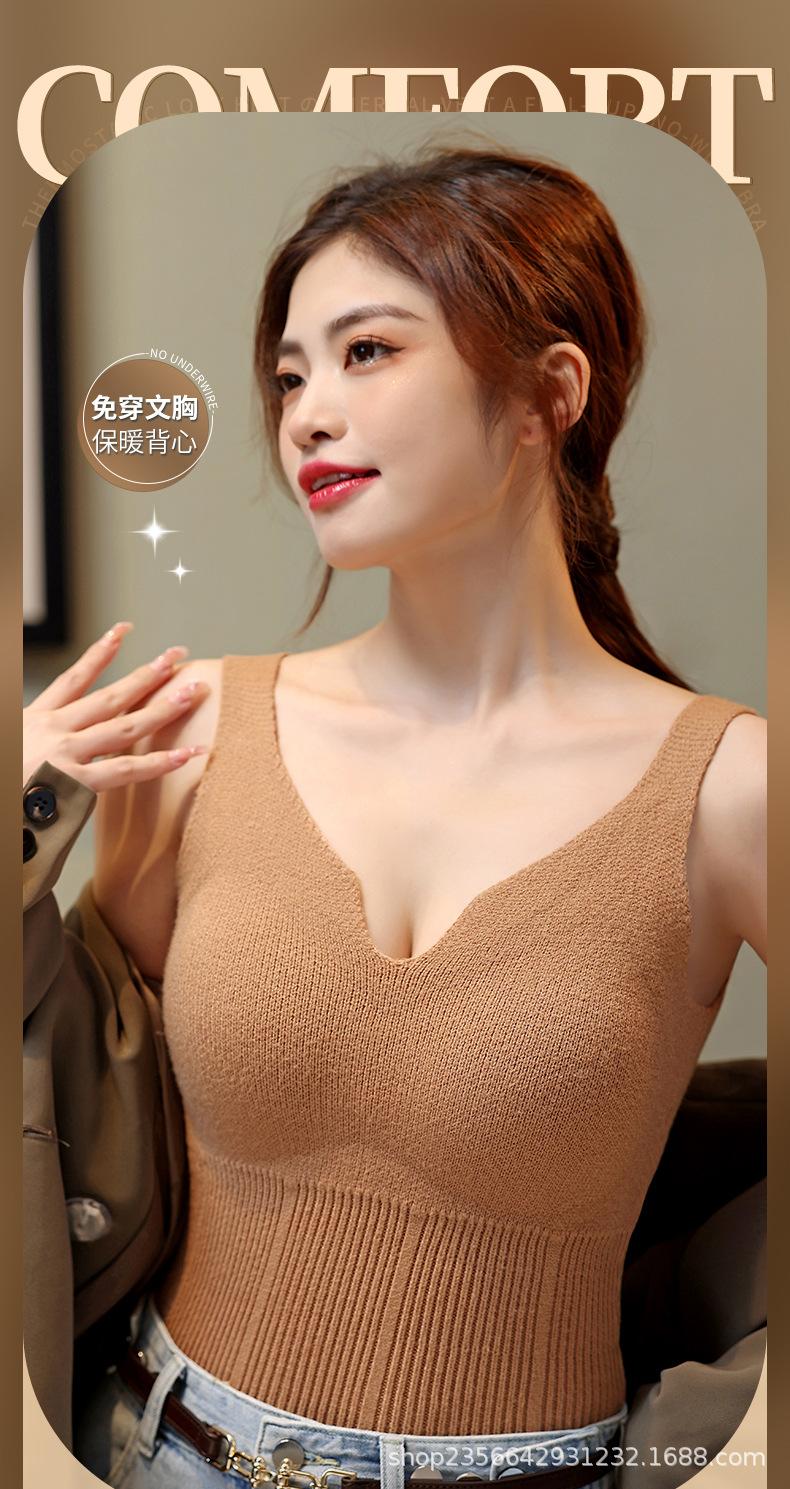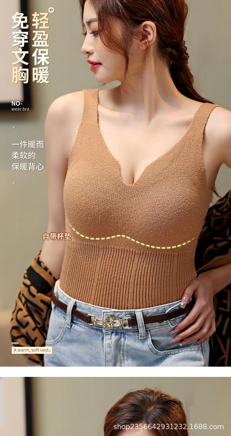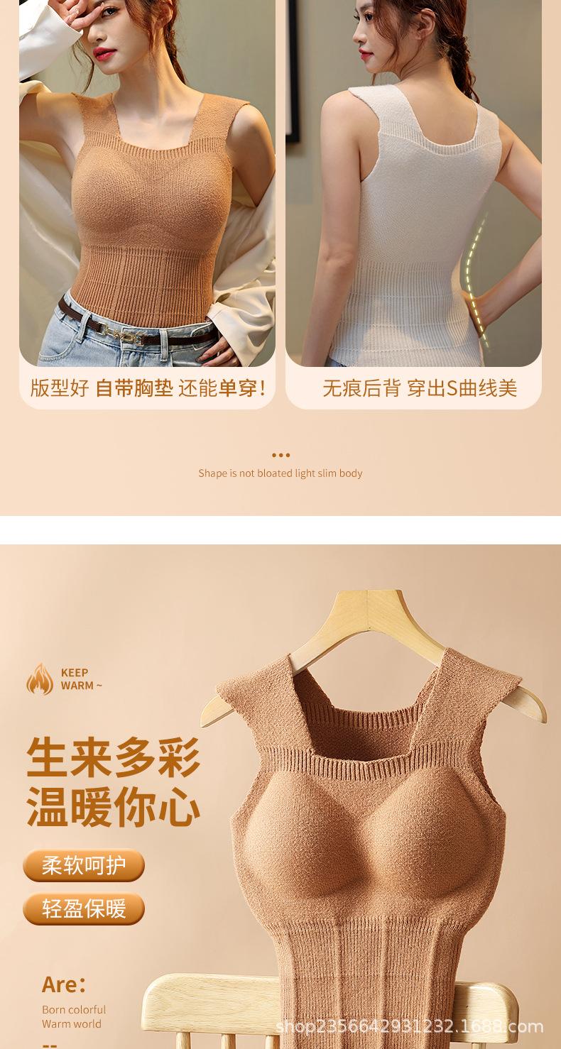 Camiseta interior térmica de otoño e invierno, chaleco térmico para mujer, corte ajustado adelgazante, cuello en V con almohadilla en el pecho, ropa interior para llevar debajo, ropa exterior, ropa interior térmica sin costuras