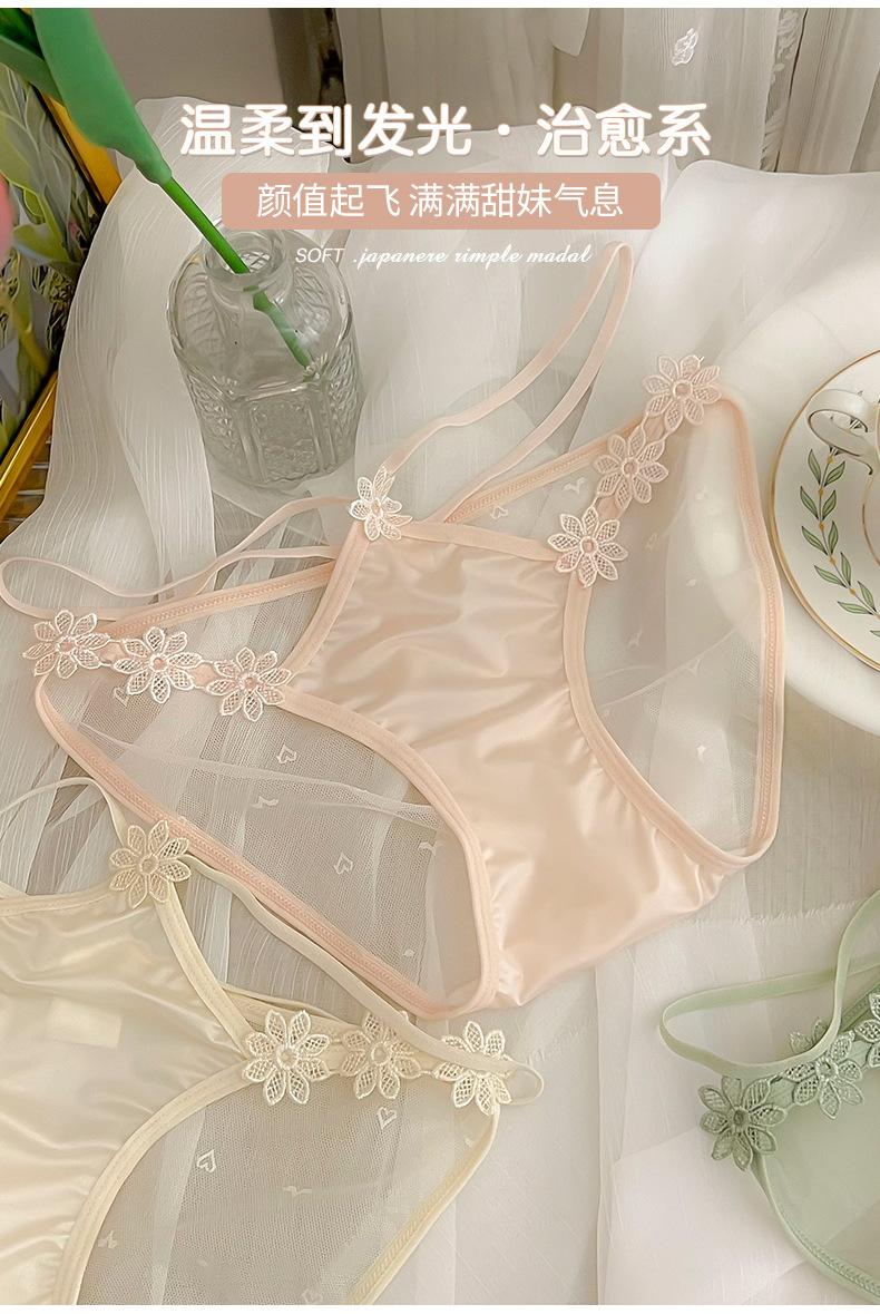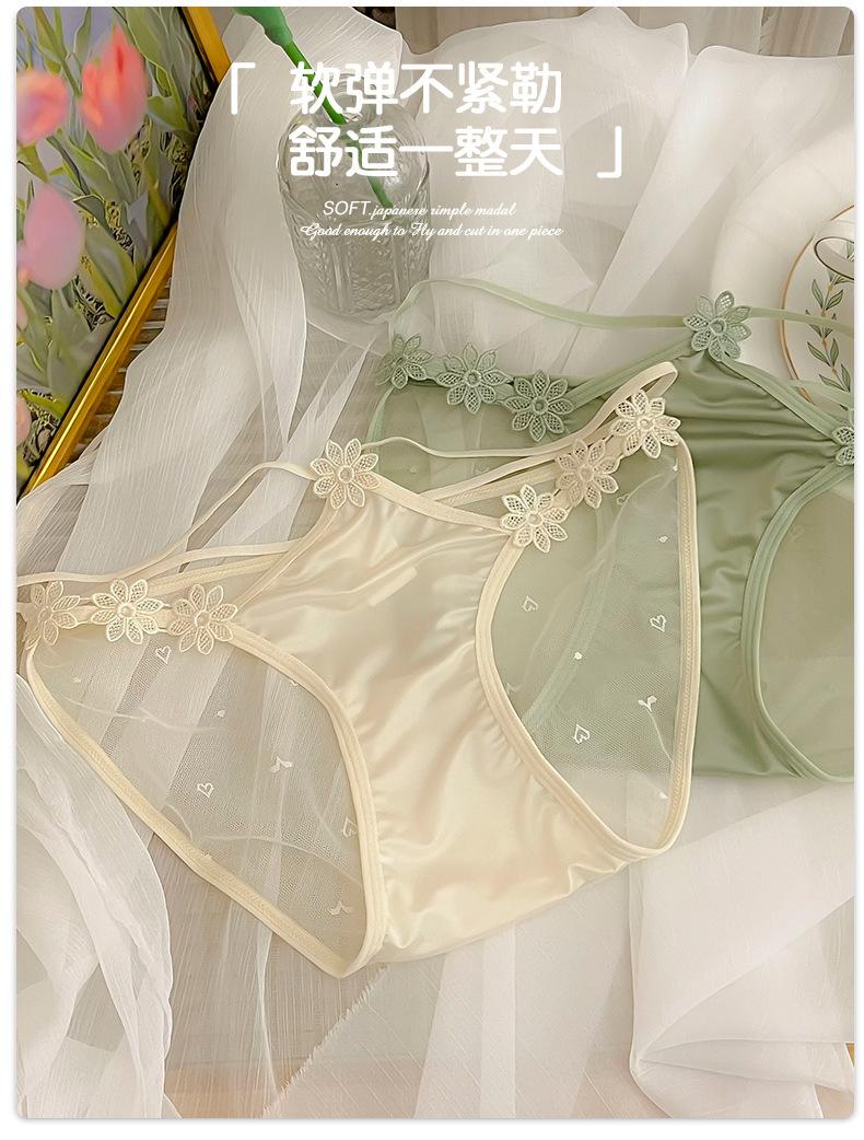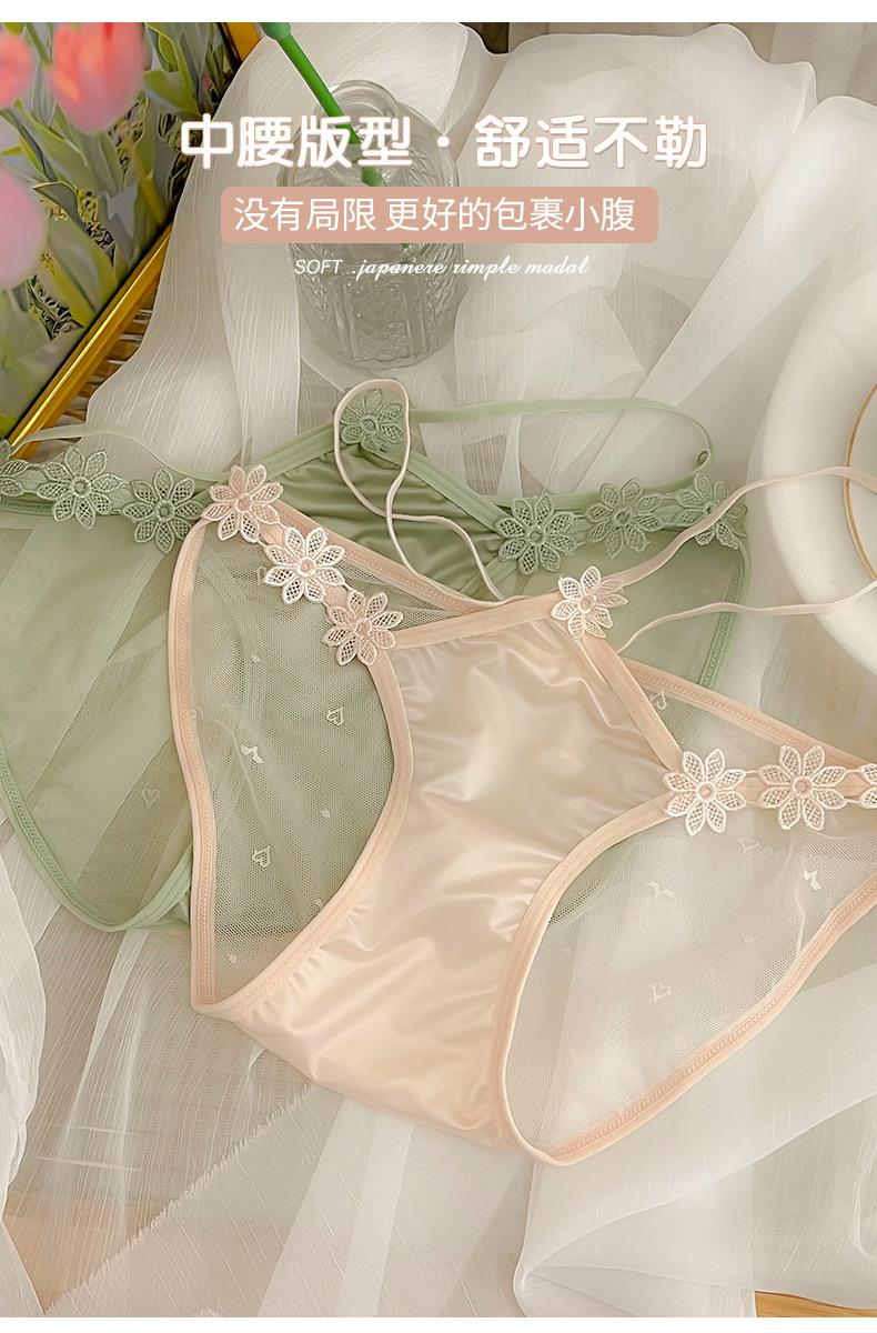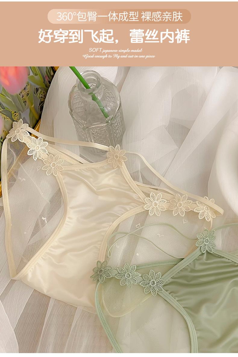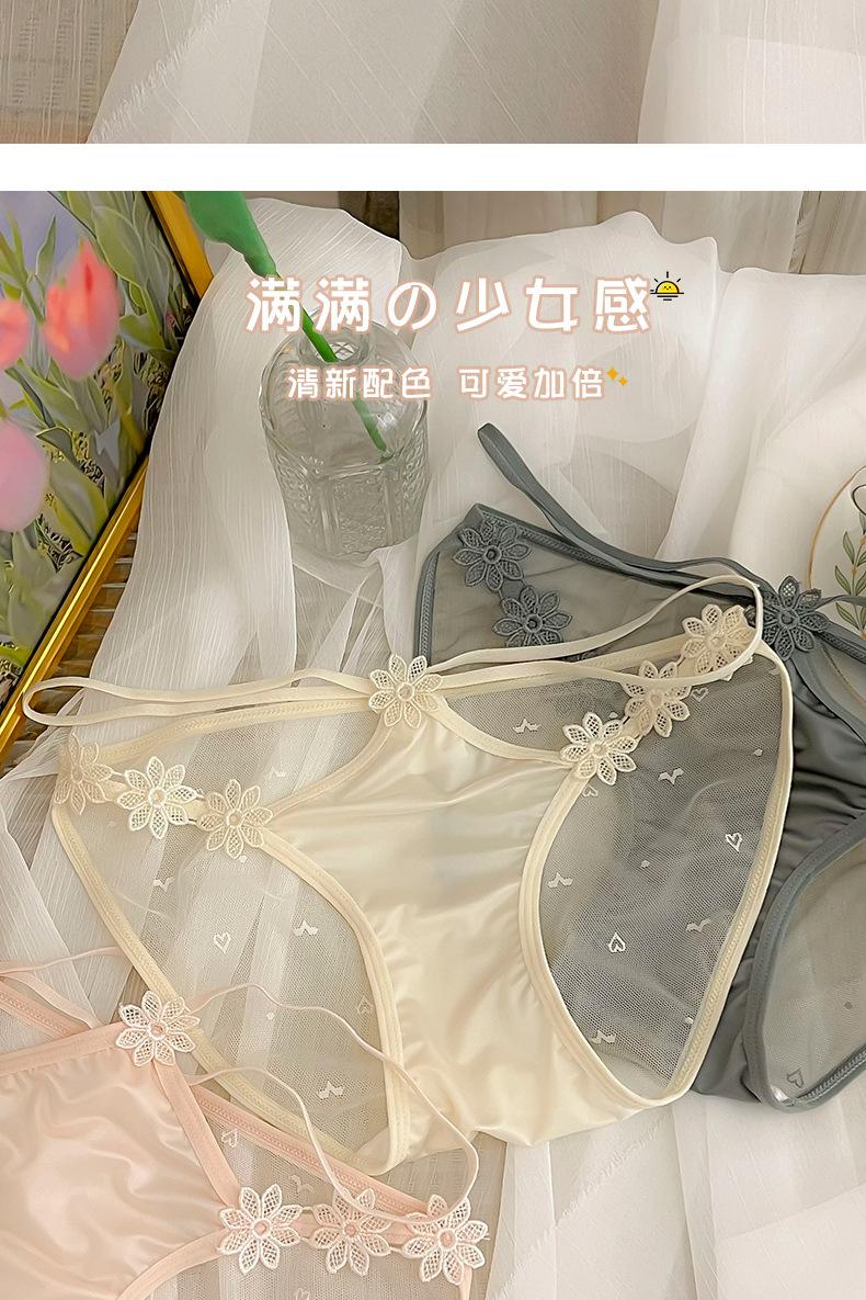 Ropa interior de encaje puro y sexy para niñas, novedad de verano 2023, bragas de cintura baja transpirables y cómodas de malla fina.
