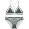 Gran Venta Venta Sexy Francés Delgada Ropa Interior para Mujer Transpirable Botón Frontal Hermosa Espalda Copa Triángulo Chica Encaje Conjunto de Brasier