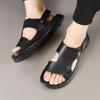 | Sandalias de piel de oveja de primera capa para hombre, zapatos de playa de cuero genuino para exteriores, sandalias casuales de cuero para papá de mediana edad, novedad de verano |