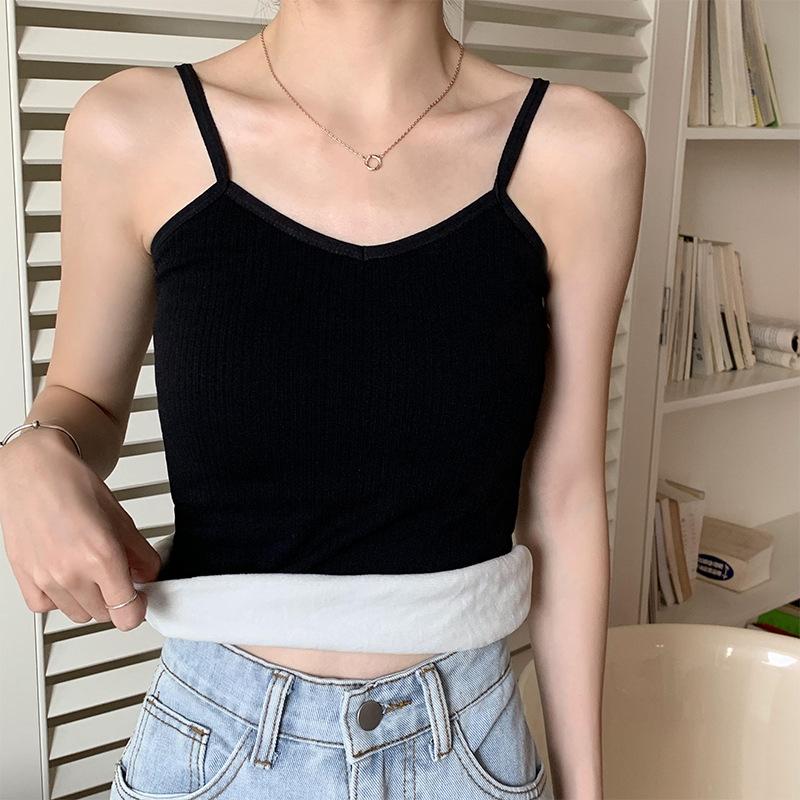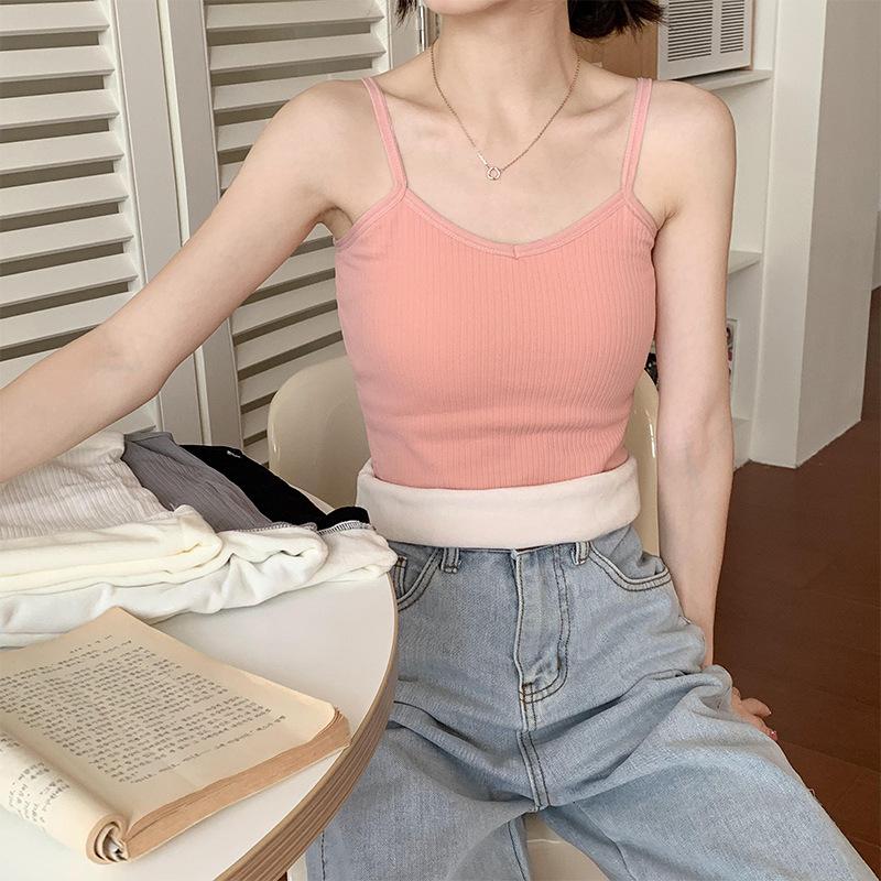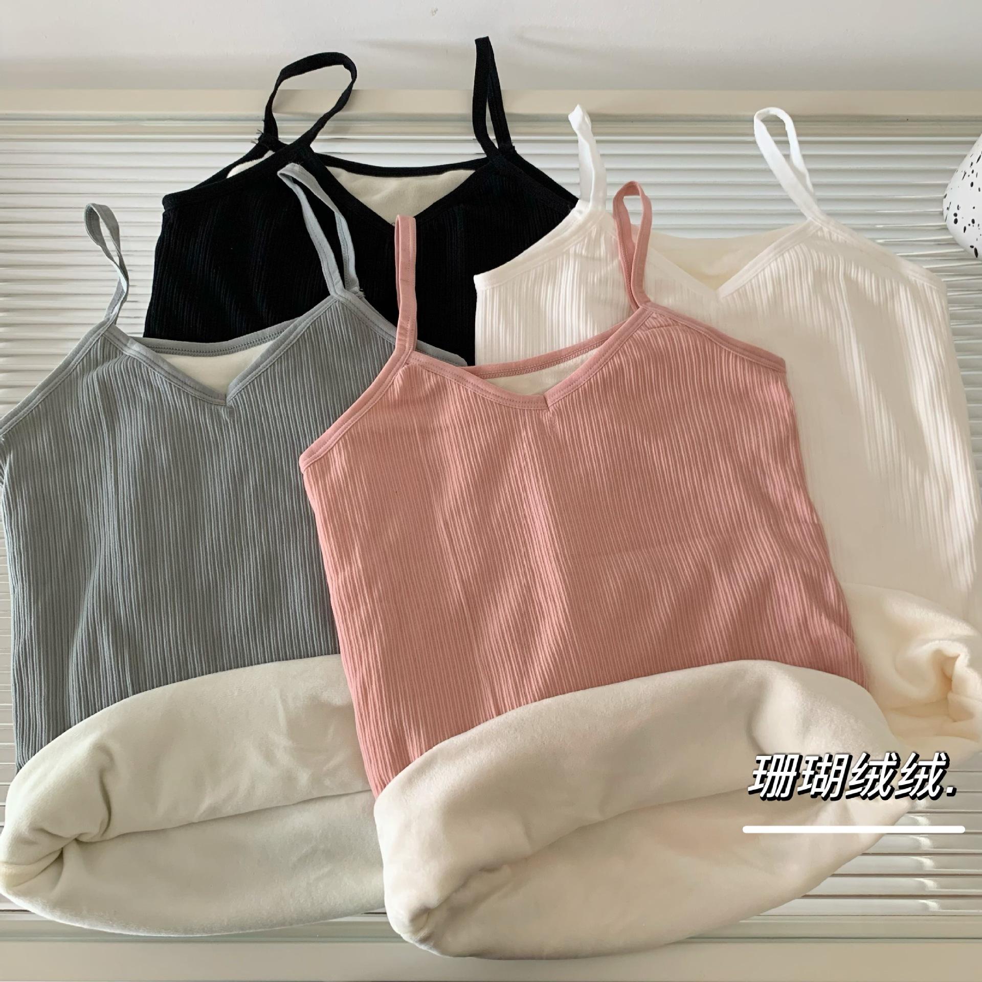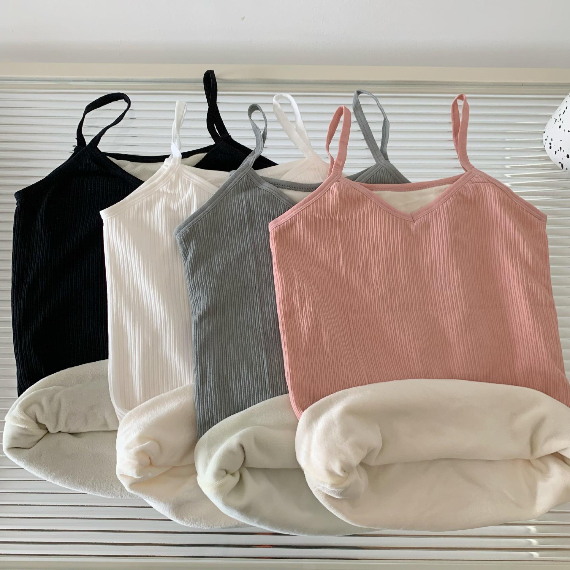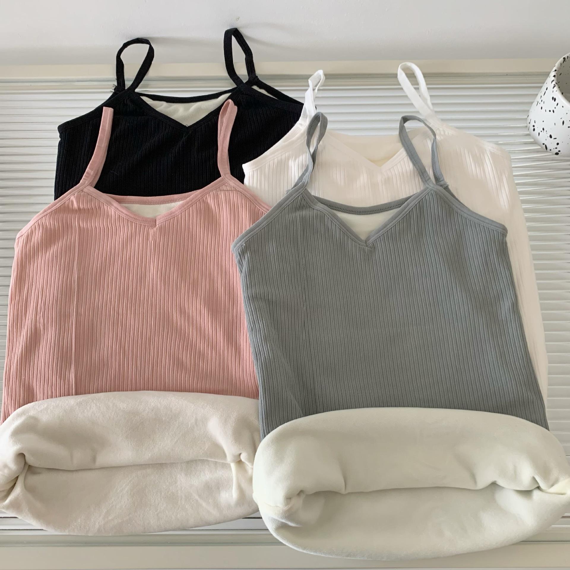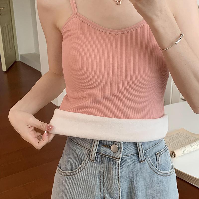 Camiseta interior térmica de vellón de color sólido, chaleco térmico, top de tubo, otoño, cepillado, ligero, ropa exterior, tirantes de alta elasticidad, ropa interior térmica para mujer
