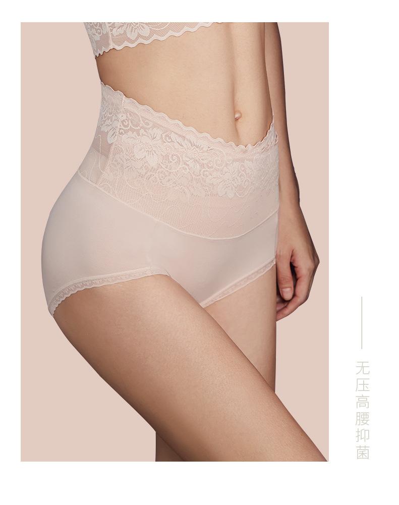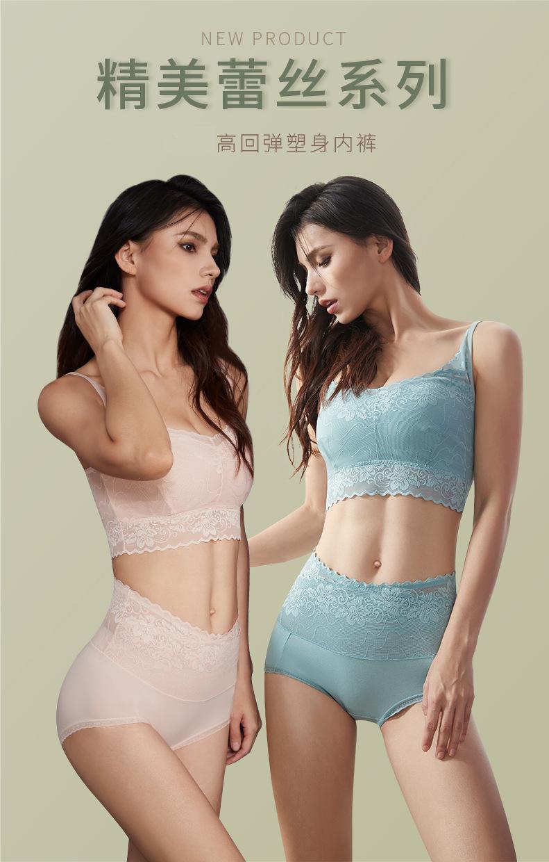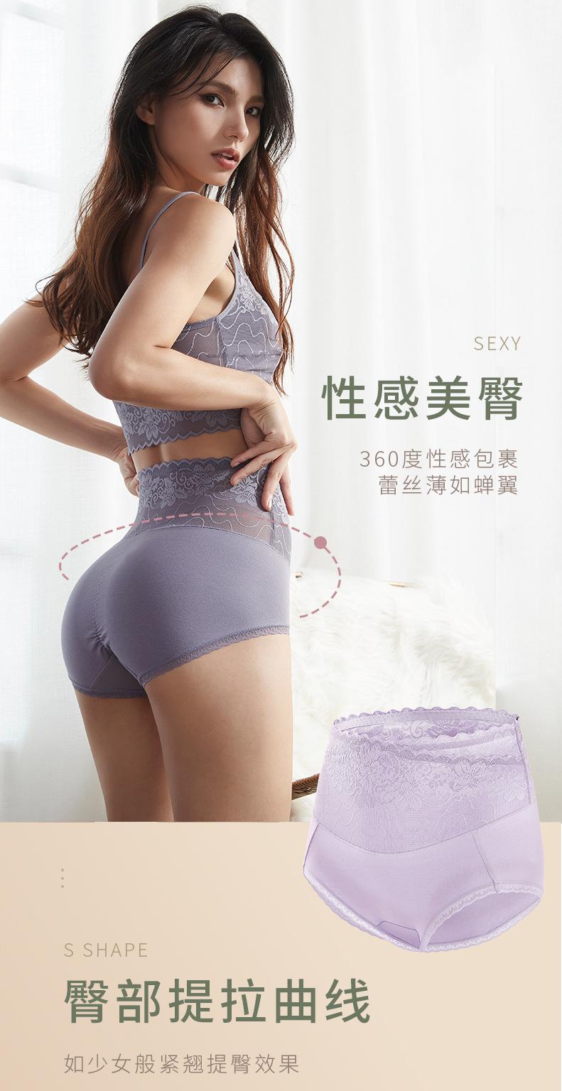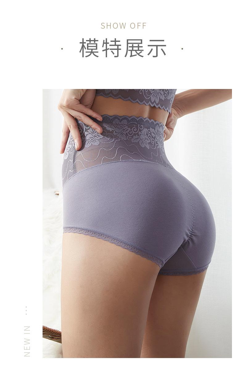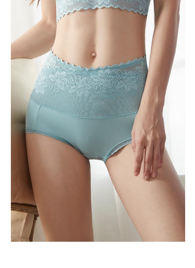 Ropa interior de cintura alta con encaje sexy, transpirable, antibacteriano, de algodón, con entrepierna de talla grande para mujer, con contracción del vientre cruzado, para chica gordita