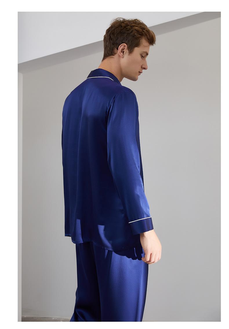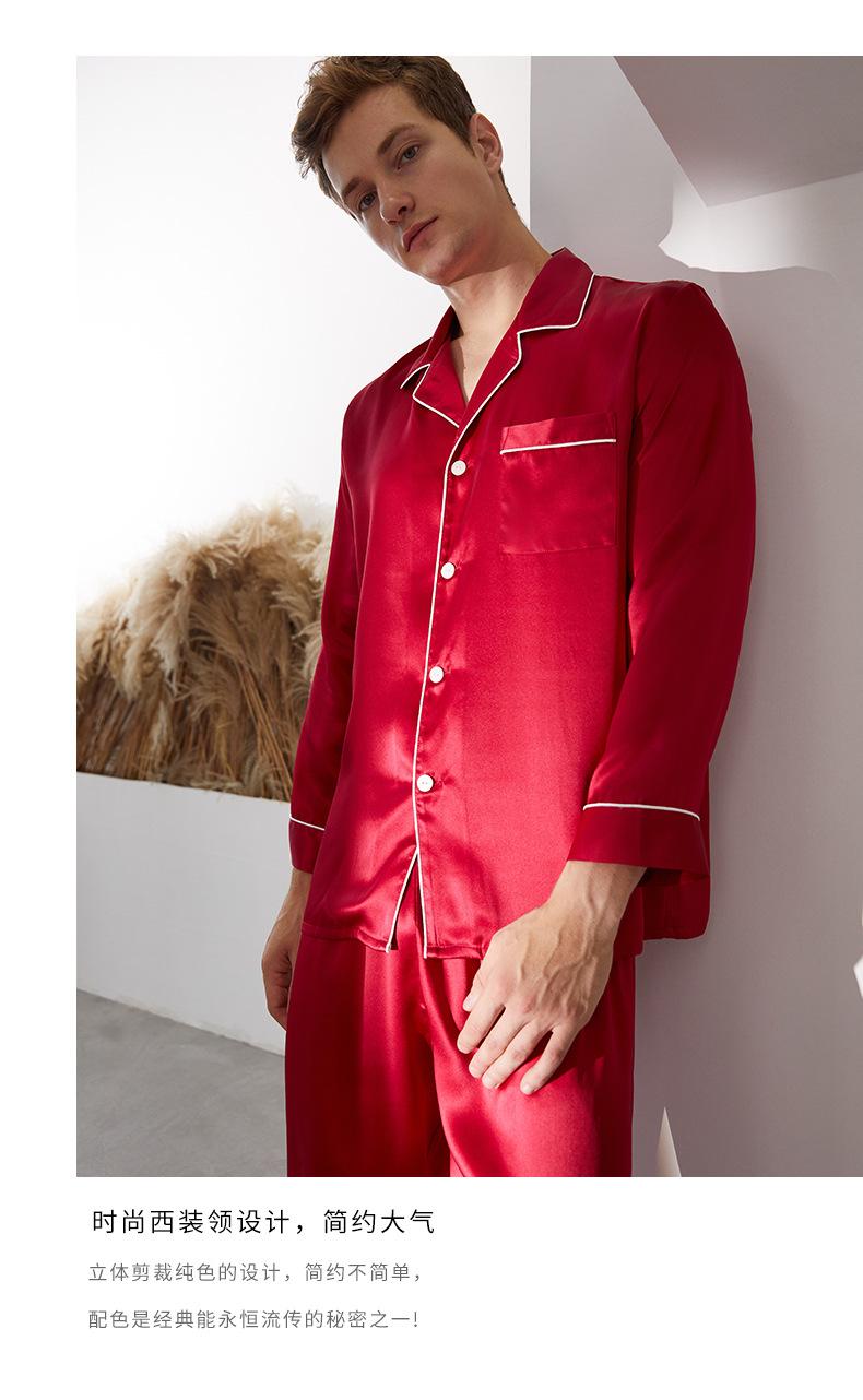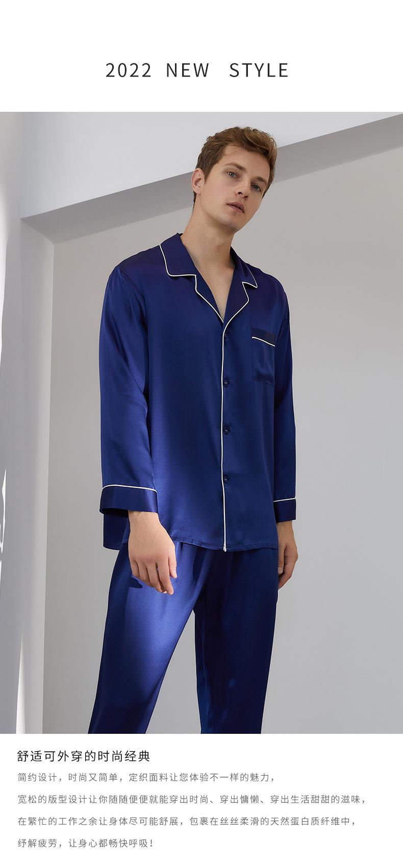 Pijama de seda pesada personalizado para hombre, 100 % seda morera, manga larga, pantalón, traje para parejas, ropa cómoda para el hogar