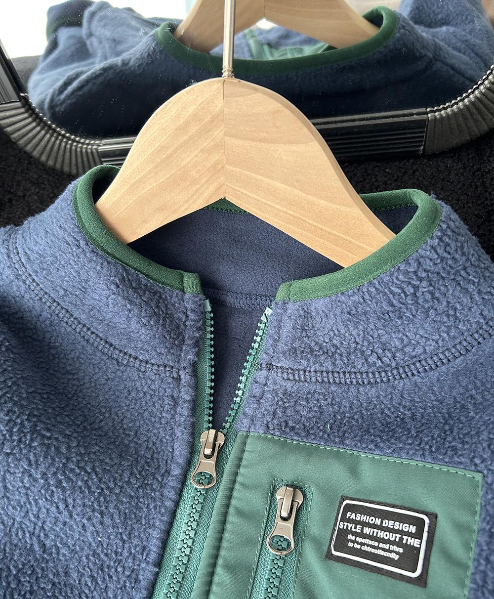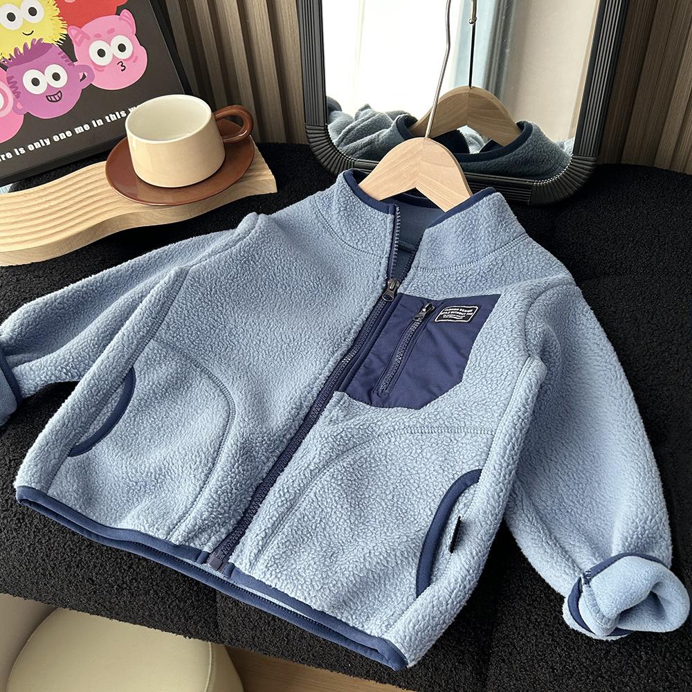 Ropa infantil de otoño e invierno 2023, chaqueta polar de lana de cordero para niños medianos y grandes, abrigo cálido acolchado de algodón al por mayor