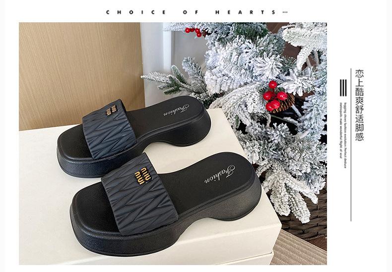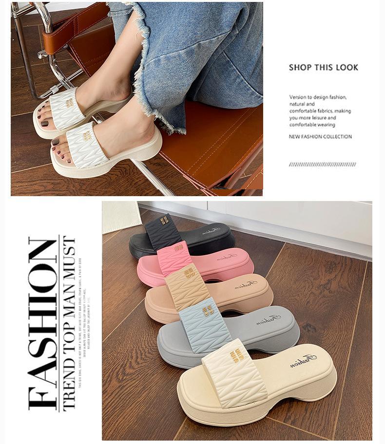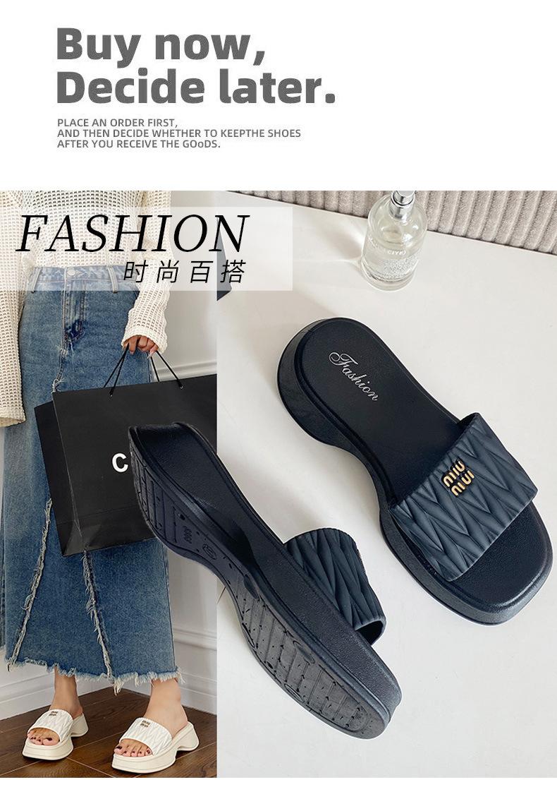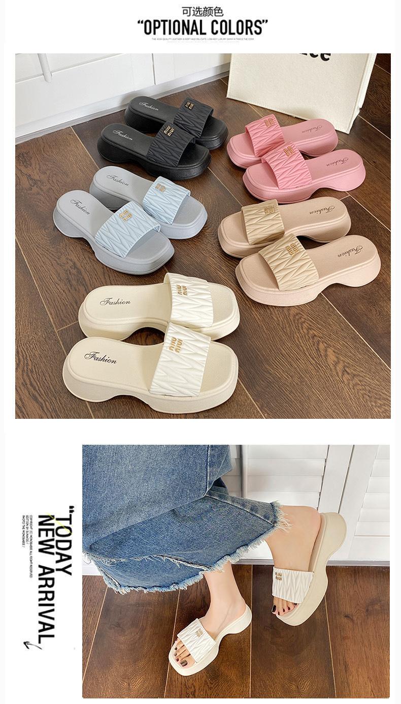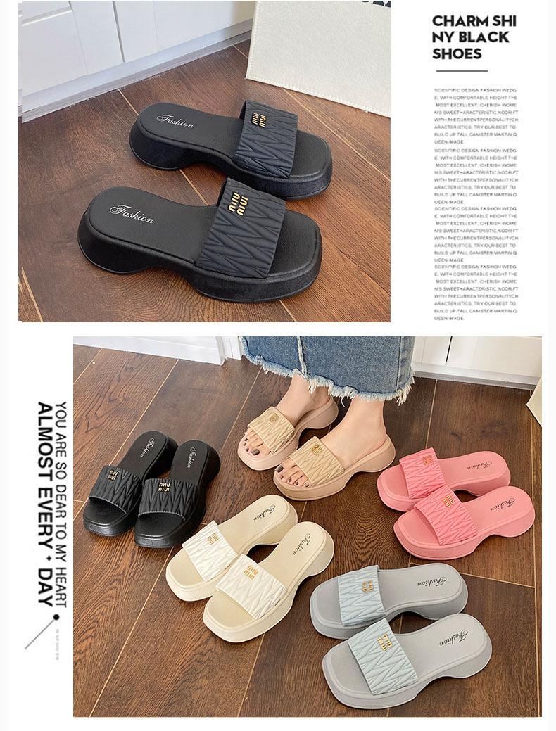 Zapatillas Populares Transfronterizas de Suela Gruesa Verano Nuevo Negro Versátil Zapatillas Verano para Mujer para Exterior Plantillas Transpirables Transpirables y Ligeras
