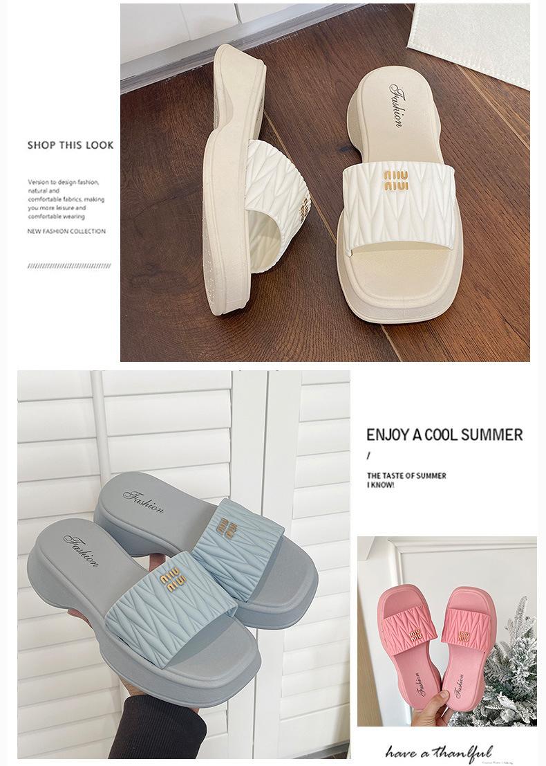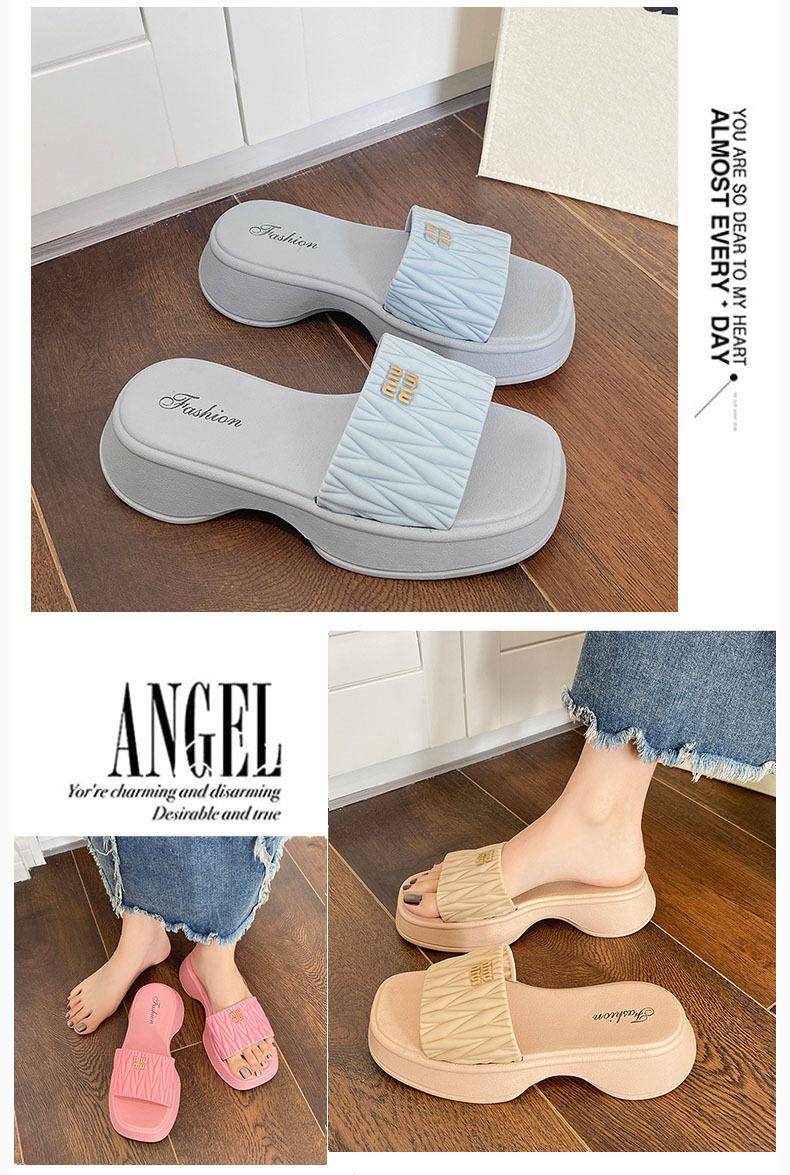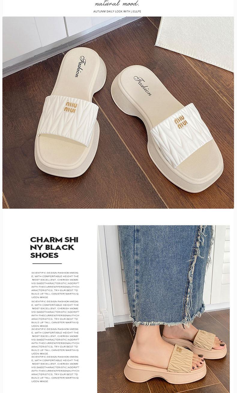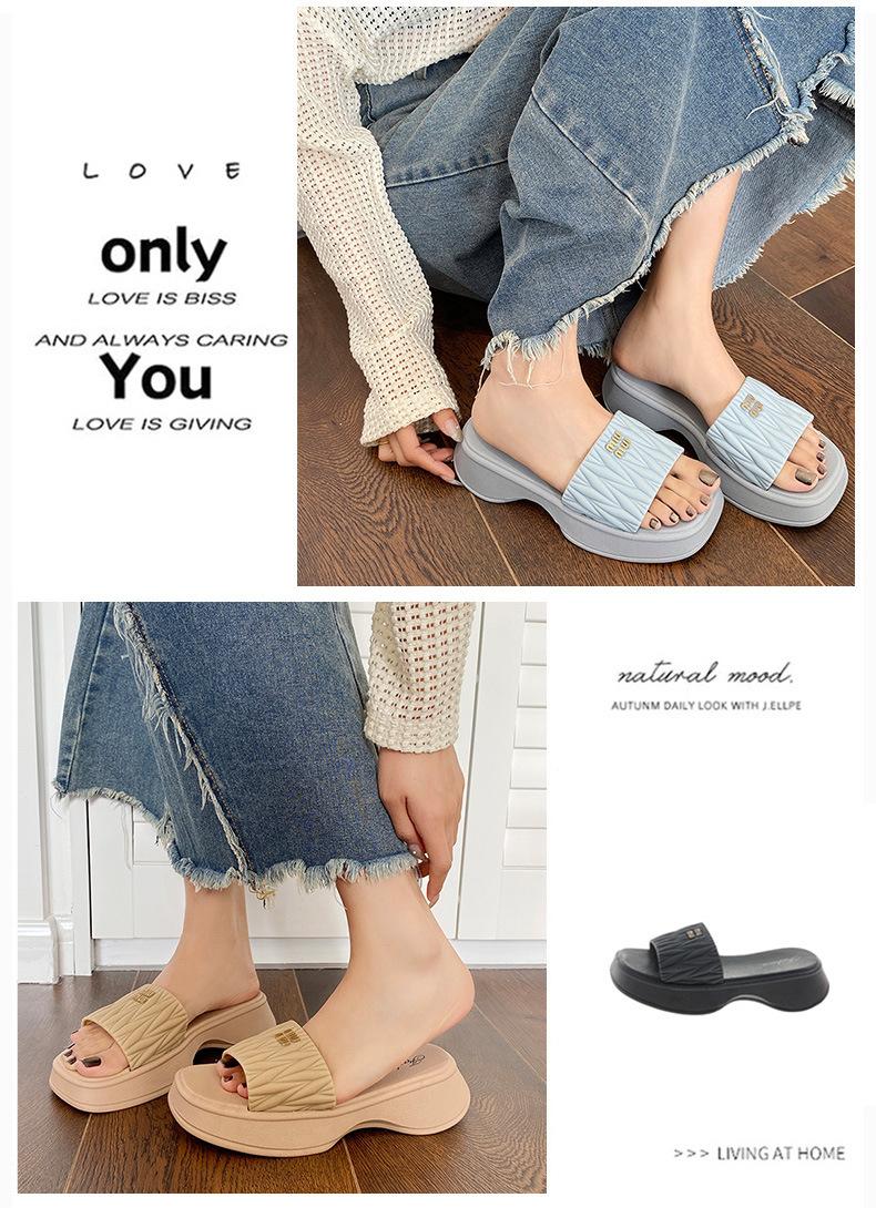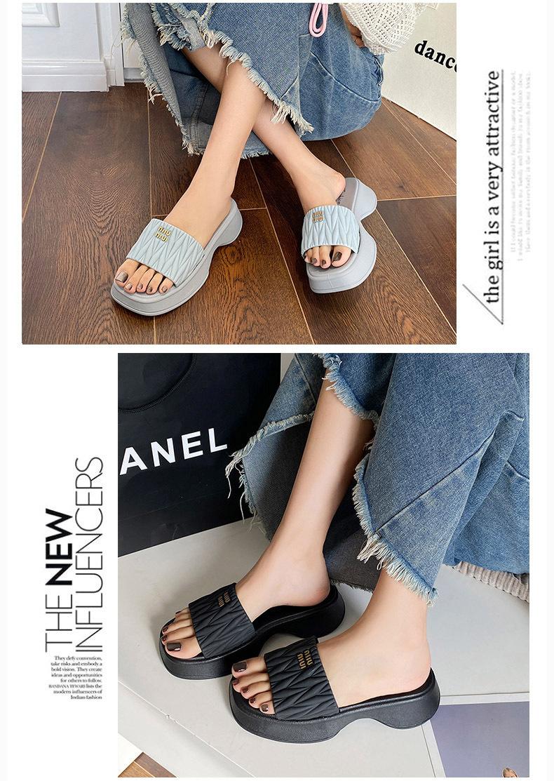 Zapatillas Populares Transfronterizas de Suela Gruesa Verano Nuevo Negro Versátil Zapatillas Verano para Mujer para Exterior Plantillas Transpirables Transpirables y Ligeras
