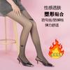 Leggings Invierno Ilusión Pierna Desnuda Faux Sheer Negro Térmico para Mujer con Forro Polar Medias Gruesas con Letras Color Piel