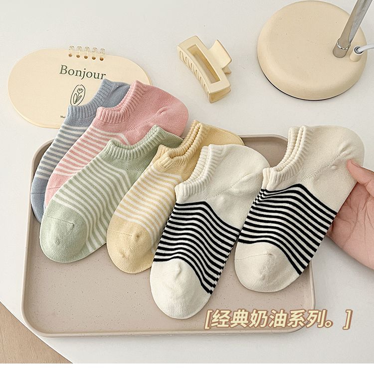 Calcetines náuticos de verano para mujer, invisibles, con desodorante, absorbentes del sudor, para primavera, combinables con todo, con estampados japoneses de rayas sencillas para mujer.