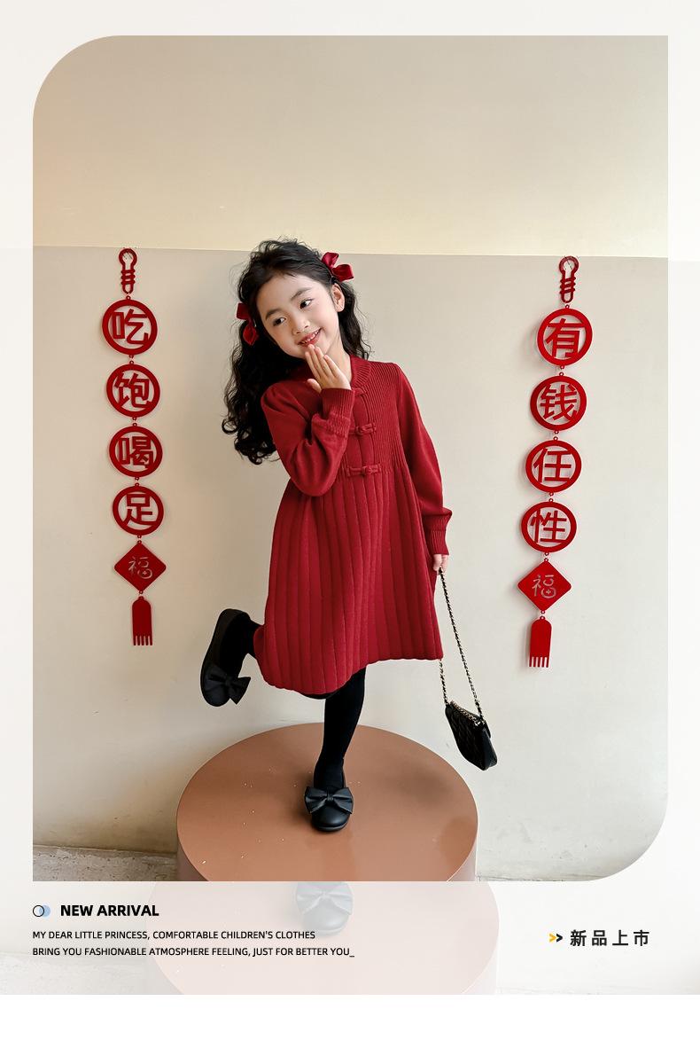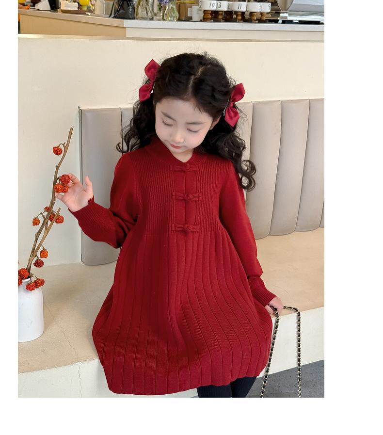 Ropa de Año Nuevo para Niñas Vestido Rojo Festivo Otoño e Invierno 2025 Nuevo Cheongsam Infantil Vestido de Princesa Ropa de Año Nuevo