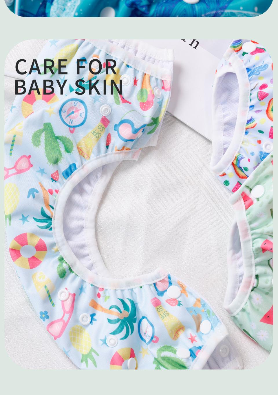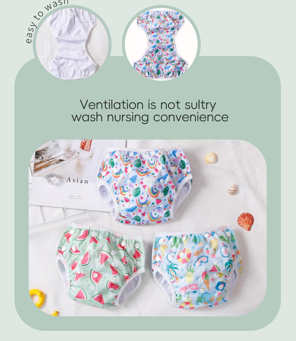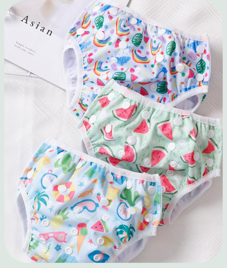 Pañales de tela lavables y ajustables para bebé, estilo veraniego refrescante, para playa y natación, paquete de 3, adecuados para bebés de 0 a 2 años