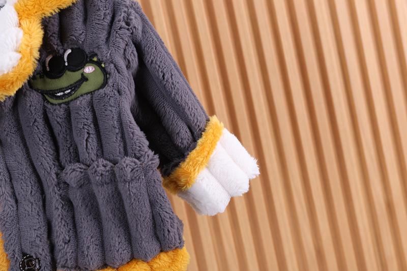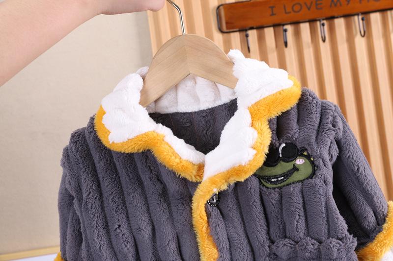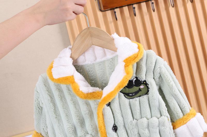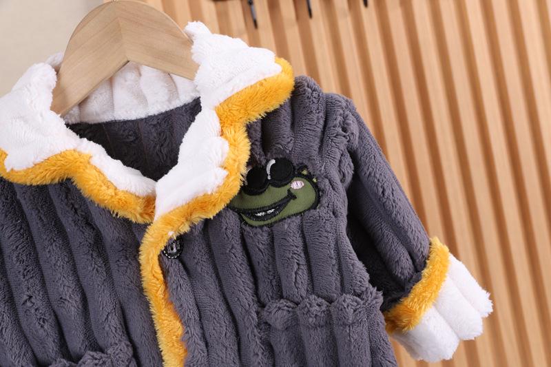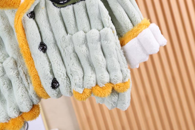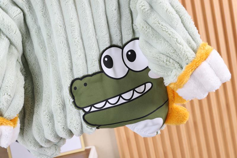 Cárdigan con forro polar de dinosaurio de dibujos animados para niños, traje de casa, otoño e invierno 2023, nuevo pijama cálido de manga larga para niños y niñas