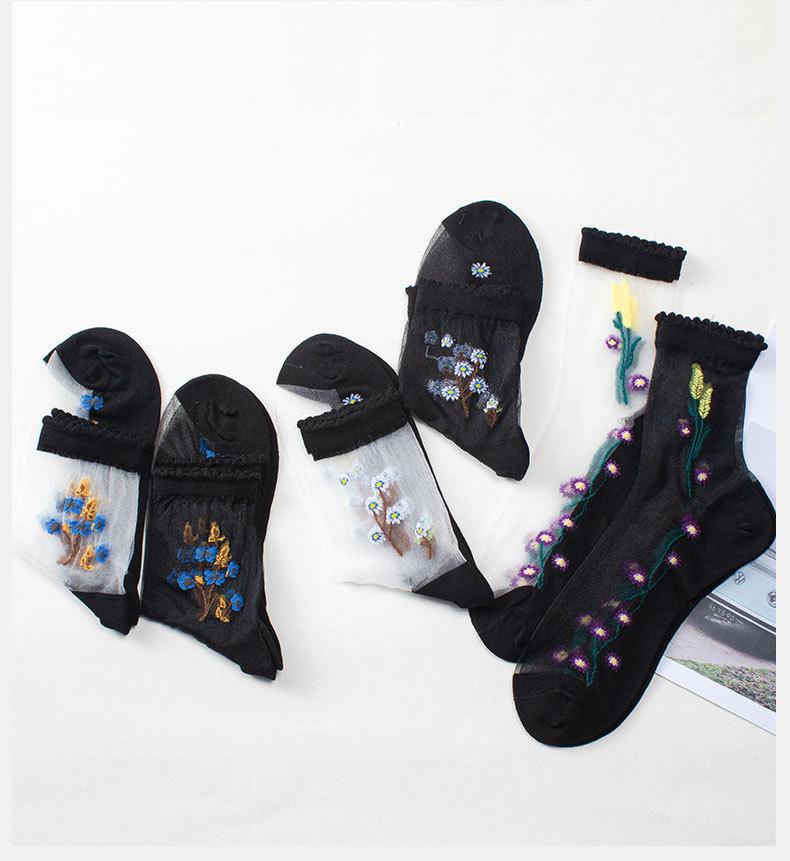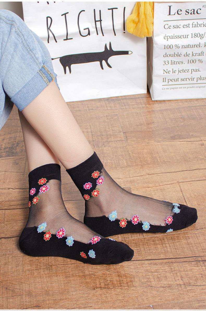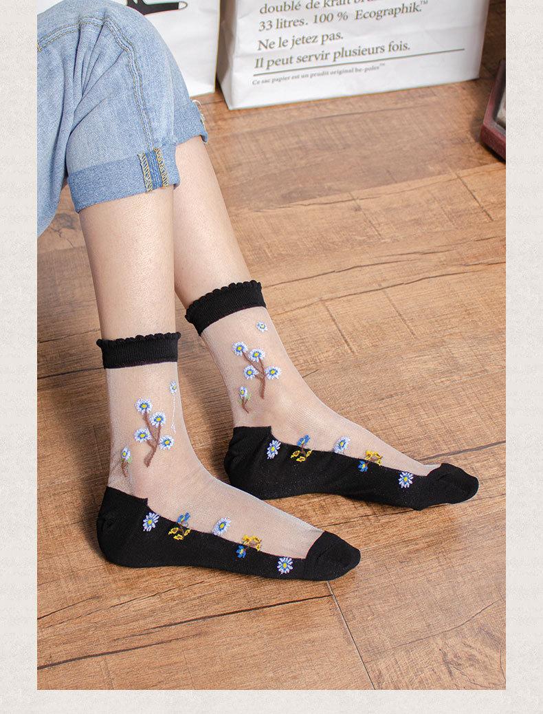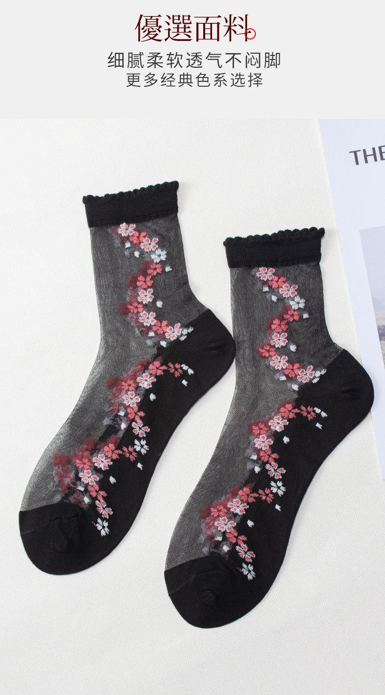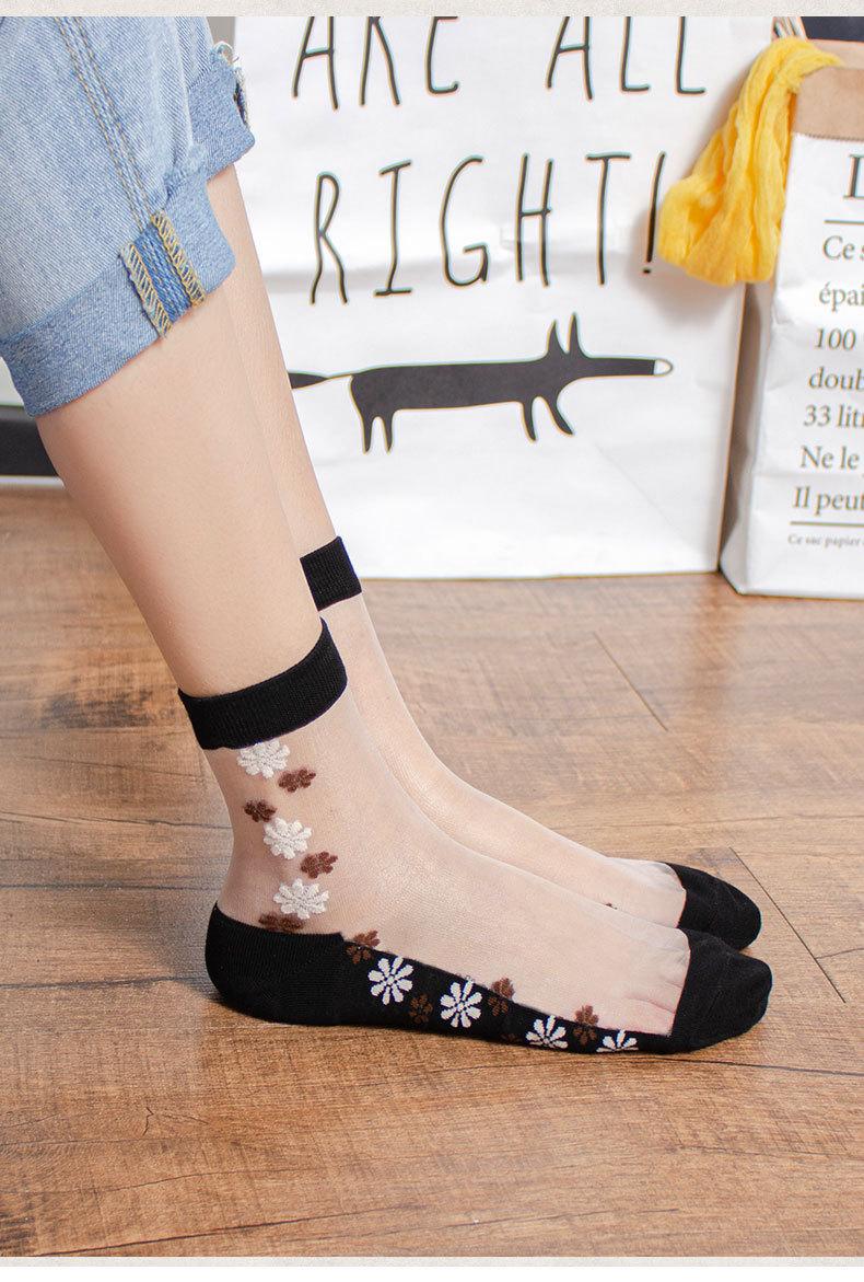 Medias de cristal Xingnan de primavera y verano para mujer, con flores de tubo medio, sexys, finas, antigancho, de seda transparente, de algodón.