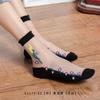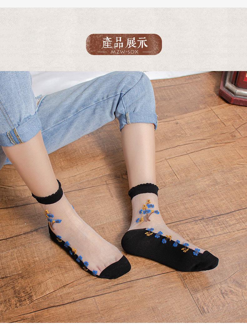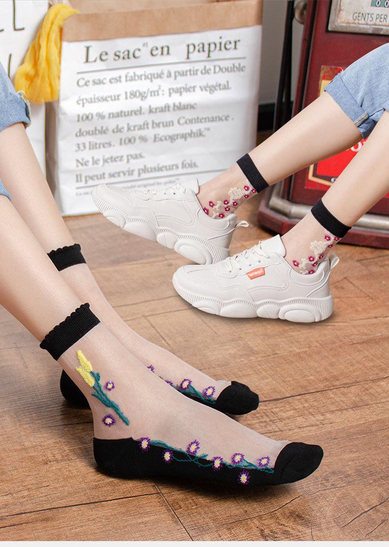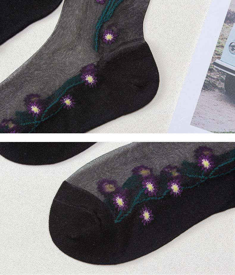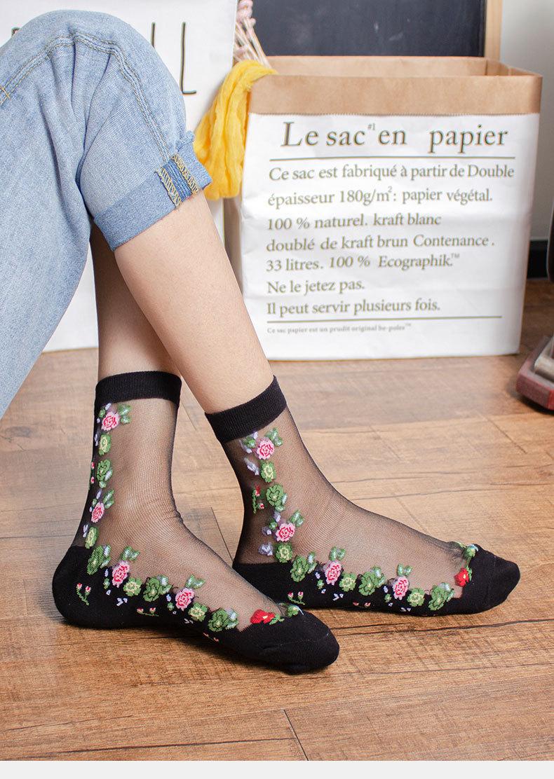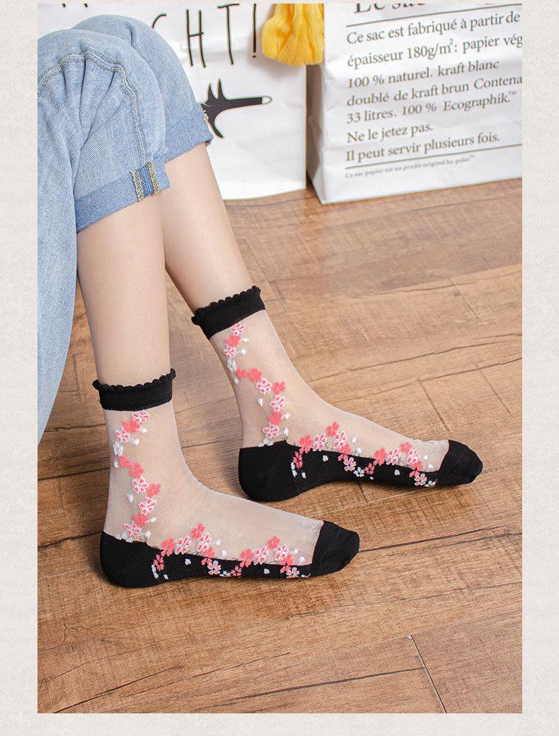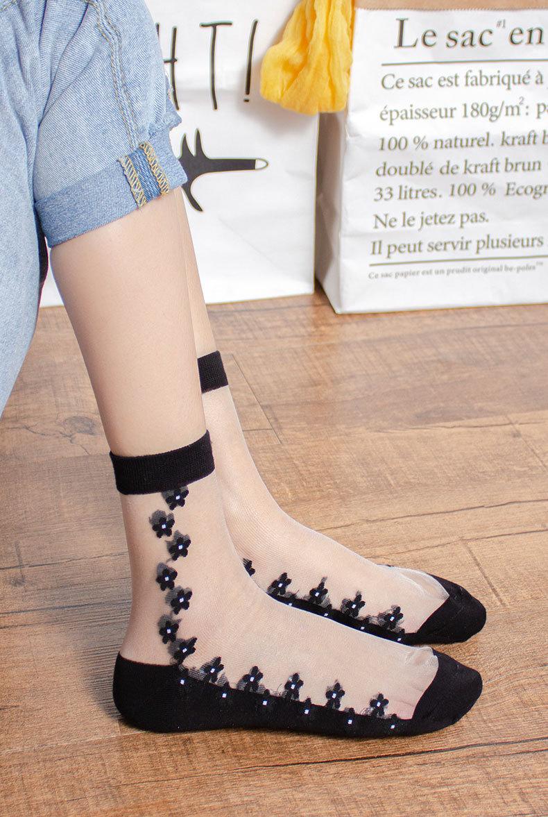 Medias de cristal Xingnan de primavera y verano para mujer, con flores de tubo medio, sexys, finas, antigancho, de seda transparente, de algodón.