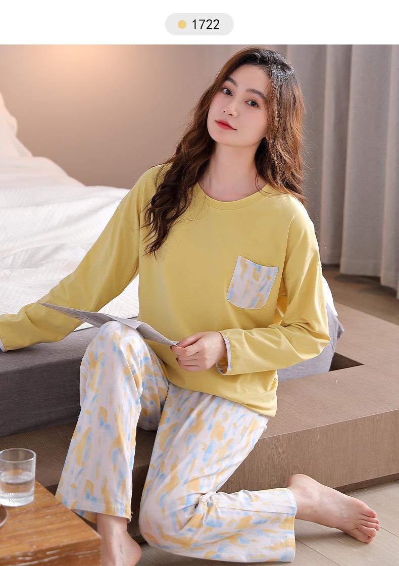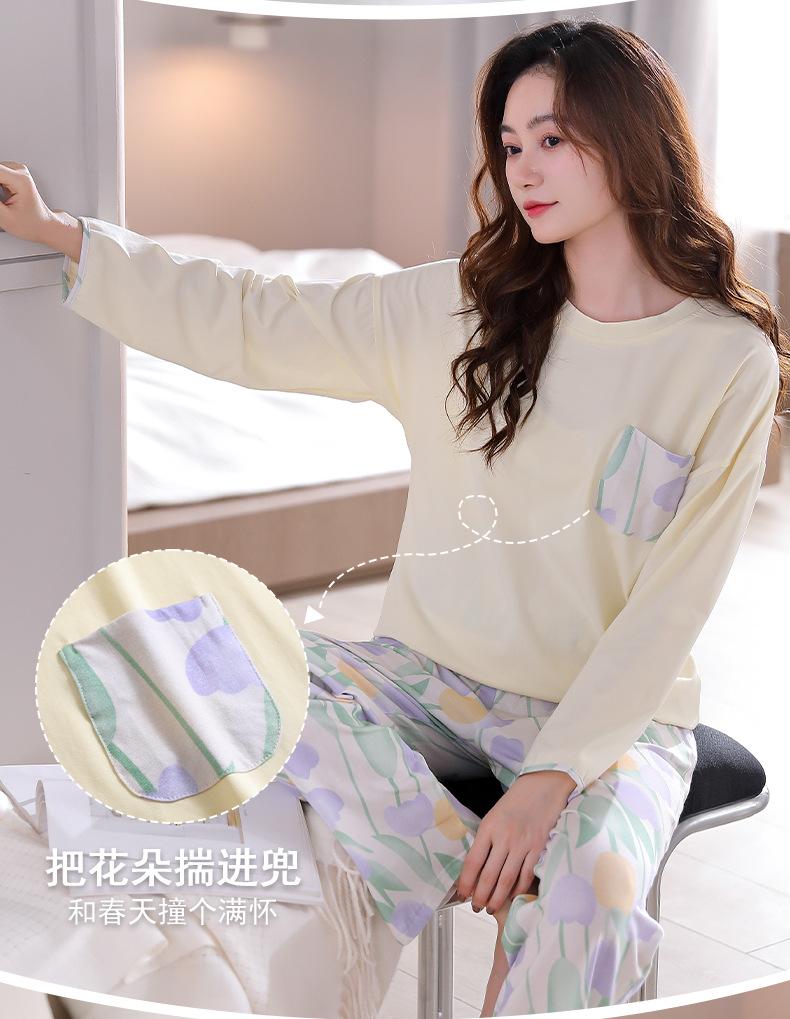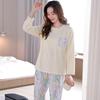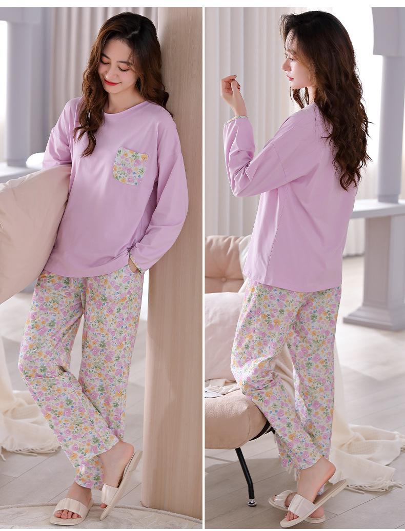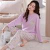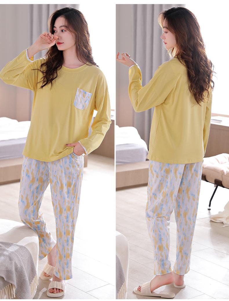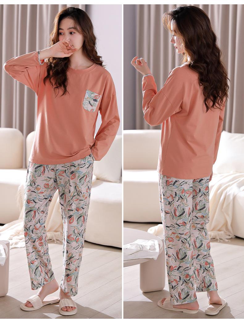 Pijamas de primavera y otoño para mujer, de algodón, con pantalones de manga larga, traje informal, cómodo y sencillo para mujer, ropa de casa al aire libre.