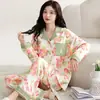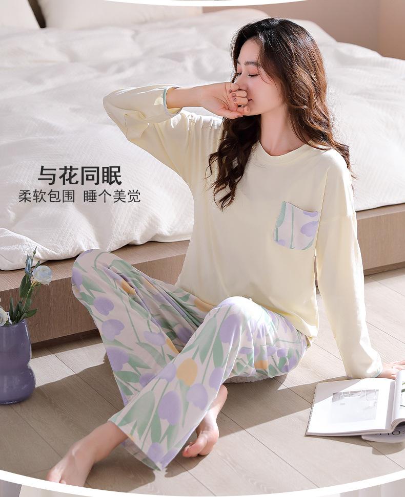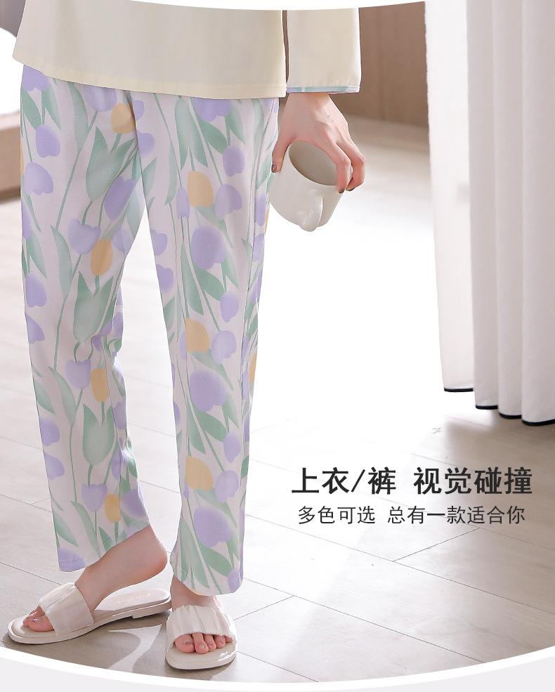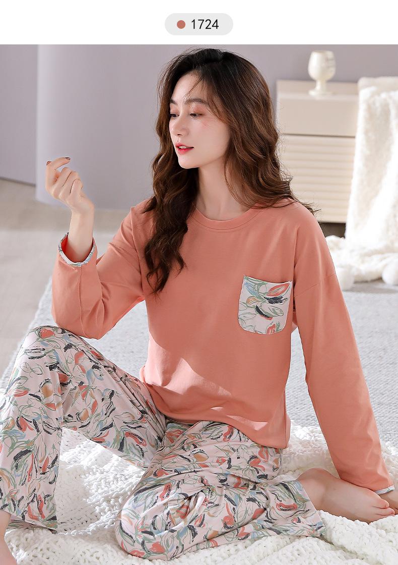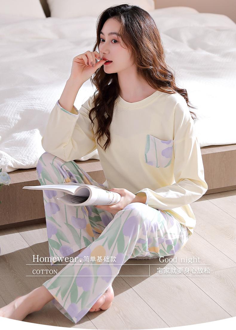 Pijamas de primavera y otoño para mujer, de algodón, con pantalones de manga larga, traje informal, cómodo y sencillo para mujer, ropa de casa al aire libre.
