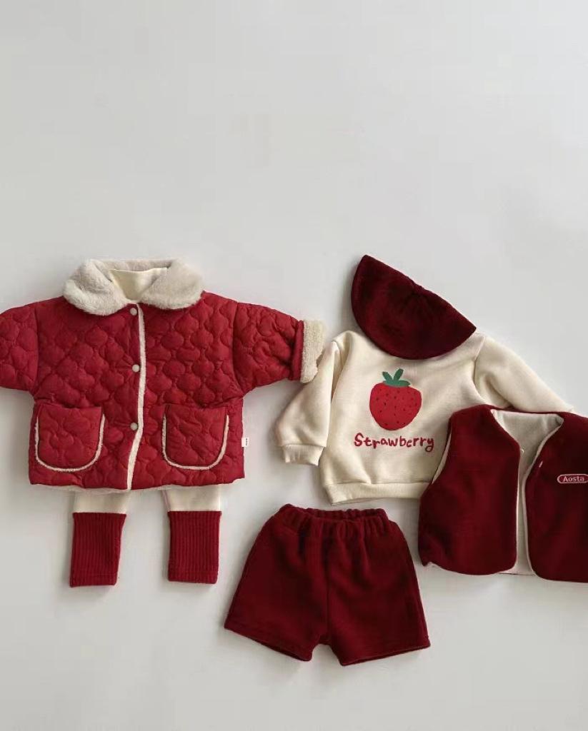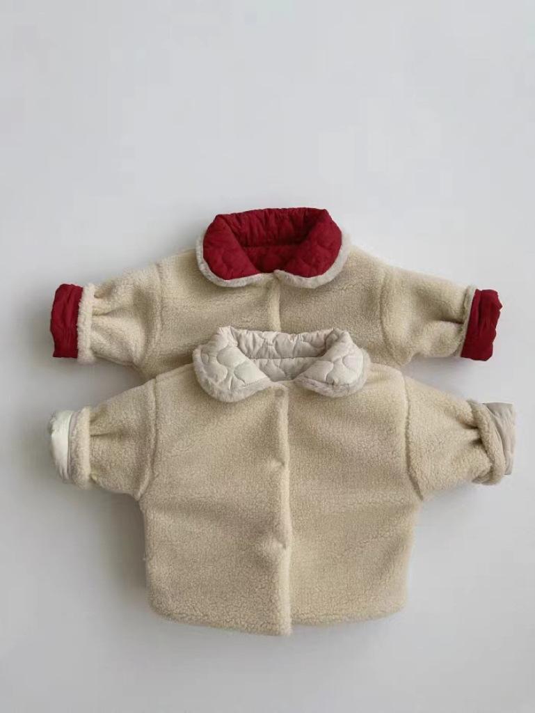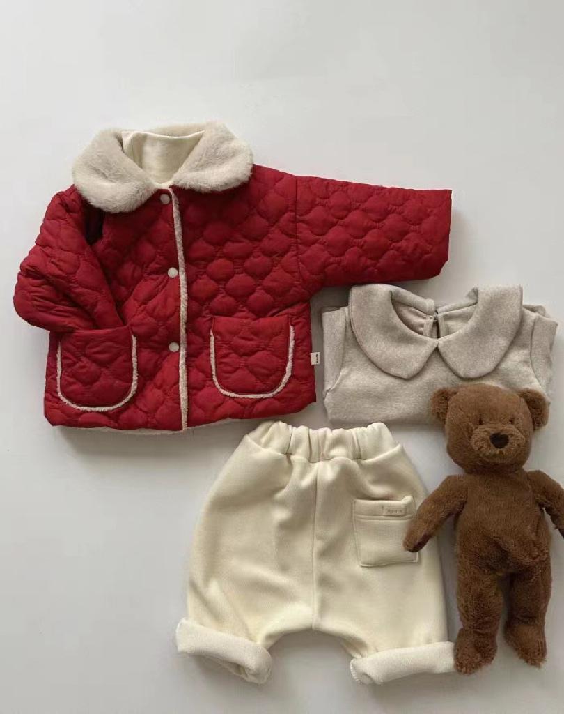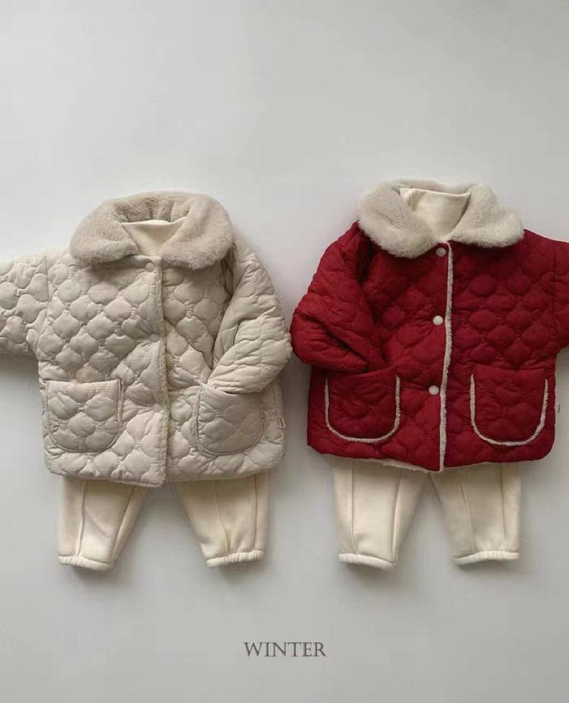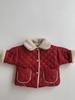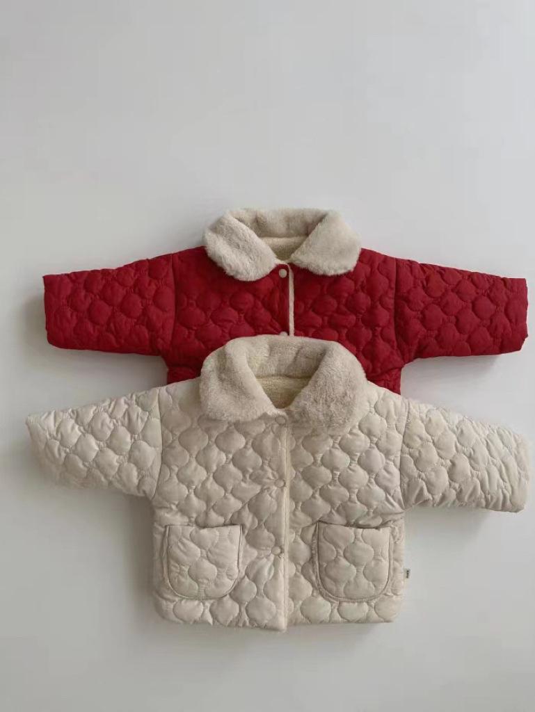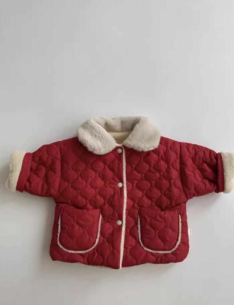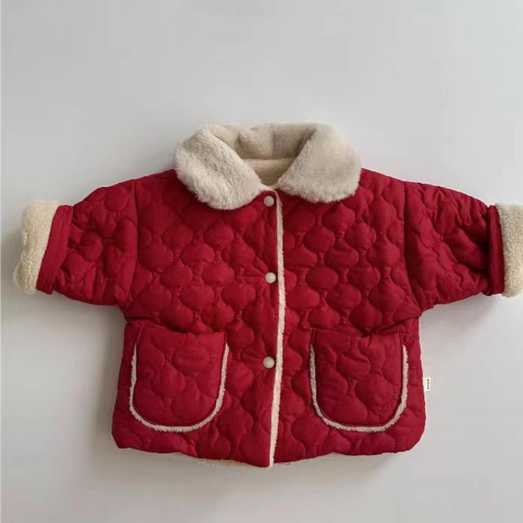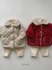 Abrigo acolchado de algodón rojo con solapa gruesa y forro polar estilo coreano para niños y niñas, nueva tendencia de moda de abrigos cálidos