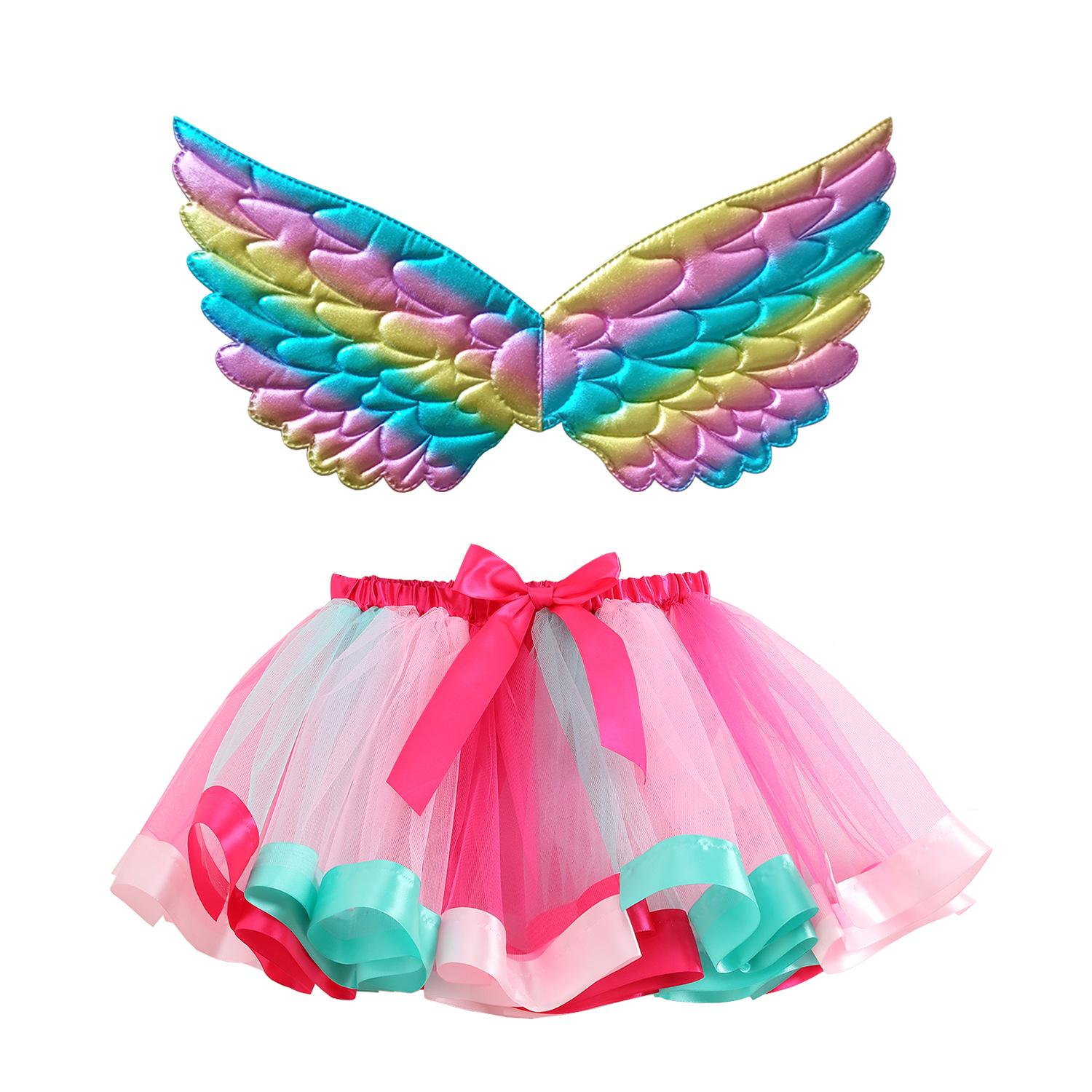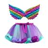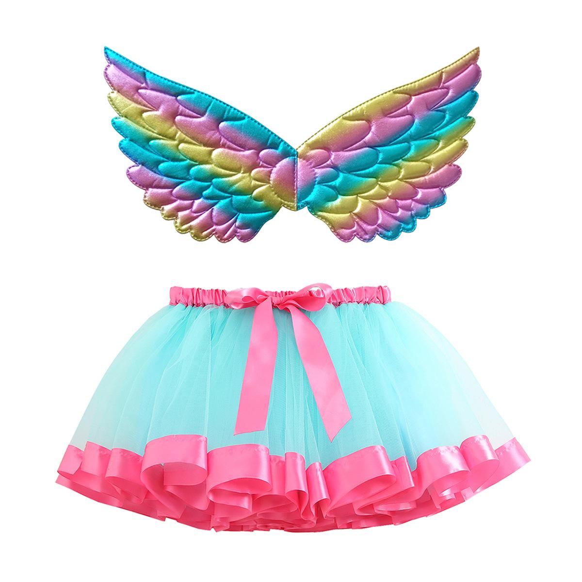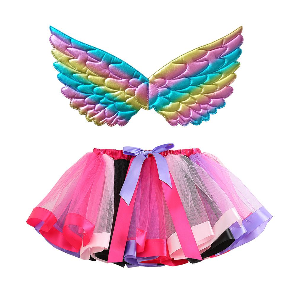 Ropa Infantil Europea y Americana Falda Arcoíris con Alas Falda Tutú Falda Corta de Malla para Niña Foto de Cumpleaños Falda para Actuación Escénica
