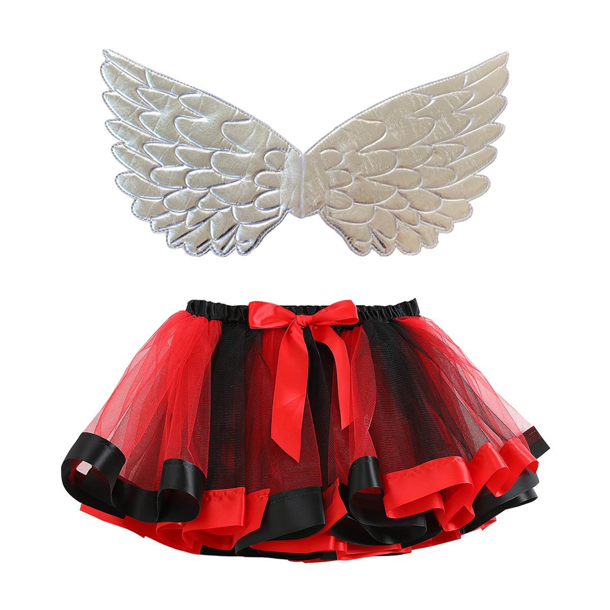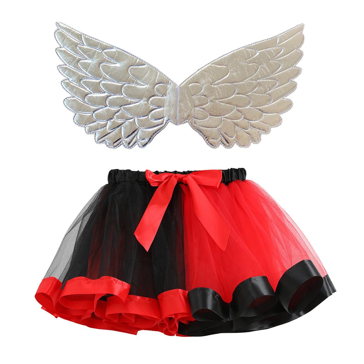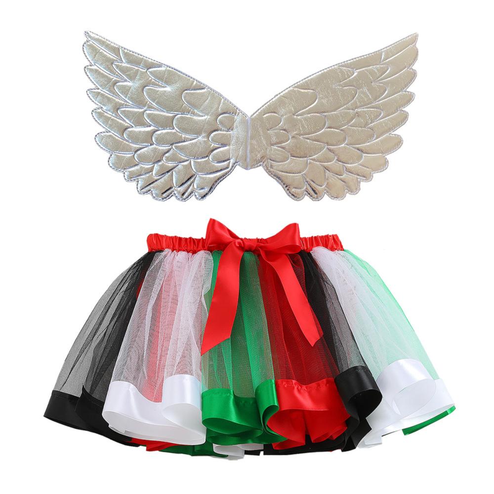 Ropa Infantil Europea y Americana Falda Arcoíris con Alas Falda Tutú Falda Corta de Malla para Niña Foto de Cumpleaños Falda para Actuación Escénica