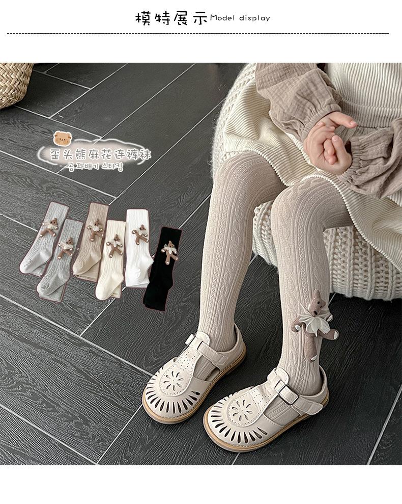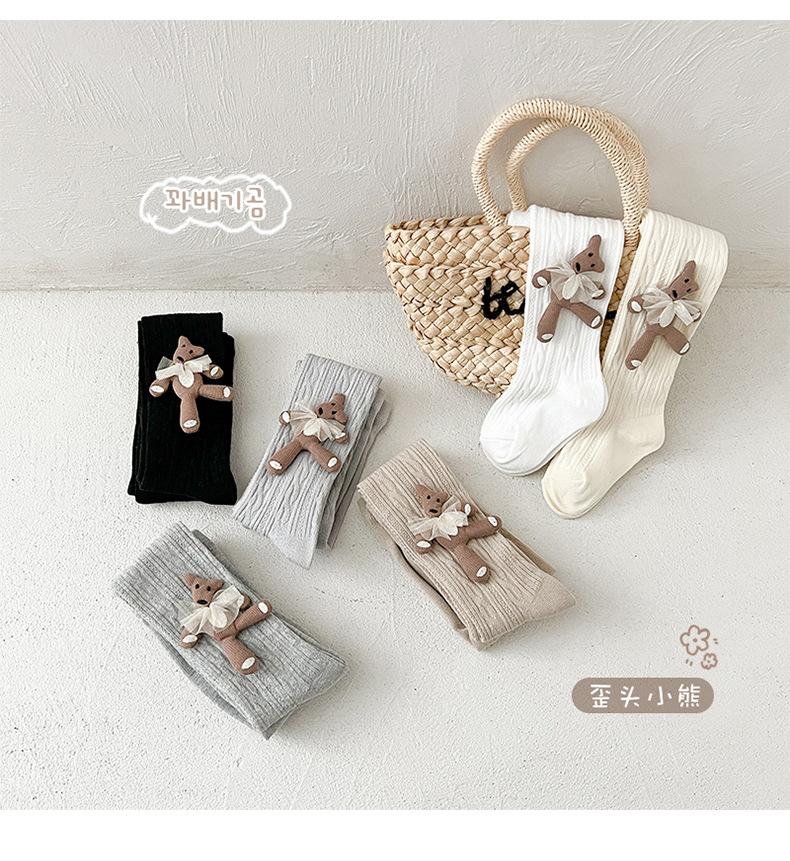 White-crooked bear twist pantyhose, Black-crooked bear twist pantyhose, Khaki-crooked bear twist pantyhose, Be...