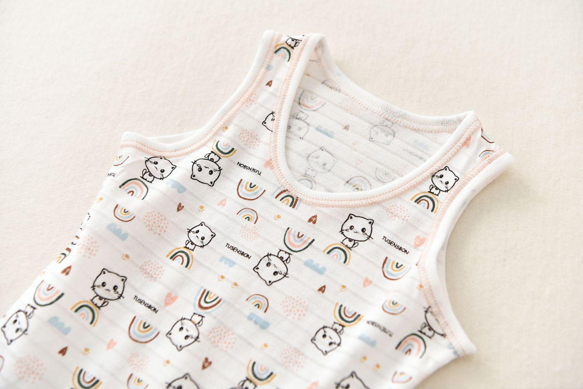 Fábrica de ropa infantil de exportación, nueva, japonesa, transpirable, de dibujos animados, para niña, primavera y verano, chaleco para el hogar, algodón para niños.
