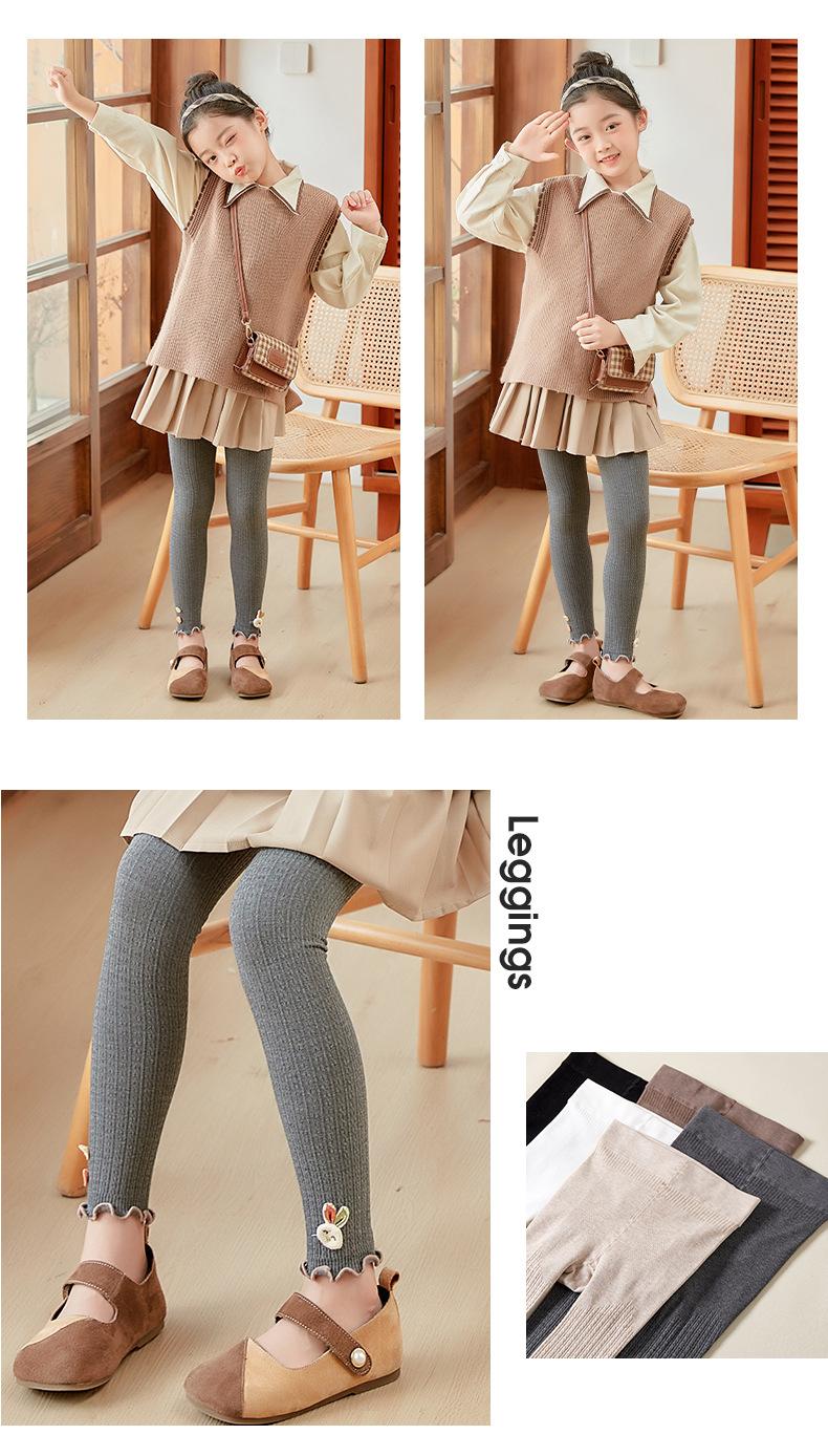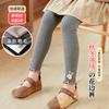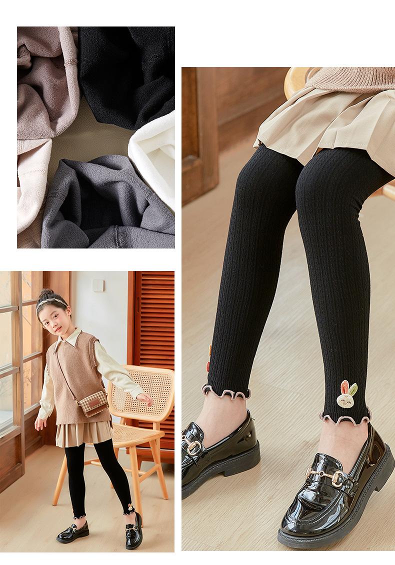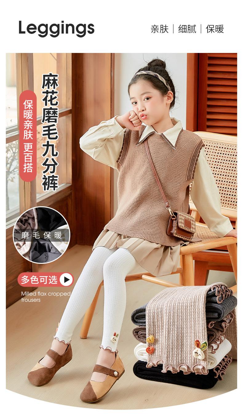 Venta al por mayor de leggings de terciopelo fino y grueso para niñas, pantalones cálidos de algodón y lino con estampado de otoño e invierno