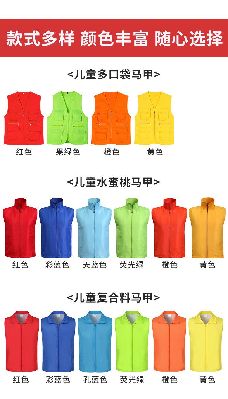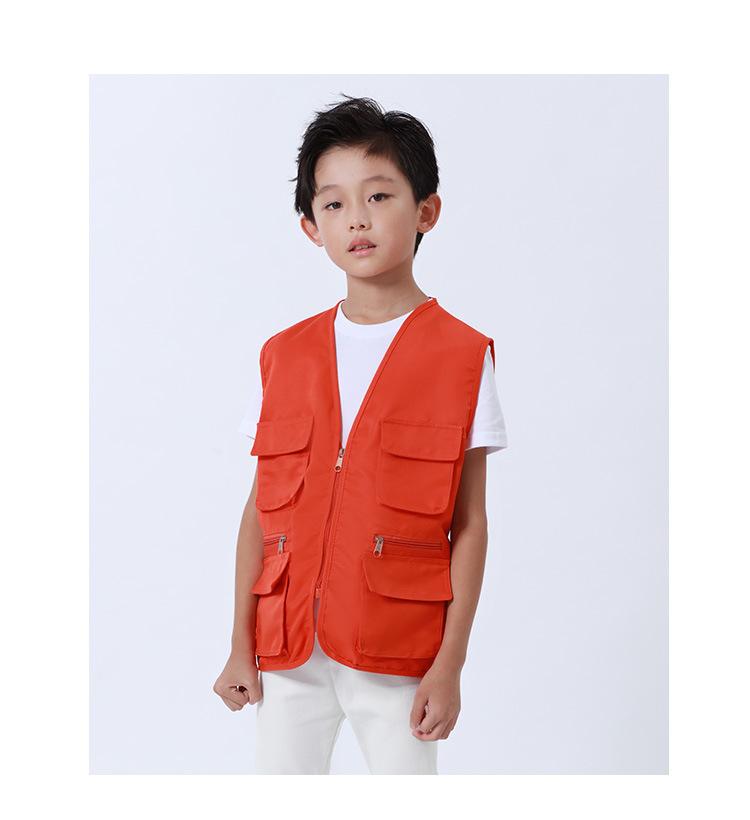 Orange children's multi-pocket vest, Fruit Green Children's Multi-Pocket Vest, Red children's multi-pocket ves...