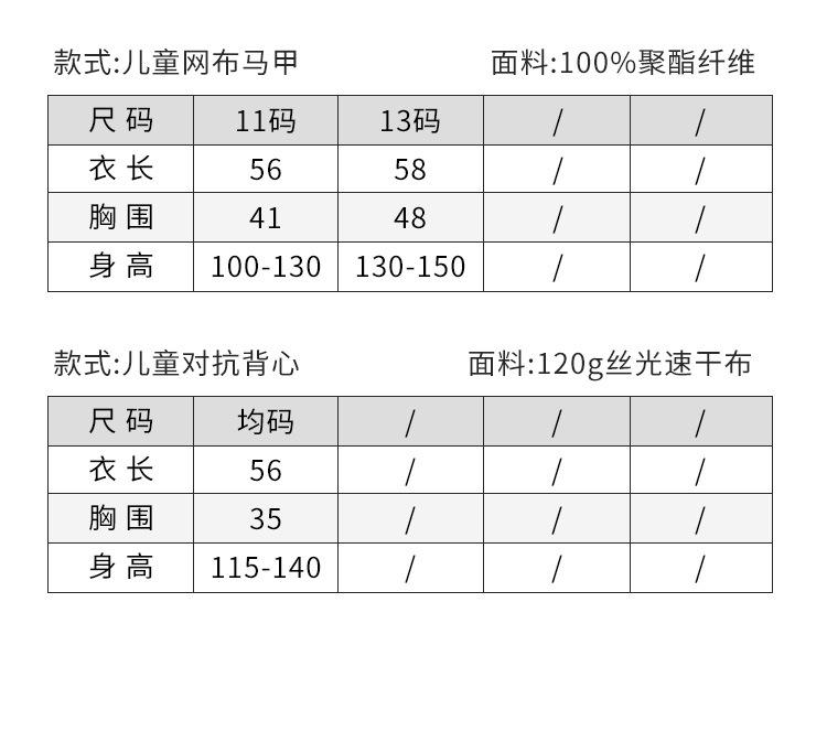Children (3~8 years old, 100~140cm)