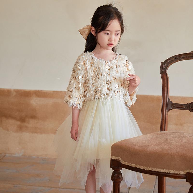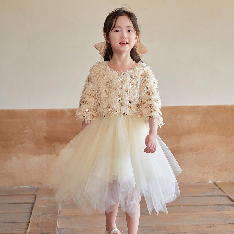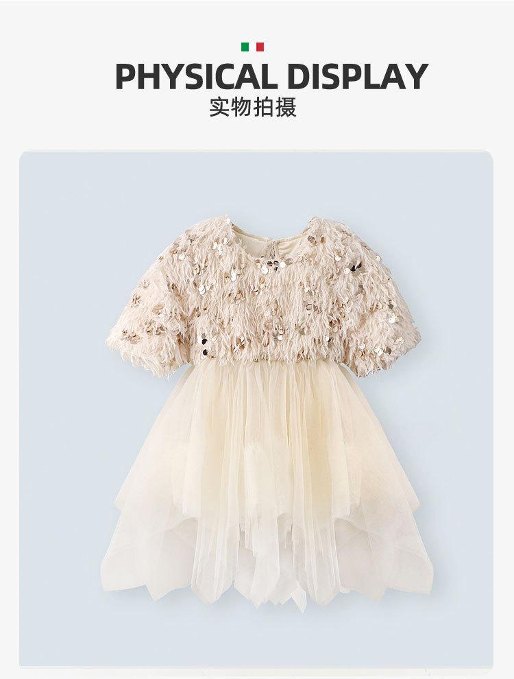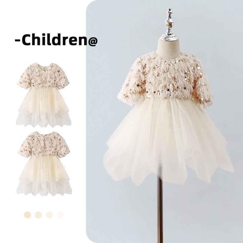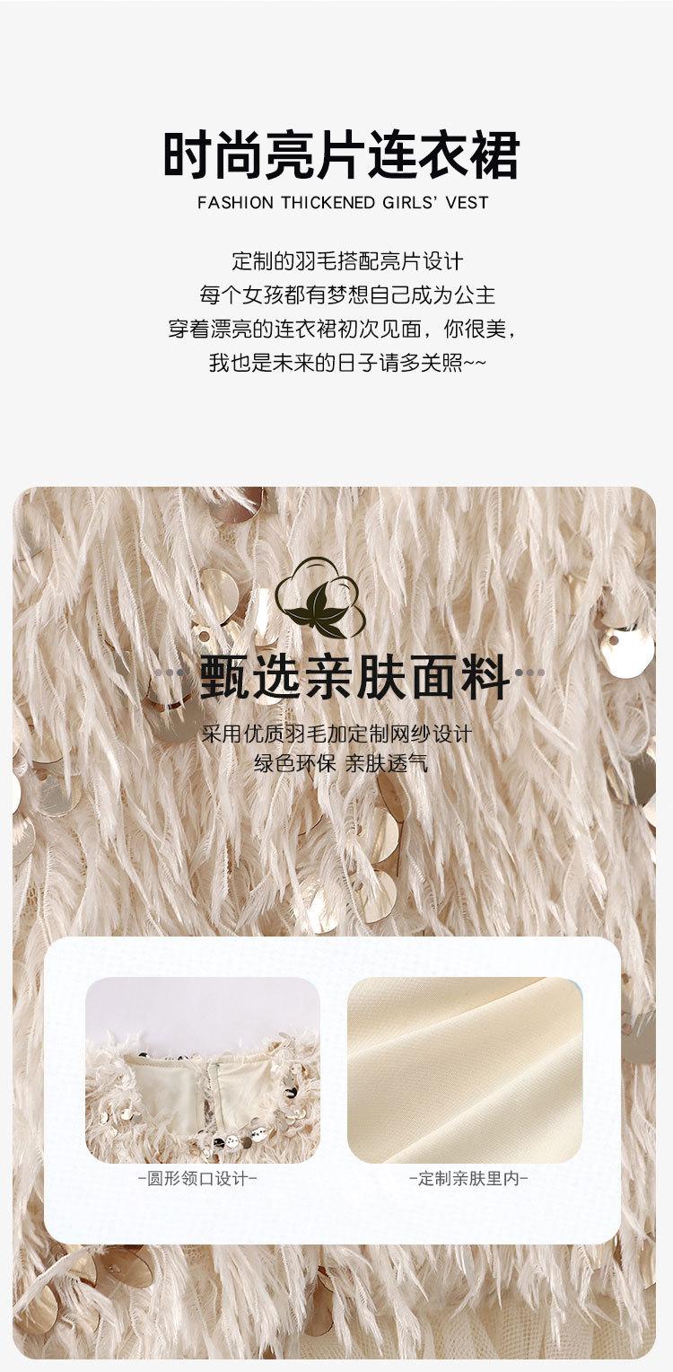 Vestido de Niña 2025 Primavera Nuevo Transfronterizo Vestido de Princesa para Niños Vestido de Plumas con Lentejuelas para Bebé Falda a la Moda