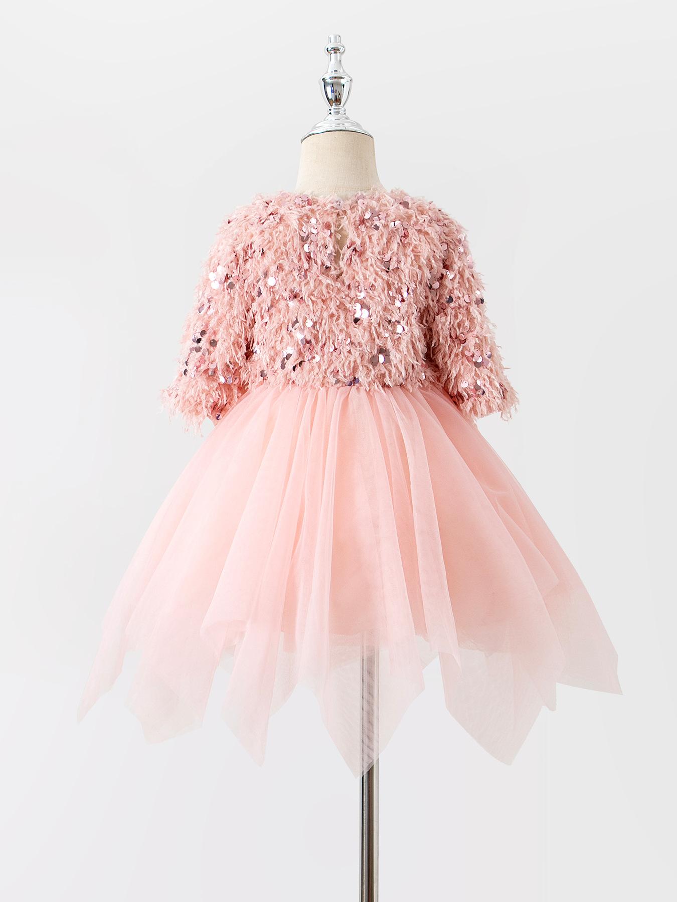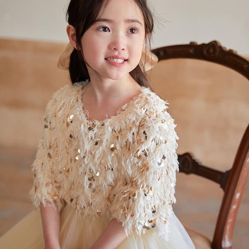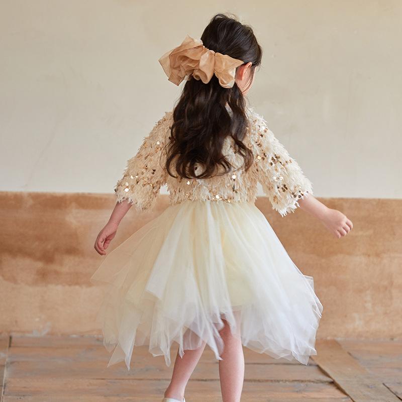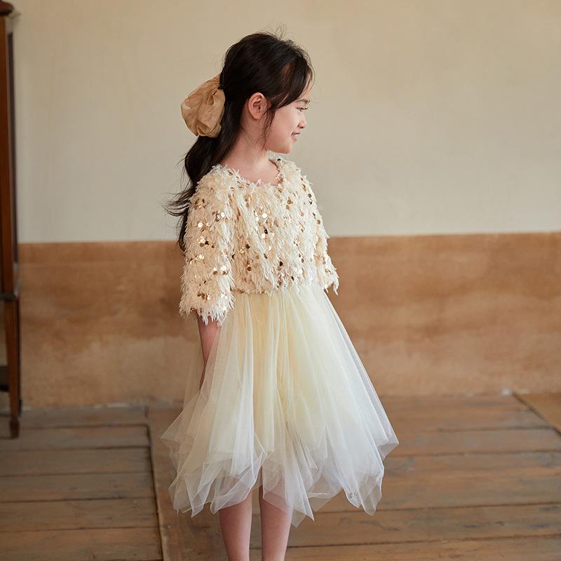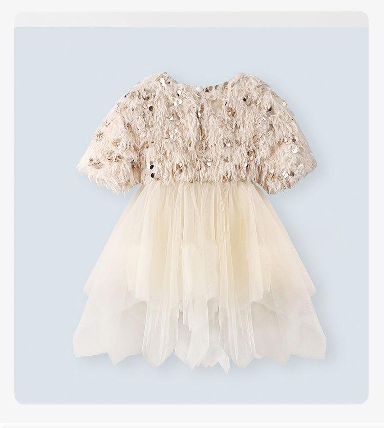 Vestido de Niña 2025 Primavera Nuevo Transfronterizo Vestido de Princesa para Niños Vestido de Plumas con Lentejuelas para Bebé Falda a la Moda
