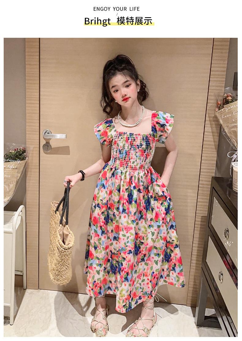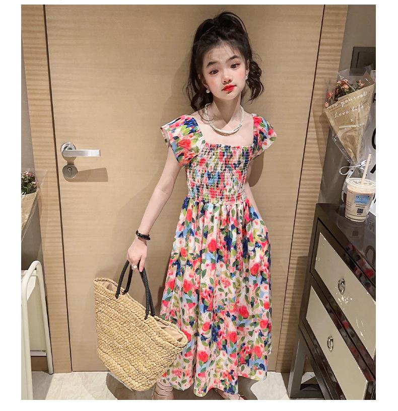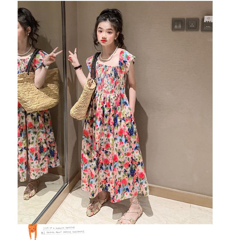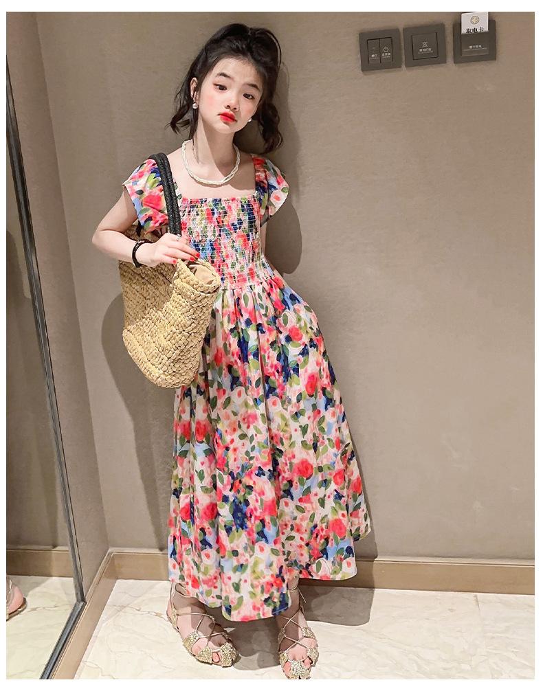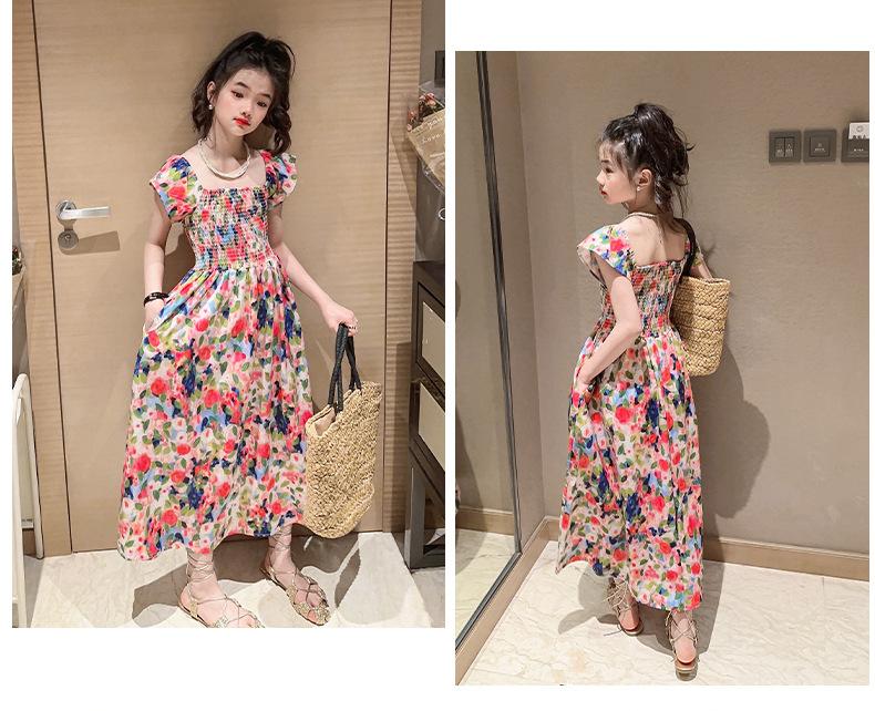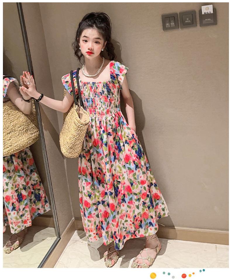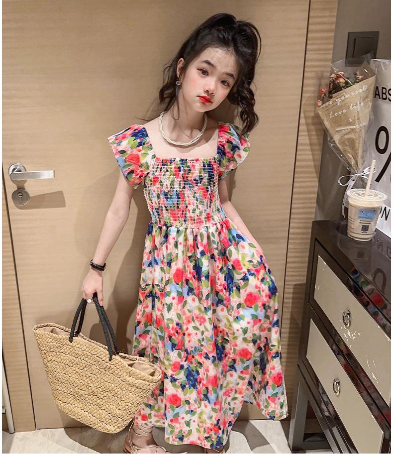 Vestido floral para niñas, vestido de verano 2024, nuevo vestido de princesa fino de verano para niñas, falda grande para niñas