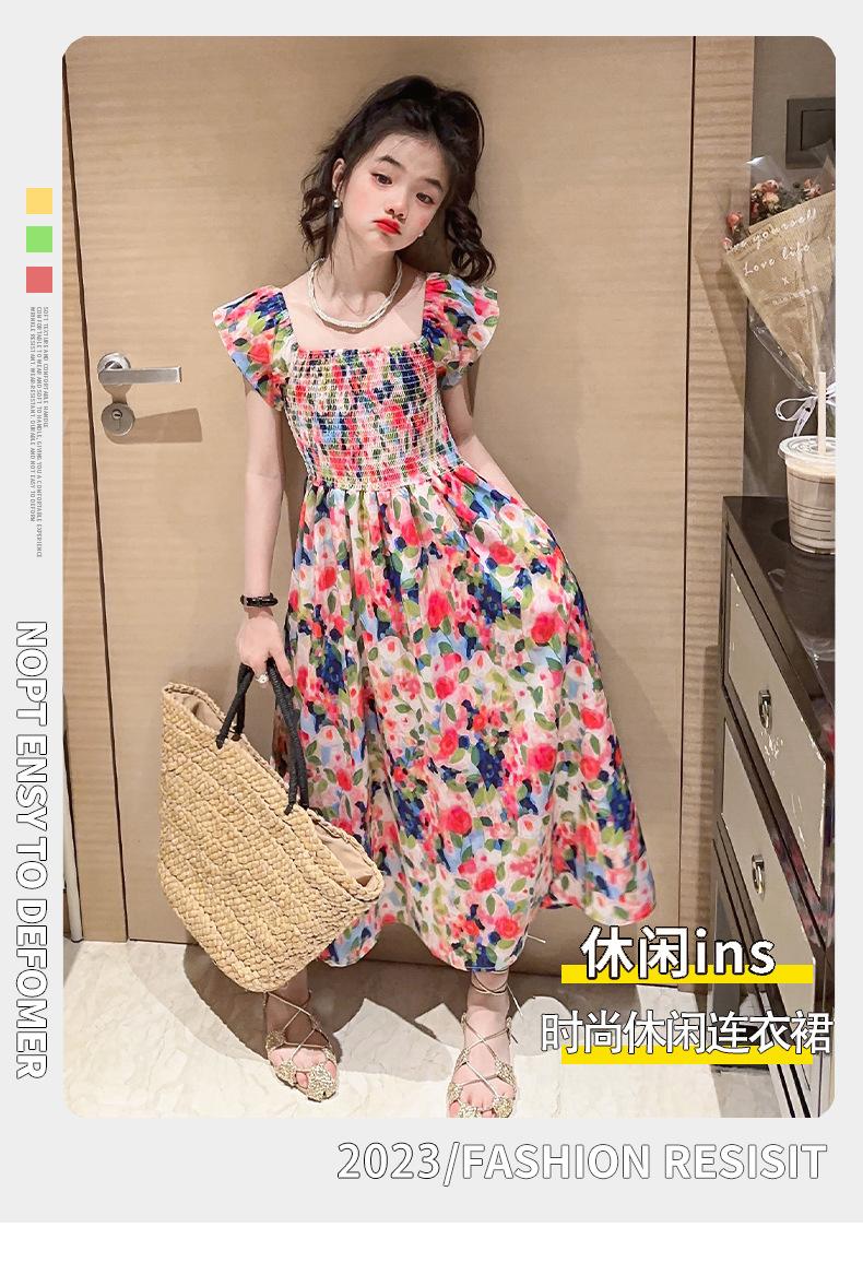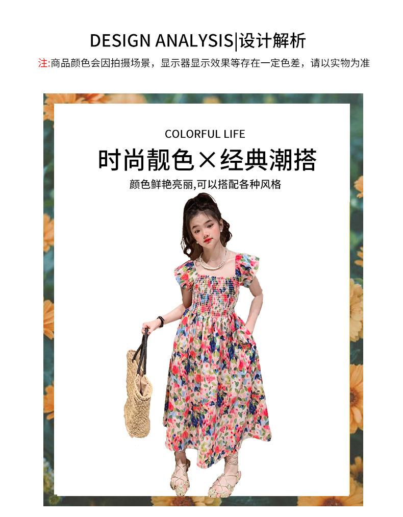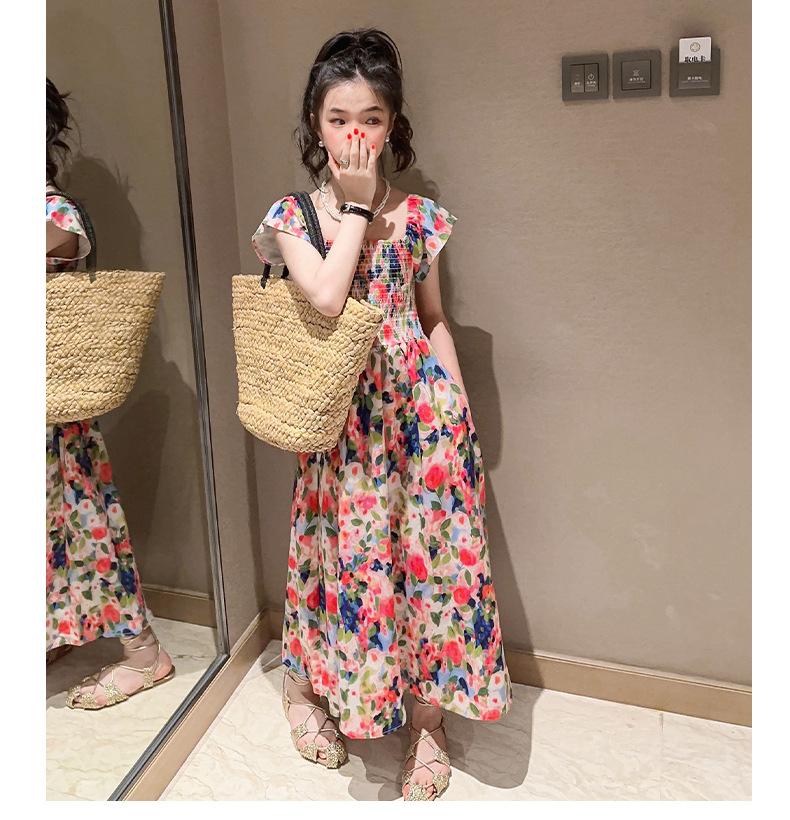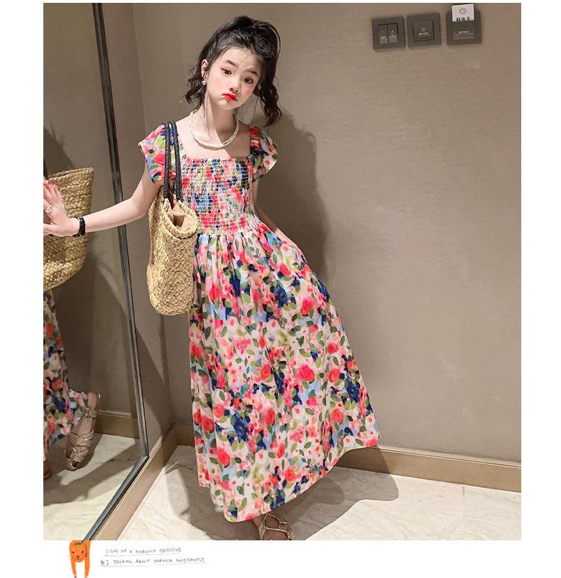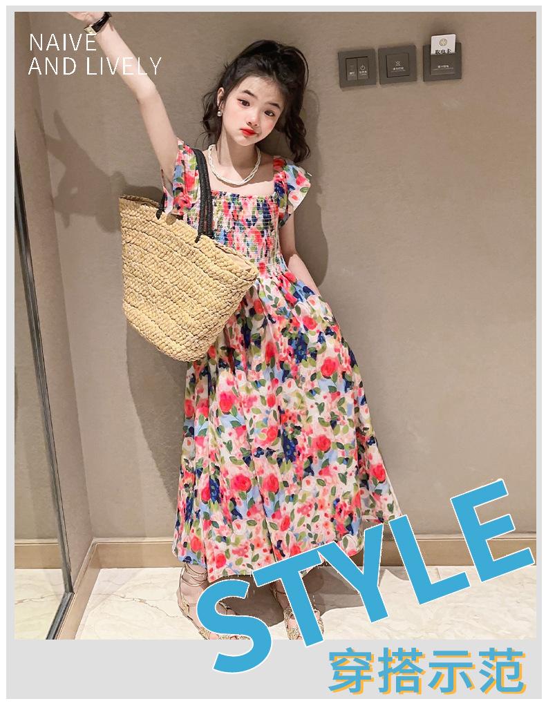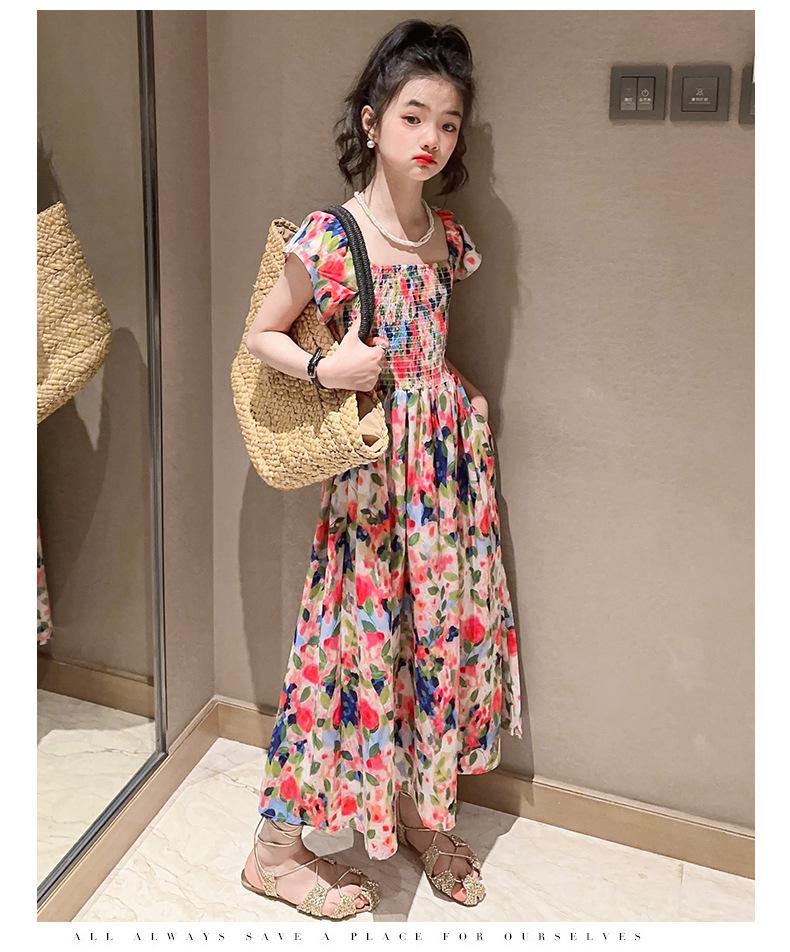 Vestido floral para niñas, vestido de verano 2024, nuevo vestido de princesa fino de verano para niñas, falda grande para niñas