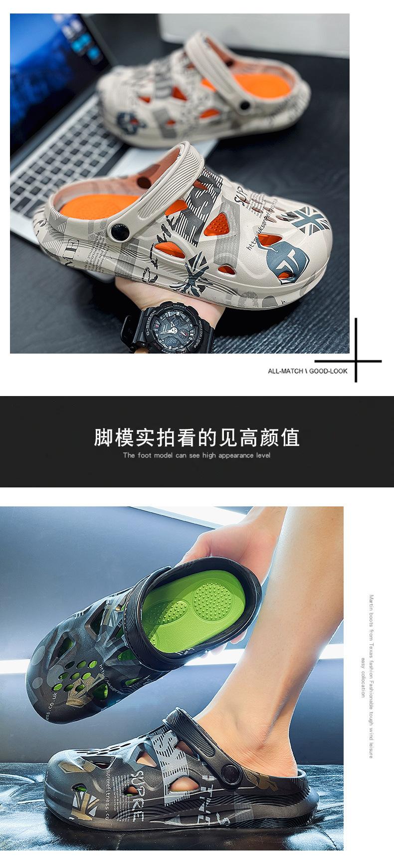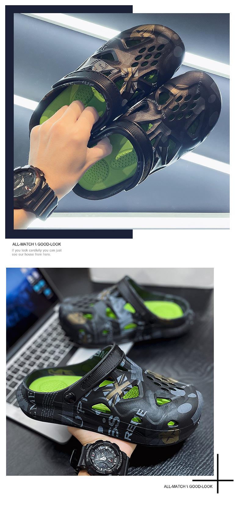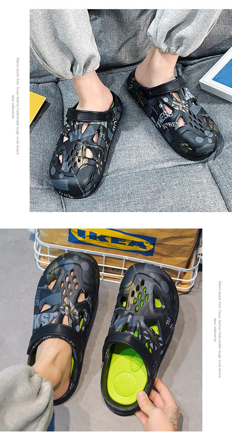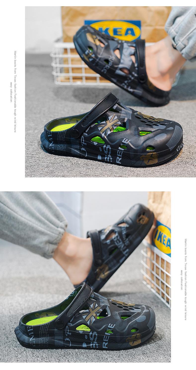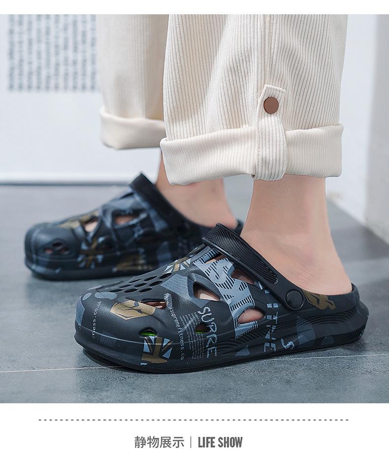 Sandalias Baotou de verano para hombre, con diseño de camuflaje y hoja de arce, de talla grande, con agujeros, para exteriores