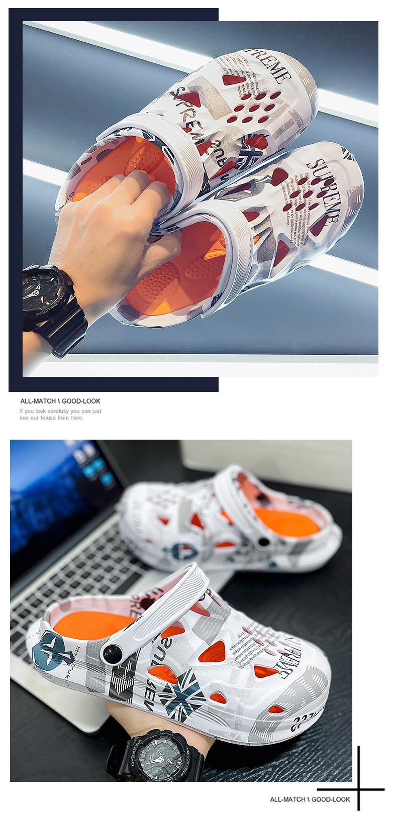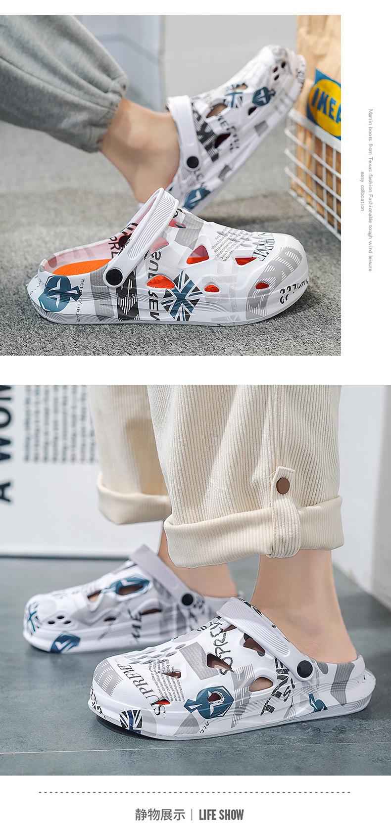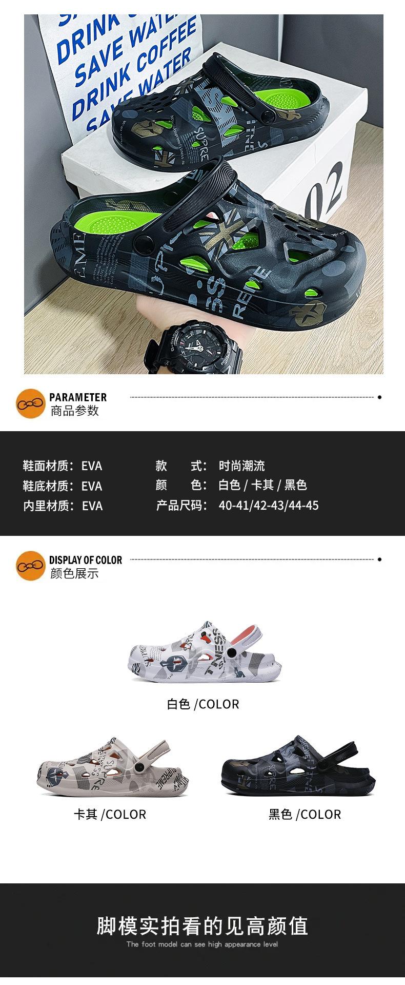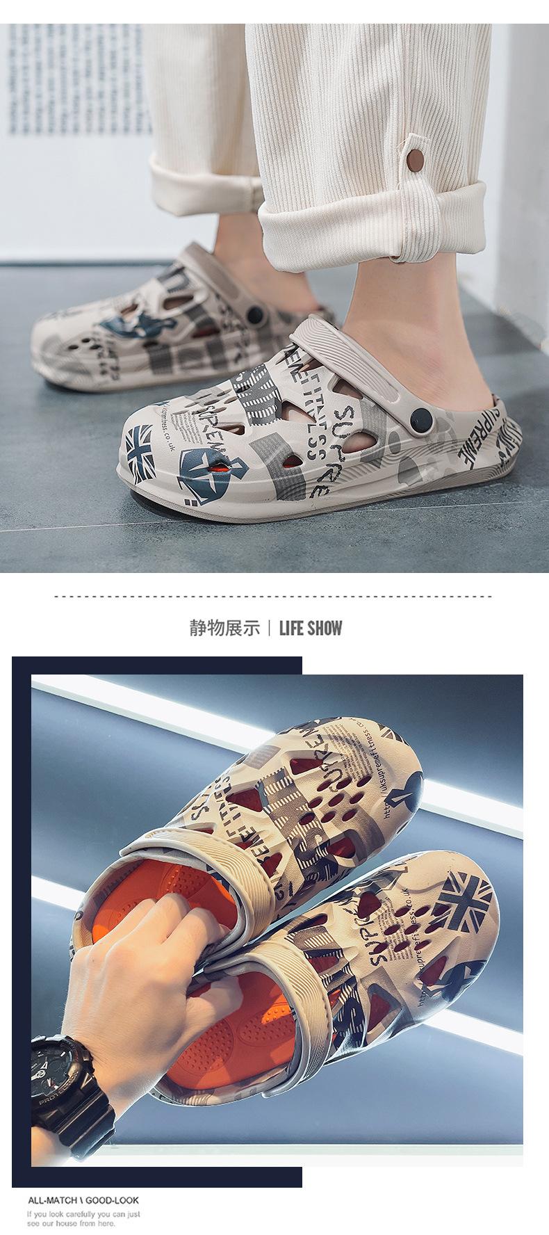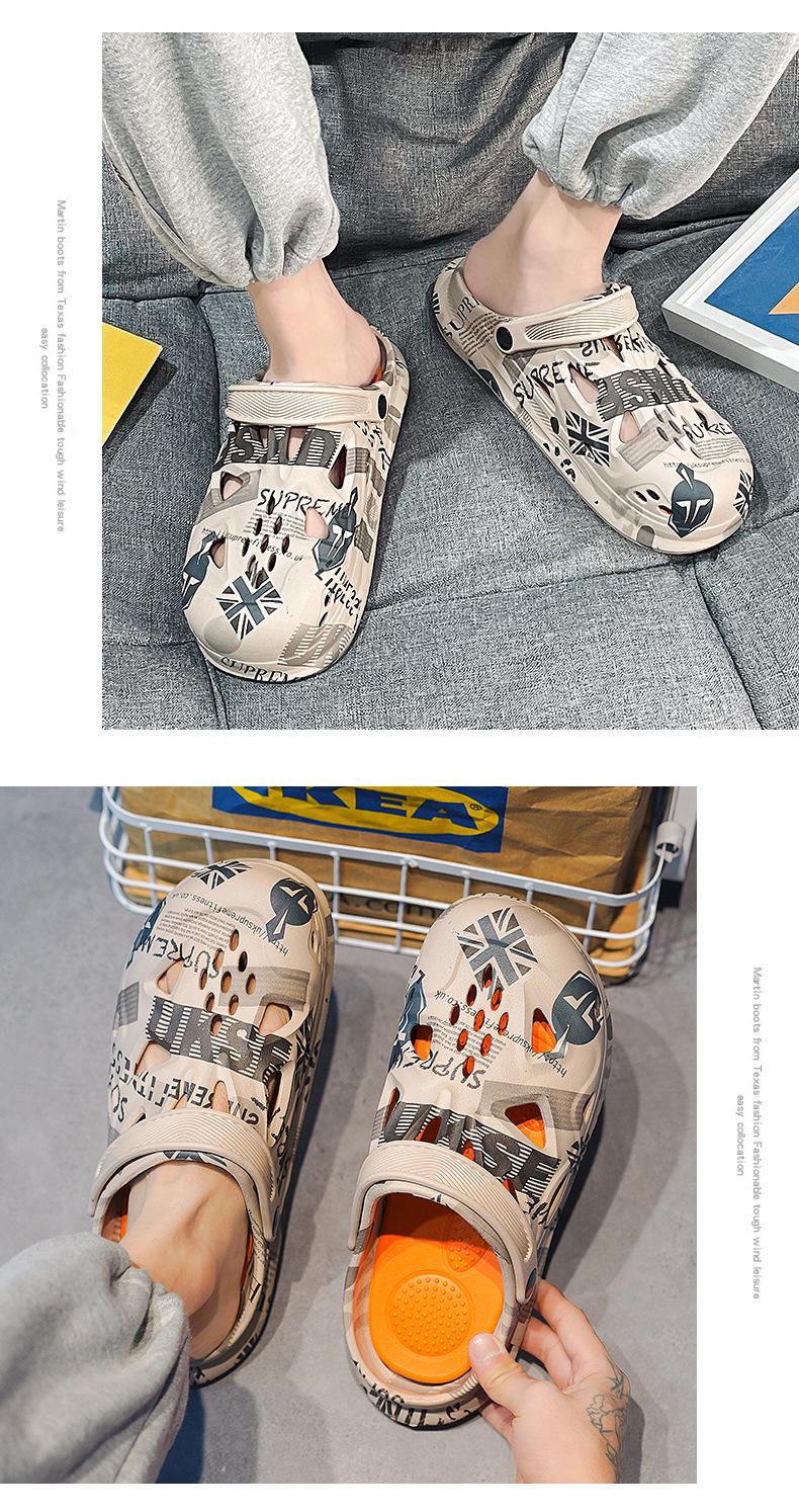 Sandalias Baotou de verano para hombre, con diseño de camuflaje y hoja de arce, de talla grande, con agujeros, para exteriores