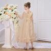 Vestido largo de malla de manga corta para niñas europeas y americanas, falda para niñas medianas y grandes, vestido de princesa de una pieza con borde cruzado, nuevo