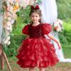 Falda larga de malla para niñas europeas y americanas, falda de princesa de cuento de hadas con mangas abullonadas para niñas, falda para actuación en el escenario del Día del Niño, nueva
