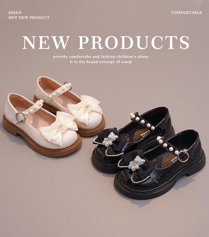 Zapatos de Cuero para Niñas 2025 Primavera Nuevo Negro Estilo Británico Suela Suave Lazo Zapatos para Niños Primavera y Verano Zapatos de Princesa