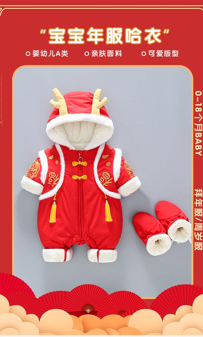 Compra Ropa de año nuevo, mono de bebé de la suerte, ropa de bebé, Año Nuevo, Año Nuevo, año nuevo, un mes de edad, rojo, festivo, recién nacido, invierno al por mayor en Joom.pro