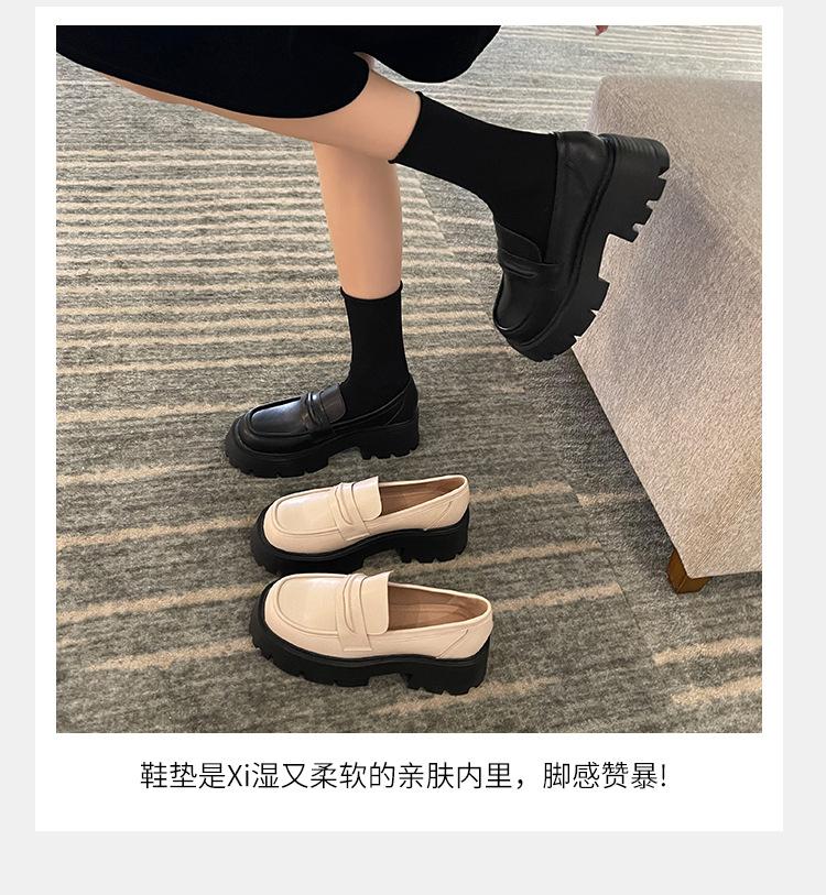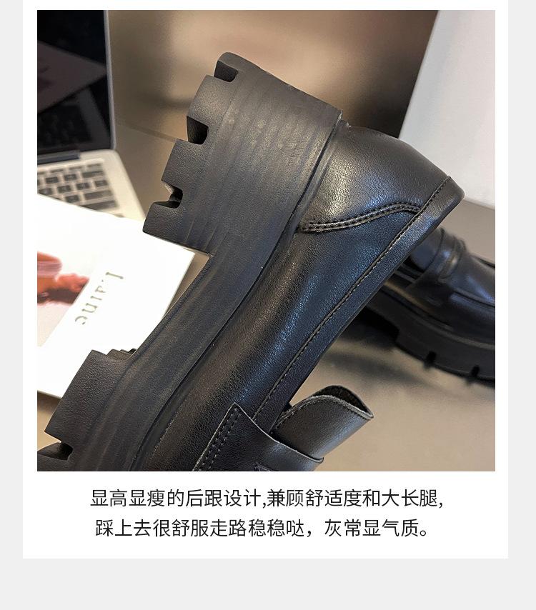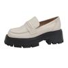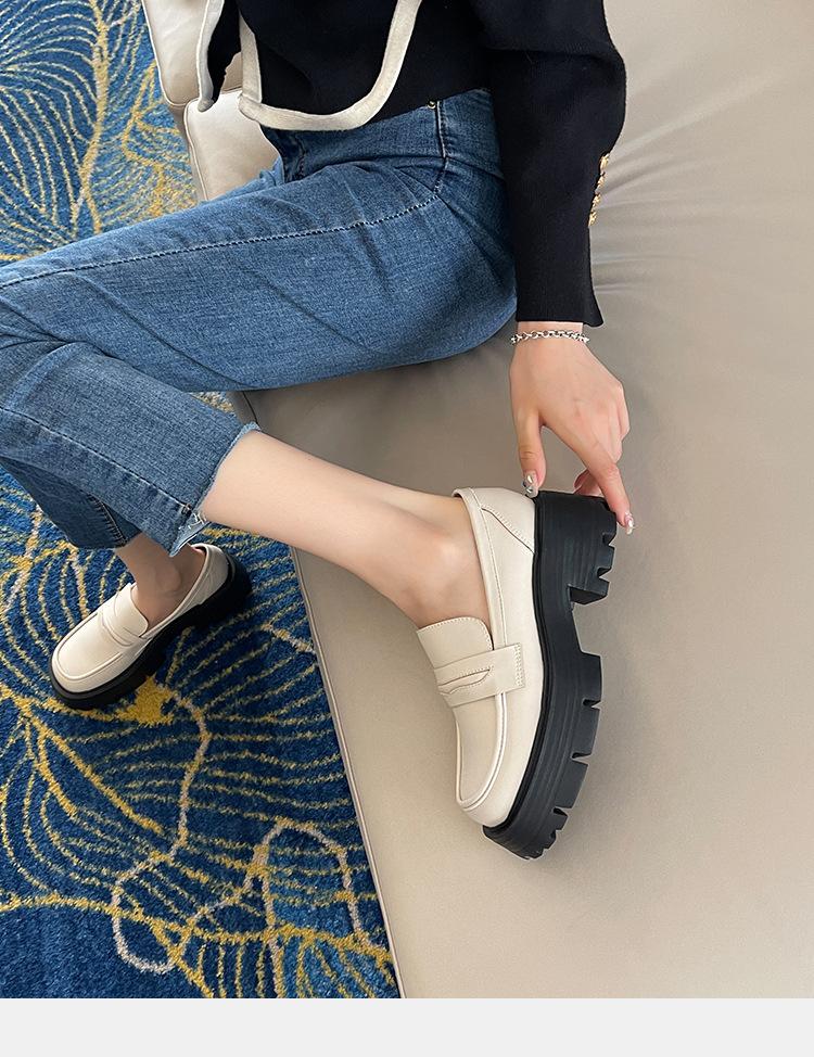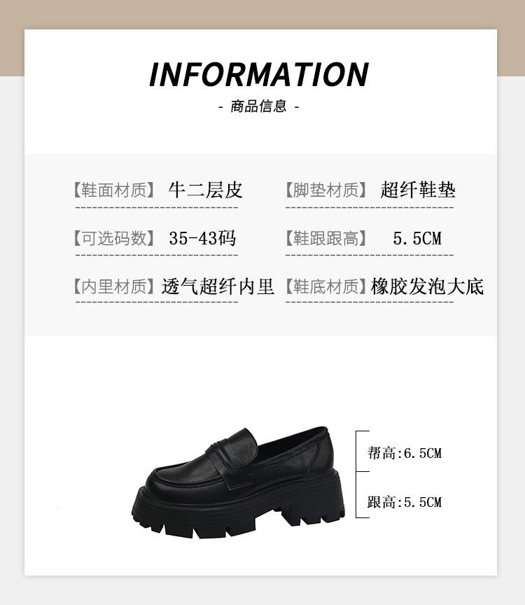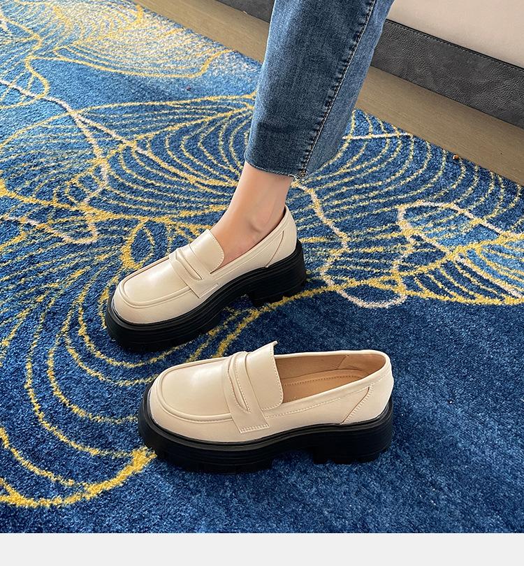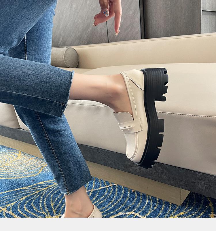 139-5 Zapatos de Cuero Pequeños para Mujer Estilo Retro Británico Un Pedal Mocasines de Suela Gruesa Pies Gordos Pies Gordos Talla Grande Zapatos de Mujer 41-43