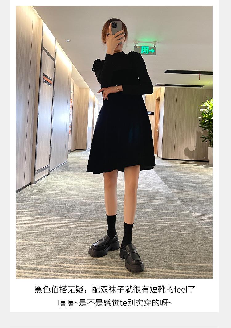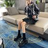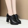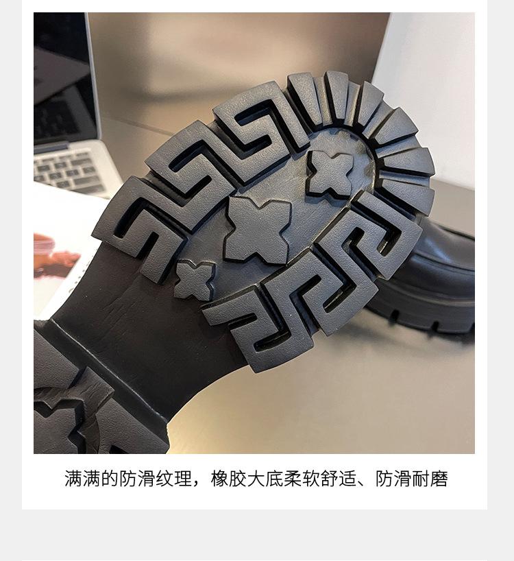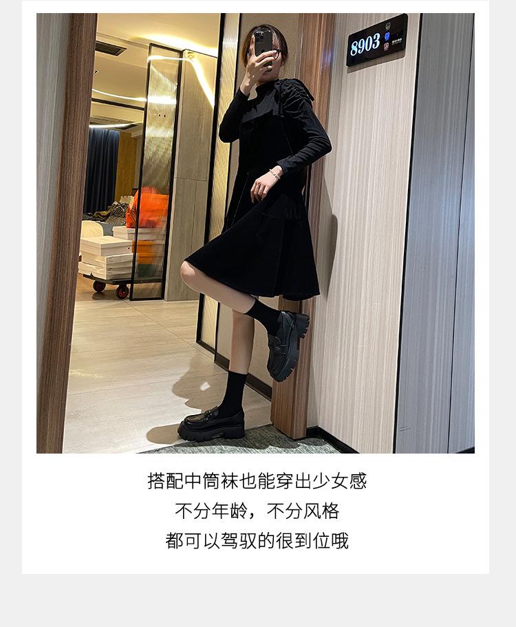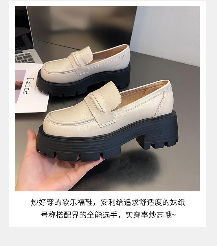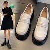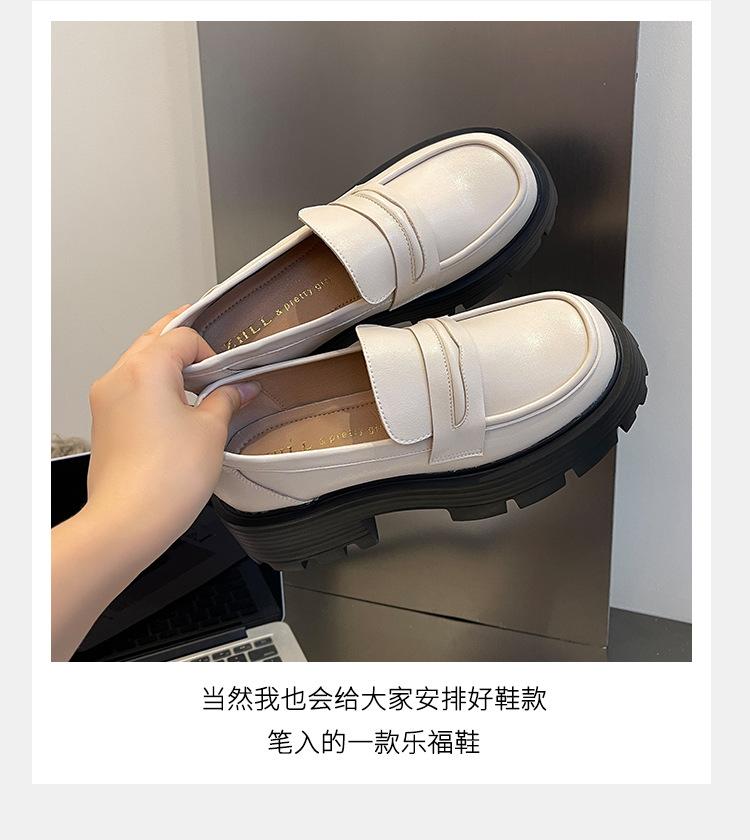 139-5 Zapatos de Cuero Pequeños para Mujer Estilo Retro Británico Un Pedal Mocasines de Suela Gruesa Pies Gordos Pies Gordos Talla Grande Zapatos de Mujer 41-43