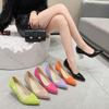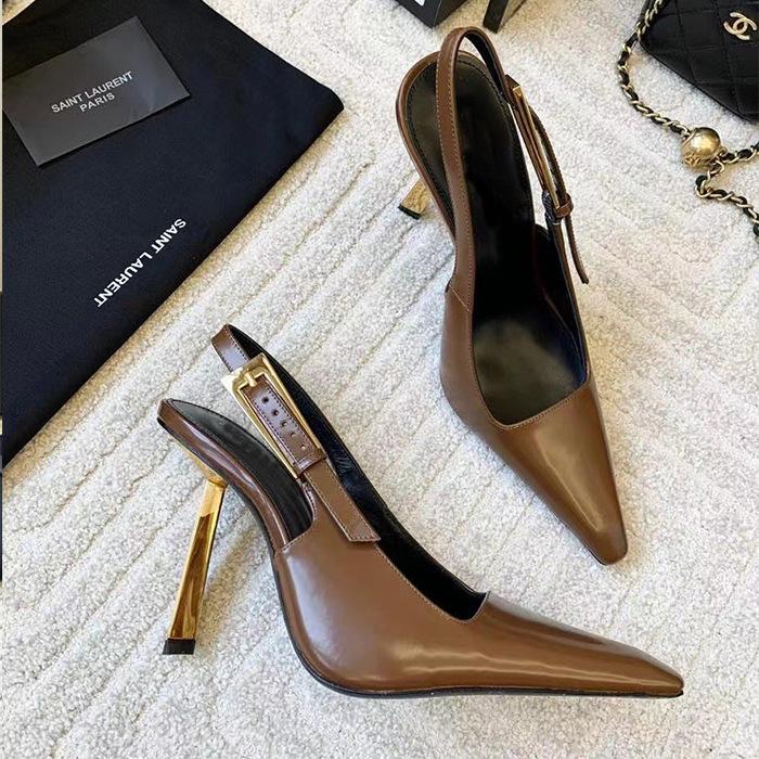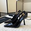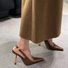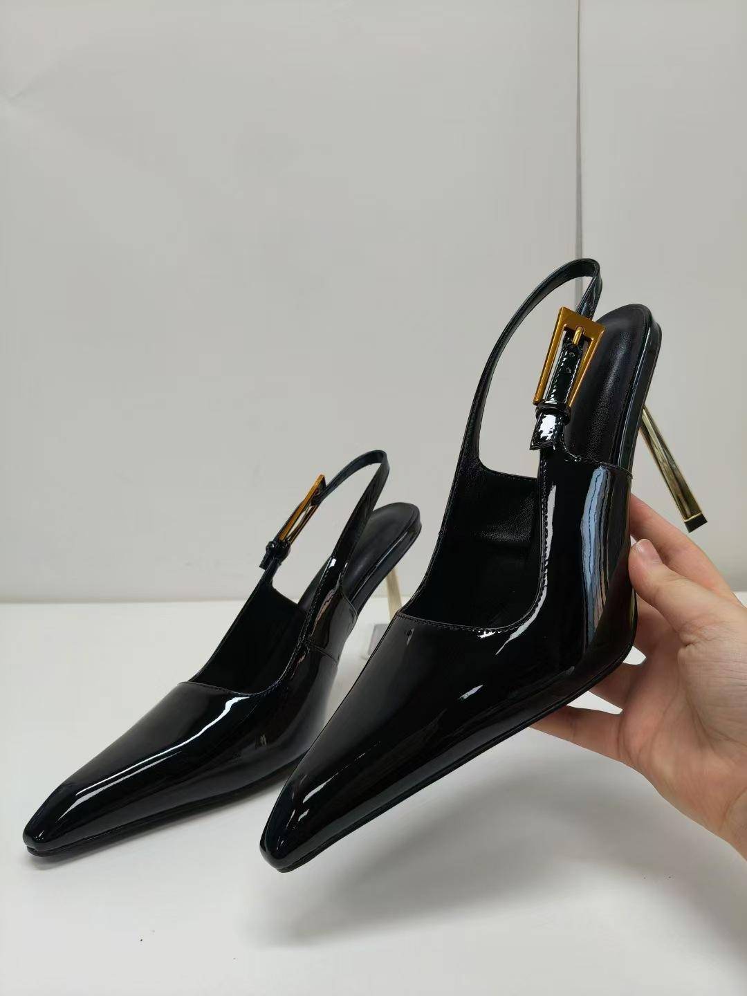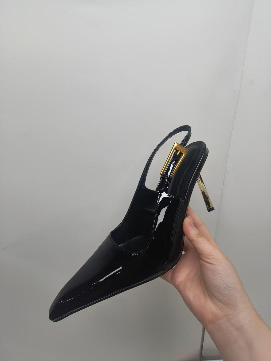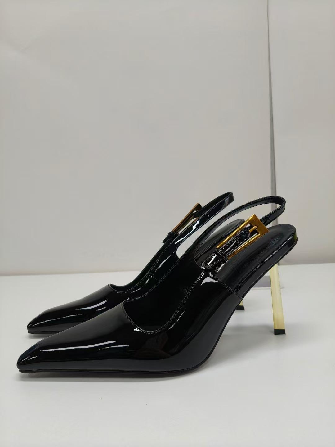 2024 Comercio exterior transfronterizo, nuevo estilo, elegantes sandalias de tacón alto con punta brillante, zapatos de mujer con tacón fino y tira trasera sexy y vacía en el lateral.
