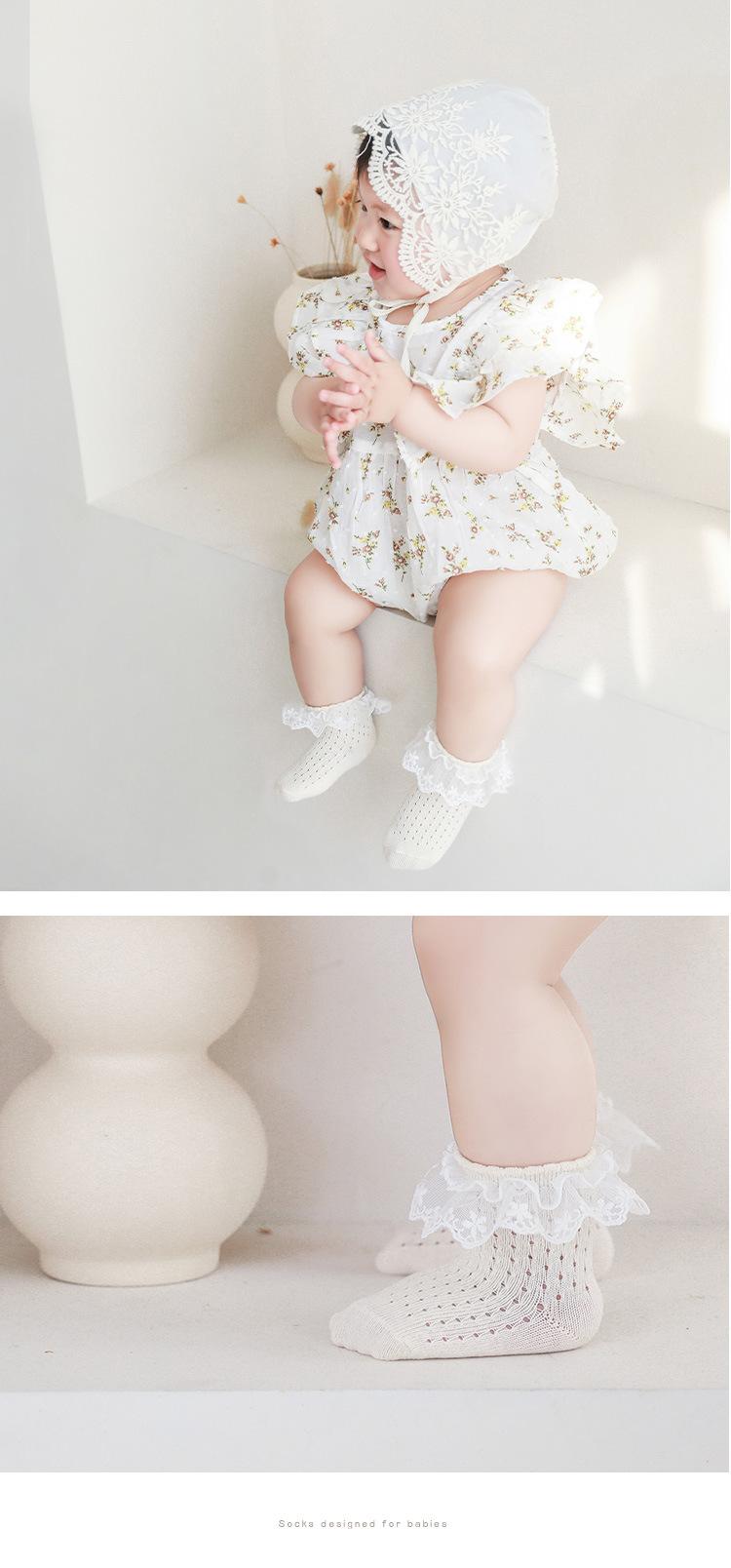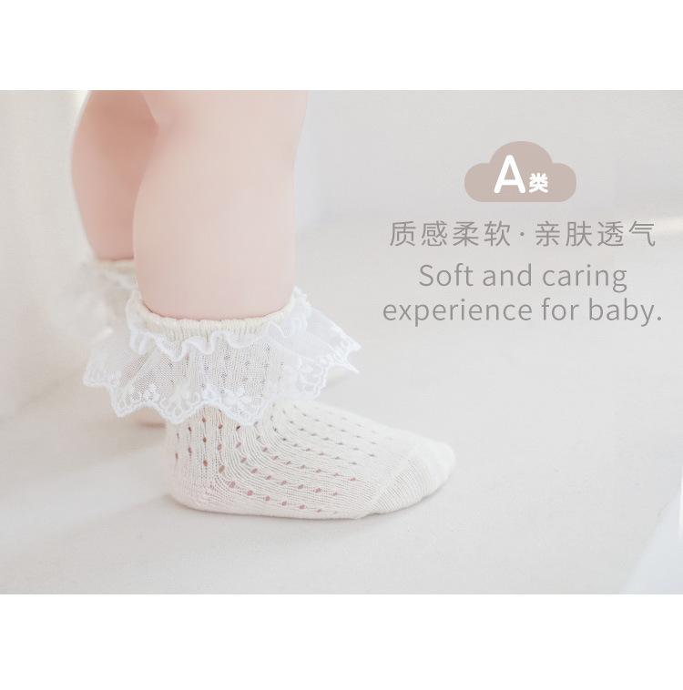 Calcetines para niñas, novedad de verano 2023, calcetines finos de malla hueca para bebés, calcetines cortos de algodón con encaje de princesa.