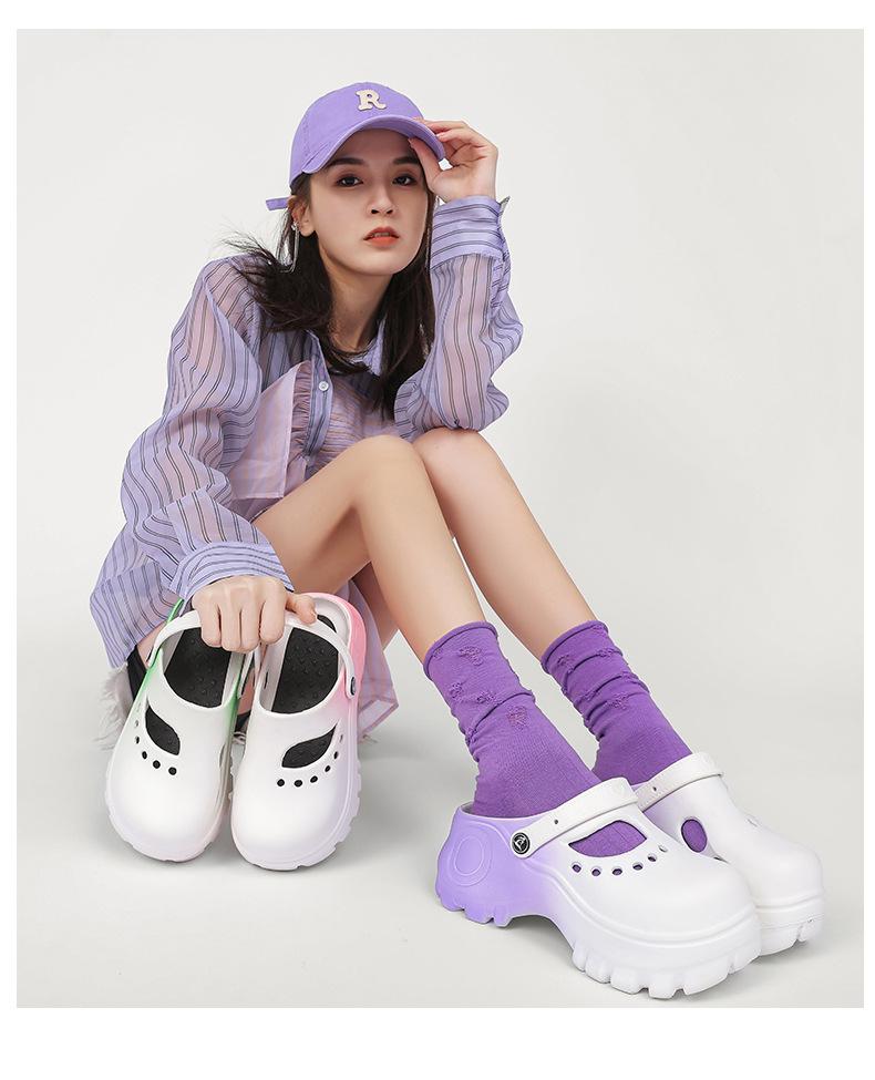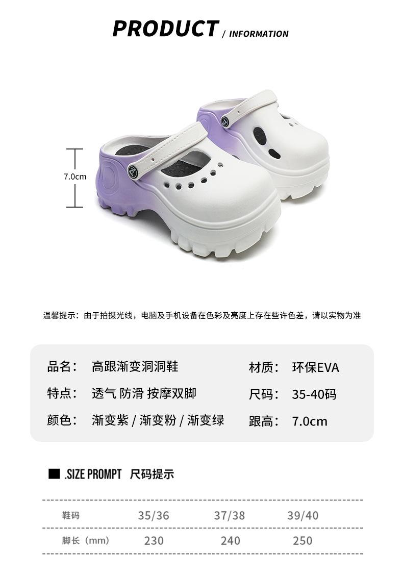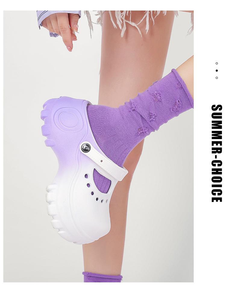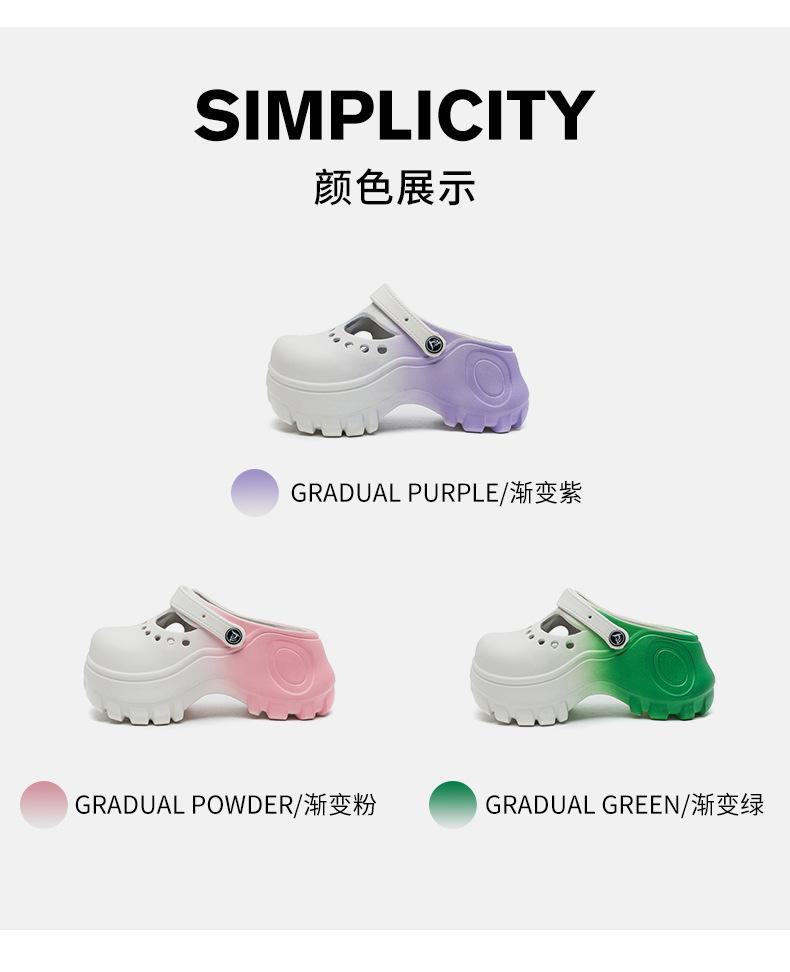 Nuevo Estilo Spot Pantuflas de Agujero de Fondo Grueso para Uso Exterior Verano para Mujer Exterior Degradado Moda Pantuflas Interior Antideslizantes