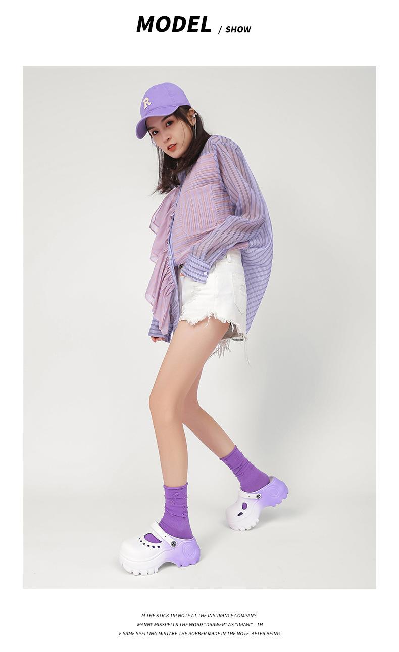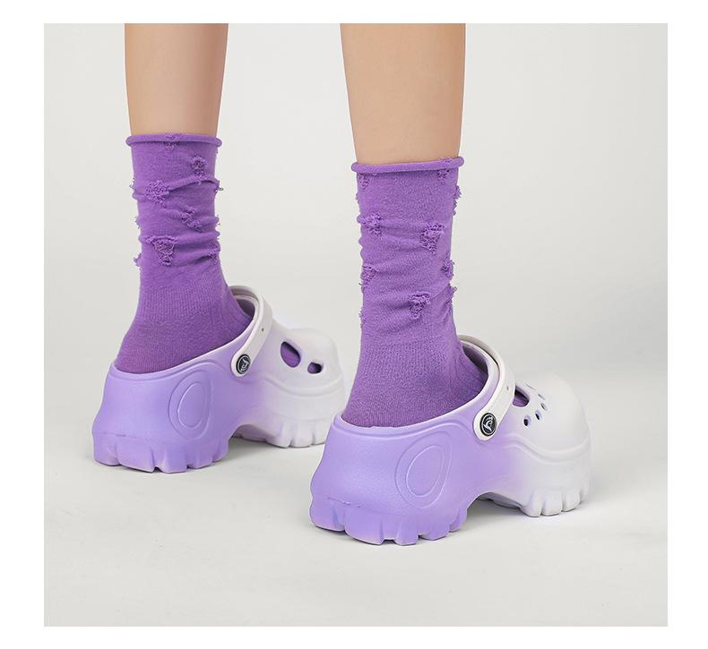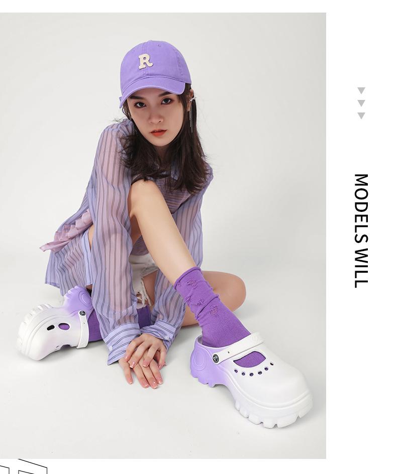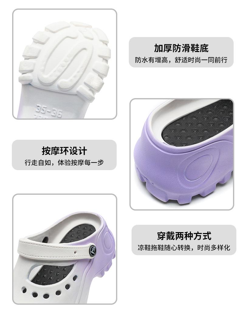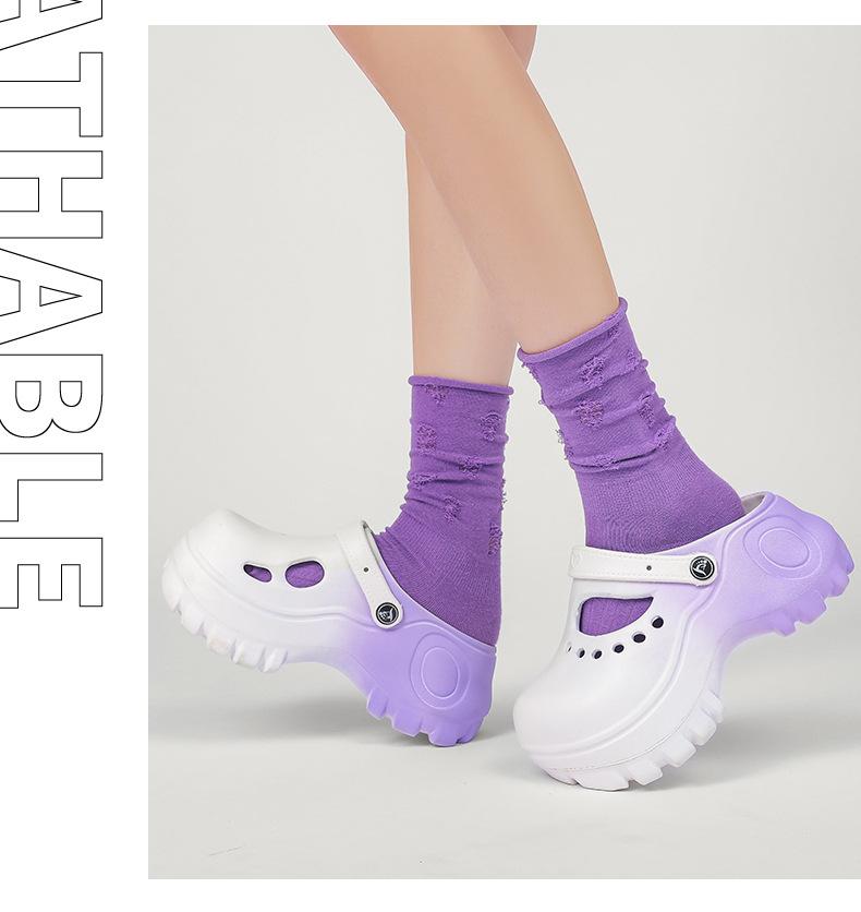 Nuevo Estilo Spot Pantuflas de Agujero de Fondo Grueso para Uso Exterior Verano para Mujer Exterior Degradado Moda Pantuflas Interior Antideslizantes