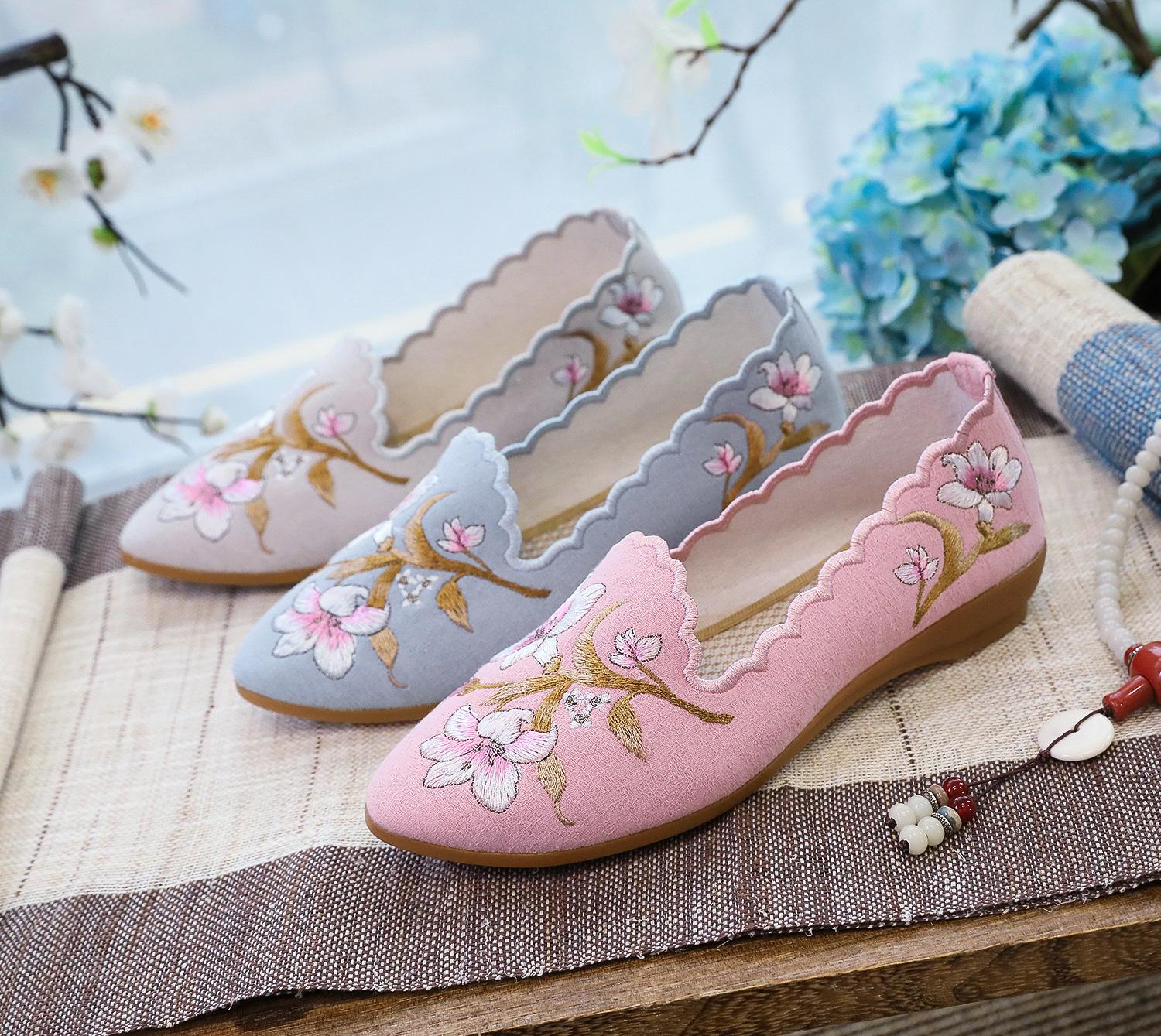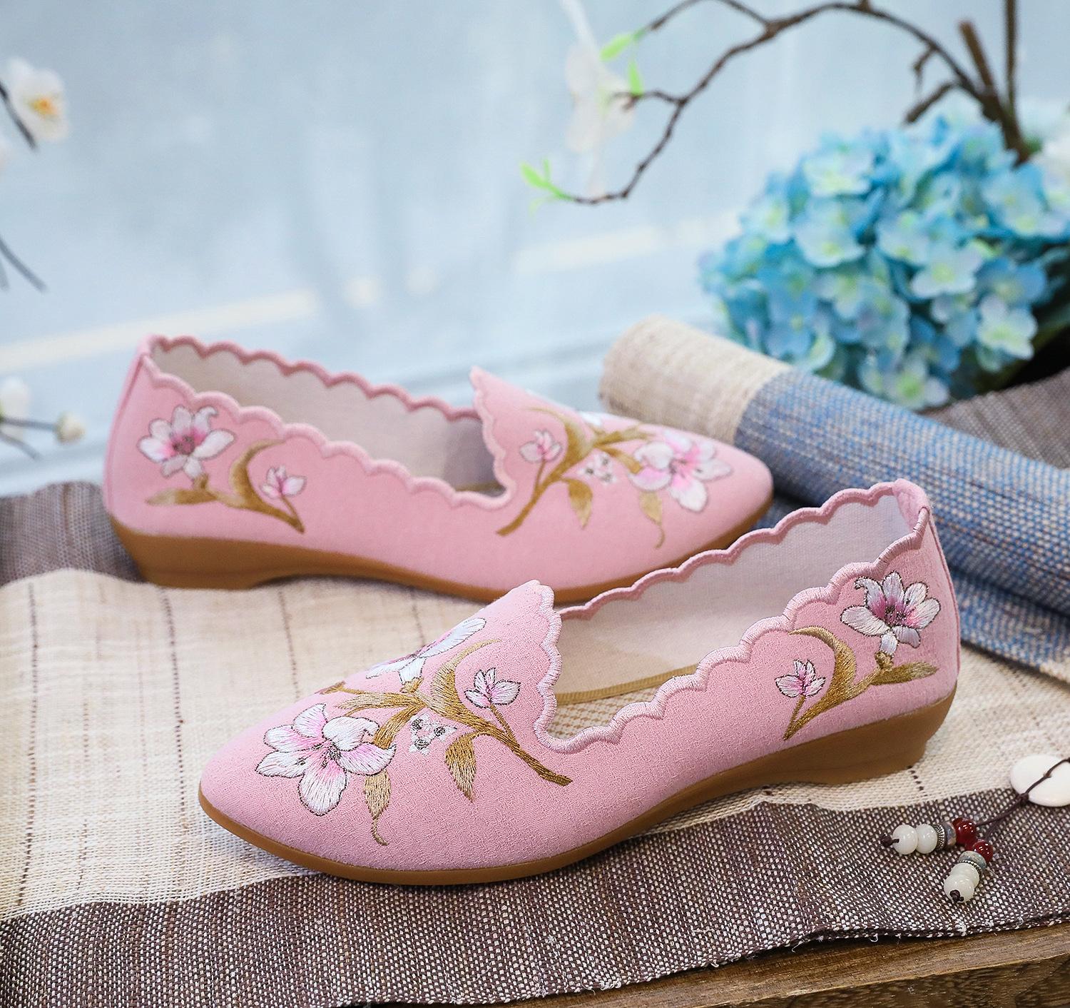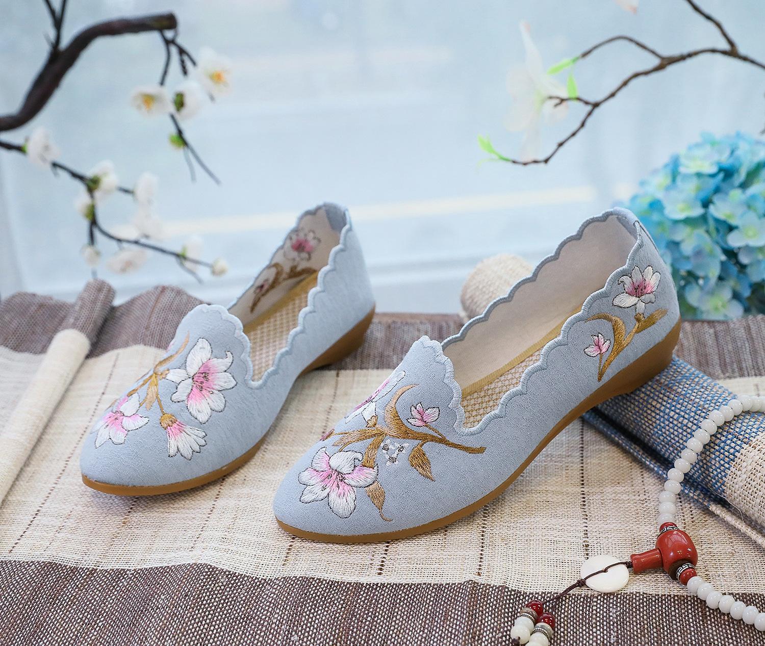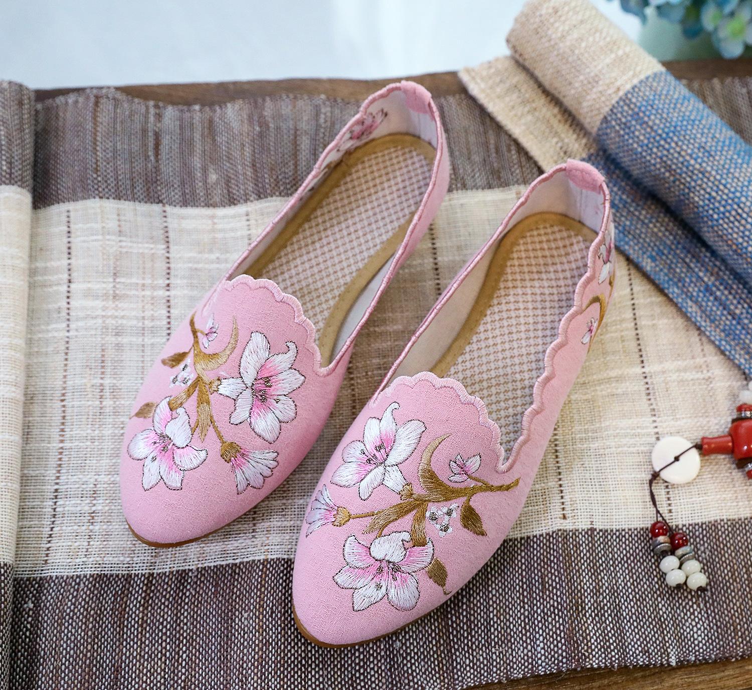 Zapatos planos de suela de res, primavera y verano, bordados tridimensionales, moda, zapatos de tela bordados, zapatos de mujer para madre