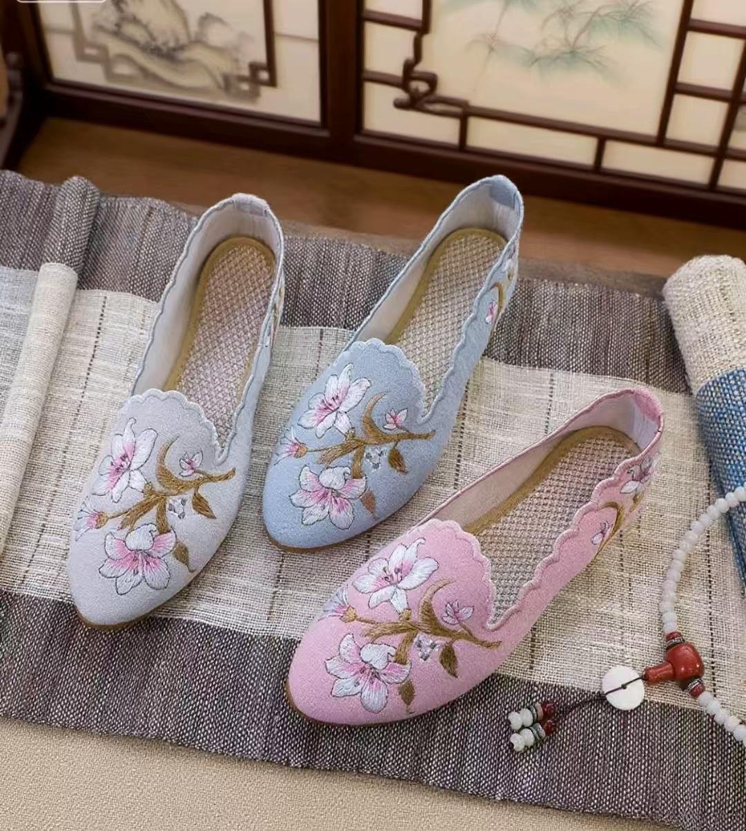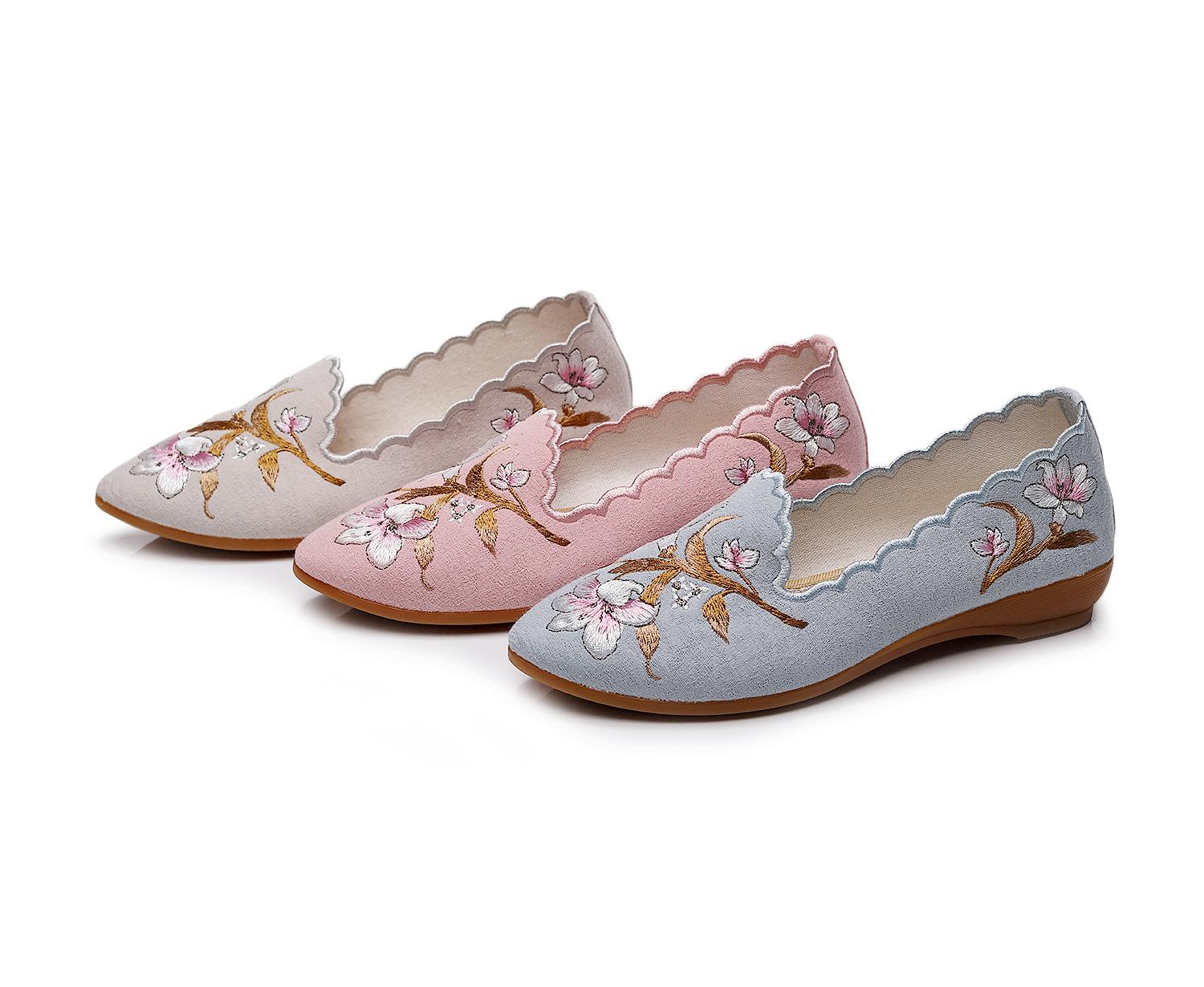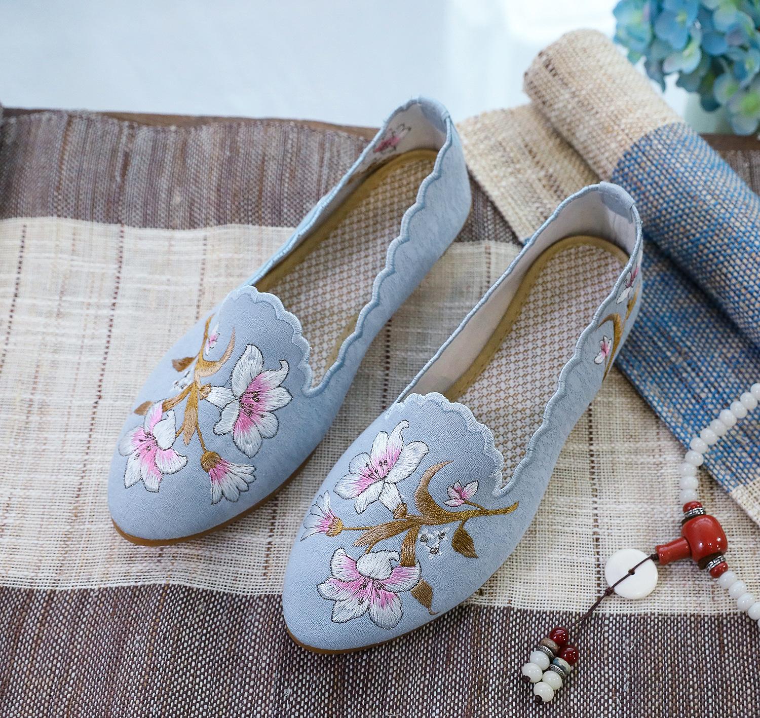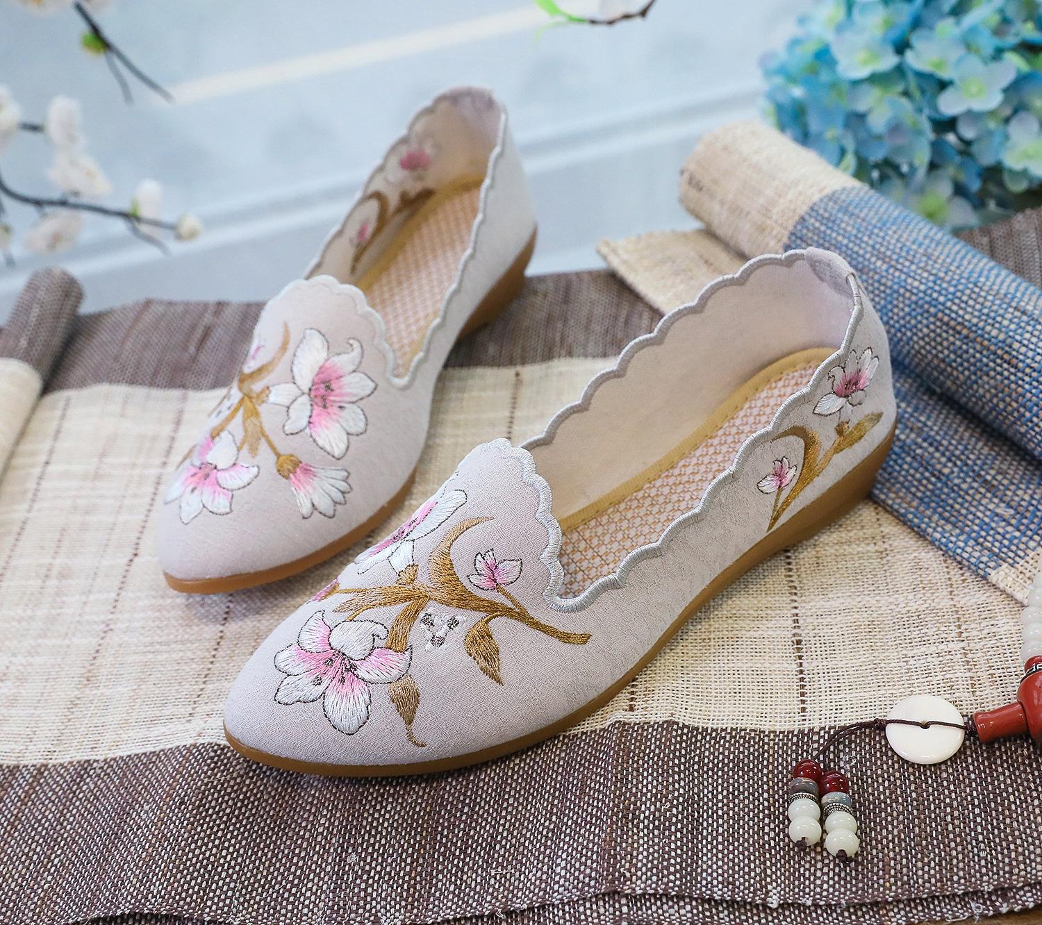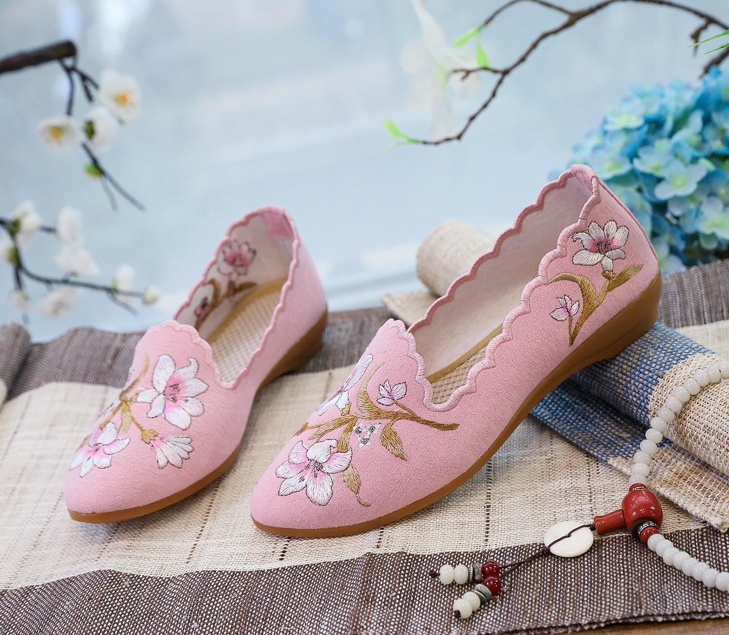 Zapatos planos de suela de res, primavera y verano, bordados tridimensionales, moda, zapatos de tela bordados, zapatos de mujer para madre