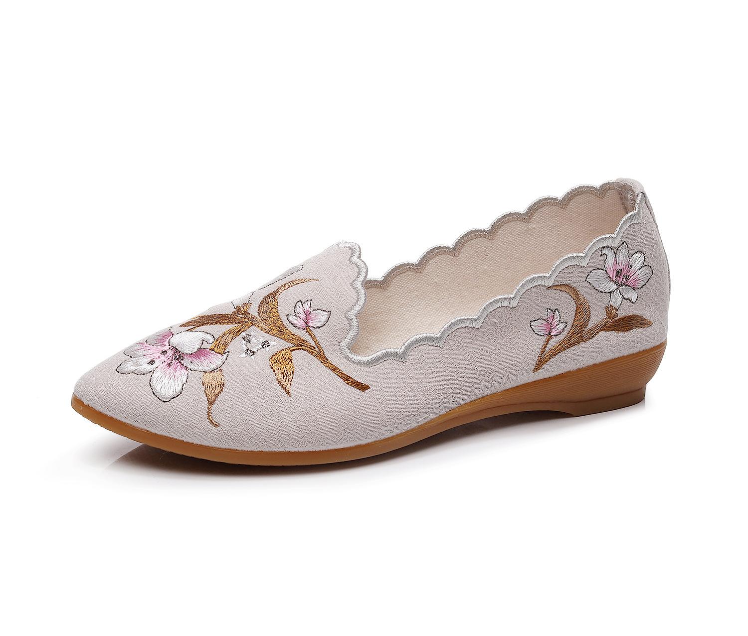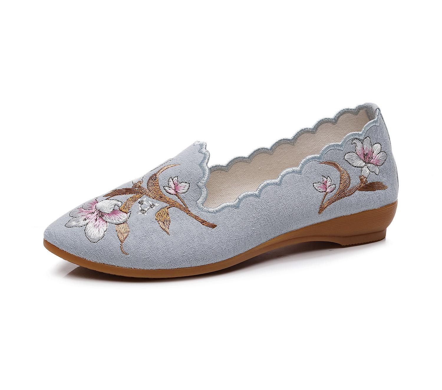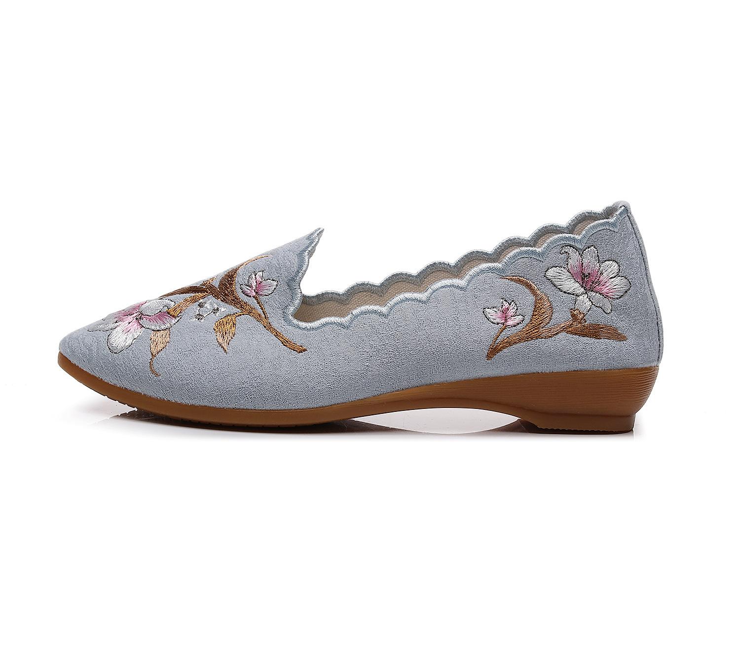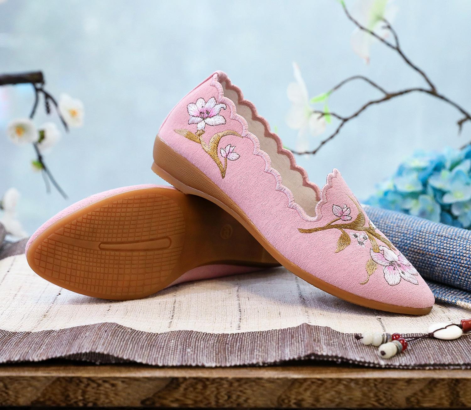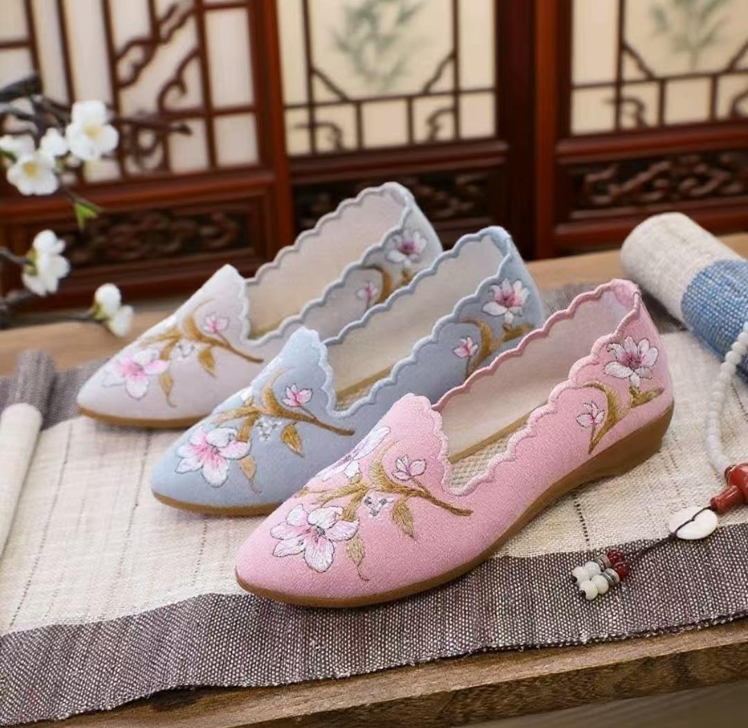 Zapatos planos de suela de res, primavera y verano, bordados tridimensionales, moda, zapatos de tela bordados, zapatos de mujer para madre