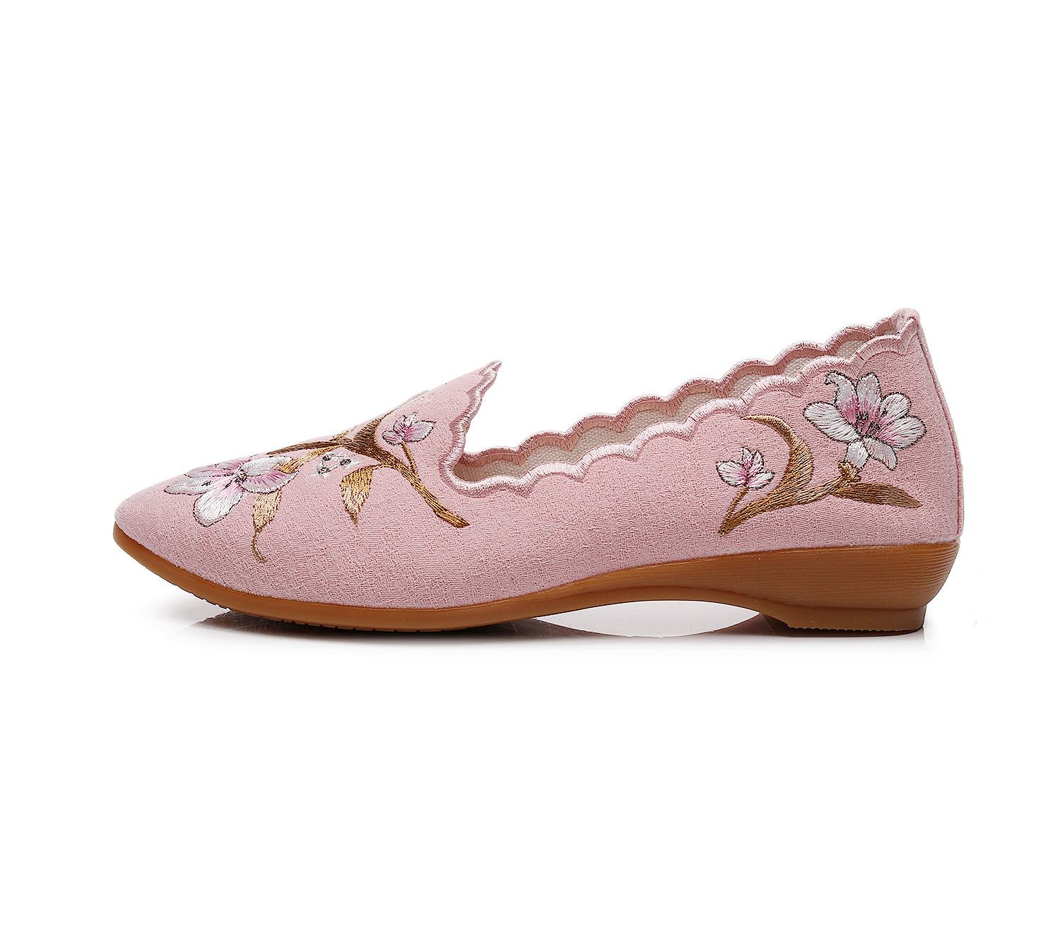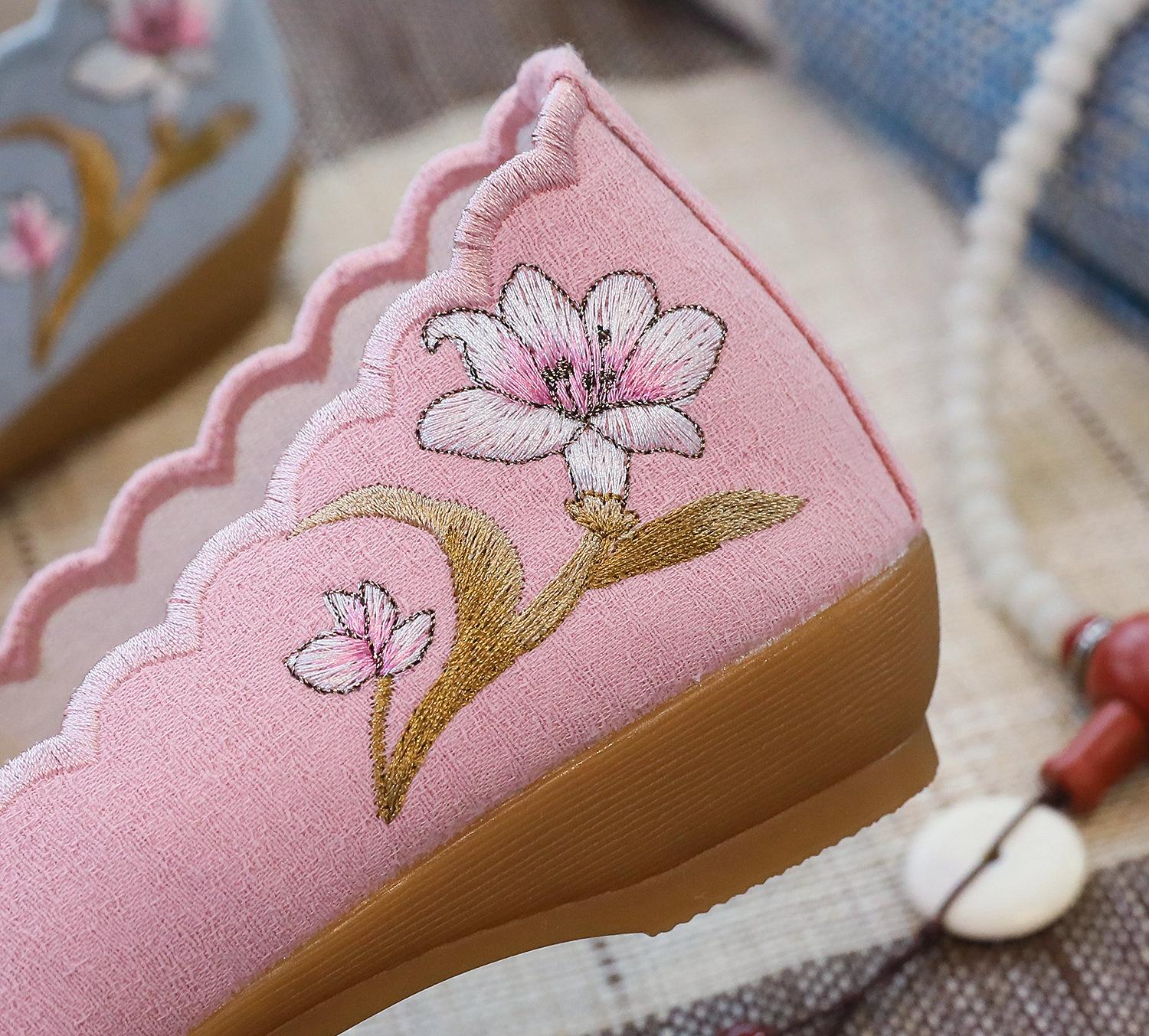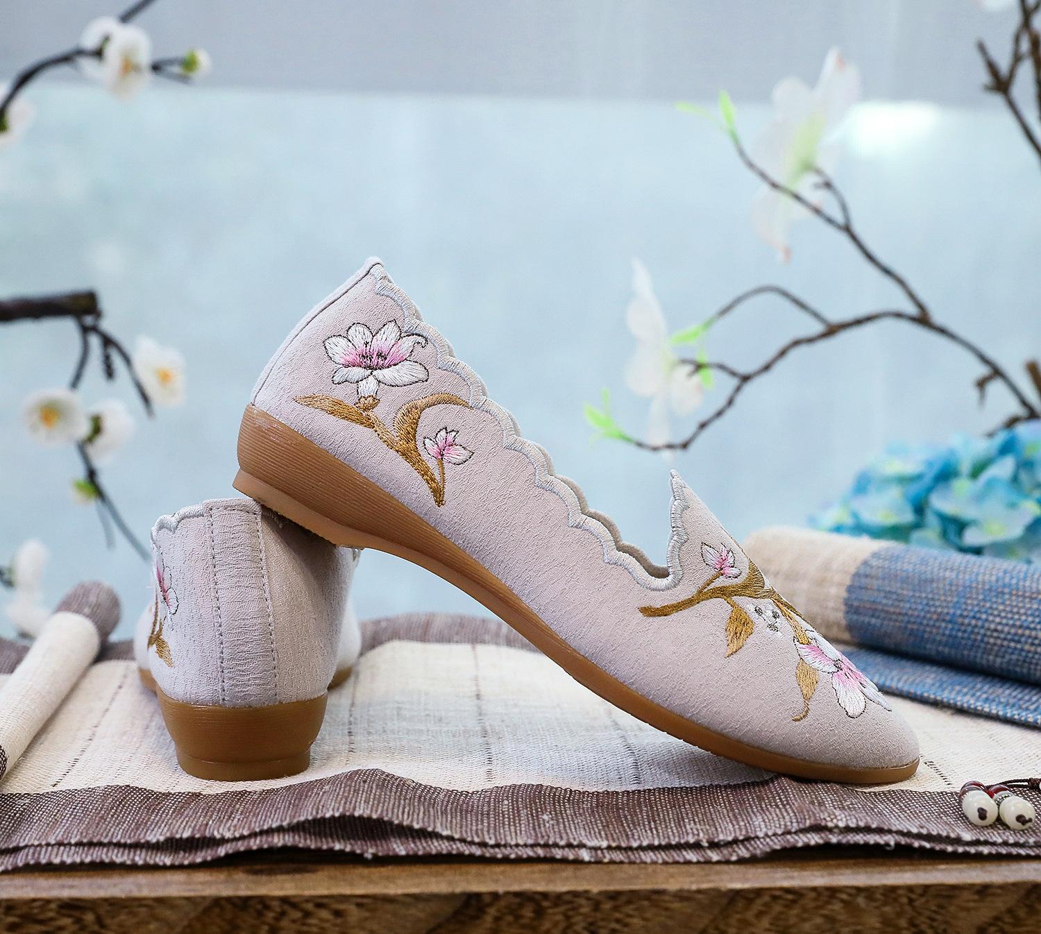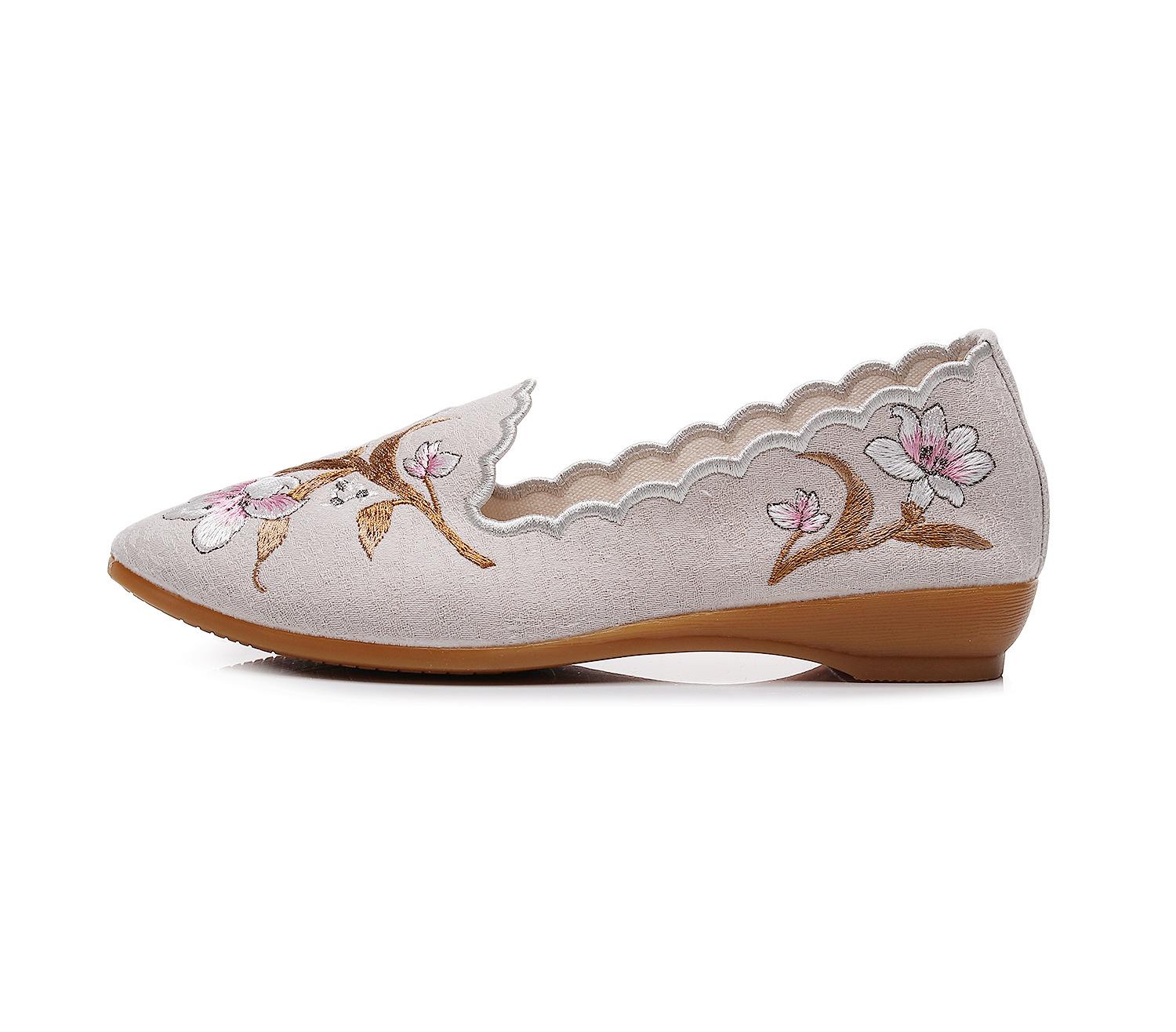 Zapatos planos de suela de res, primavera y verano, bordados tridimensionales, moda, zapatos de tela bordados, zapatos de mujer para madre