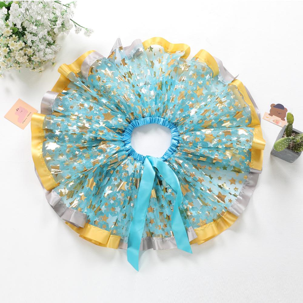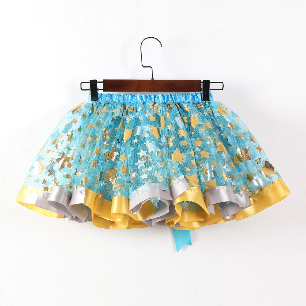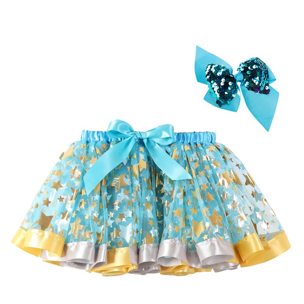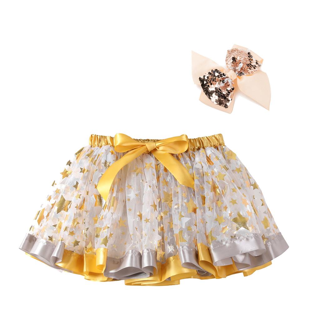 Falda tutú para niñas europeas y americanas con forro de malla, falda con estampado de estrellas y horquilla, falda corta de rendimiento, ropa para niños