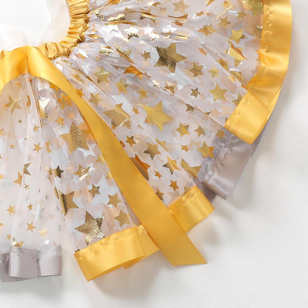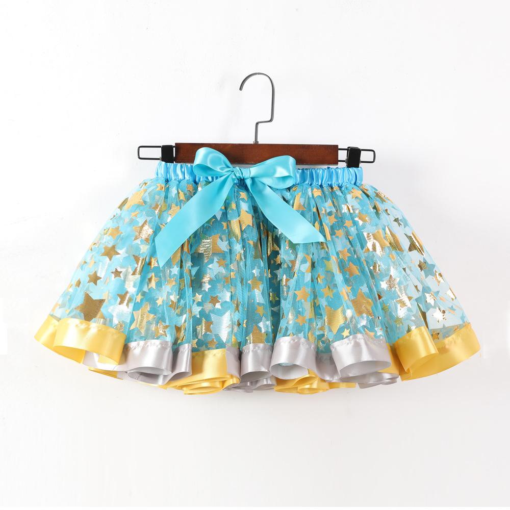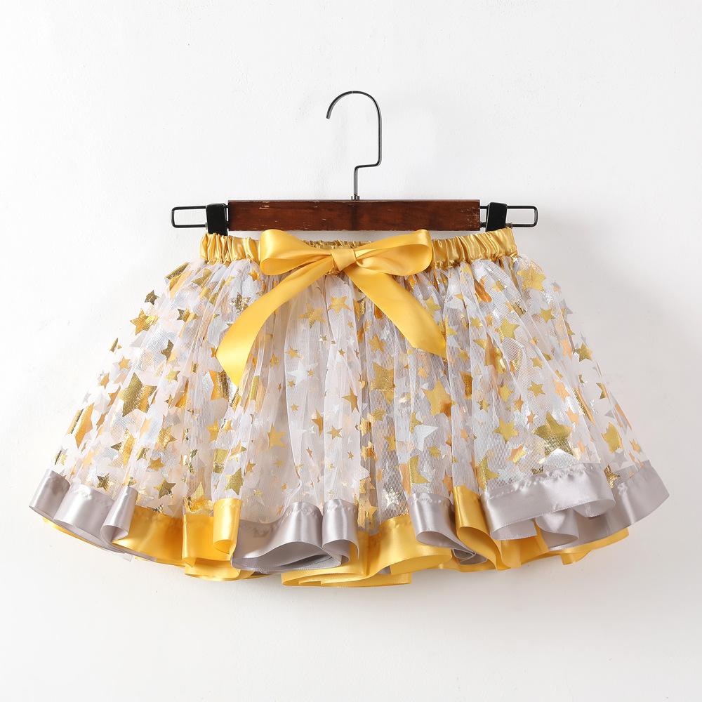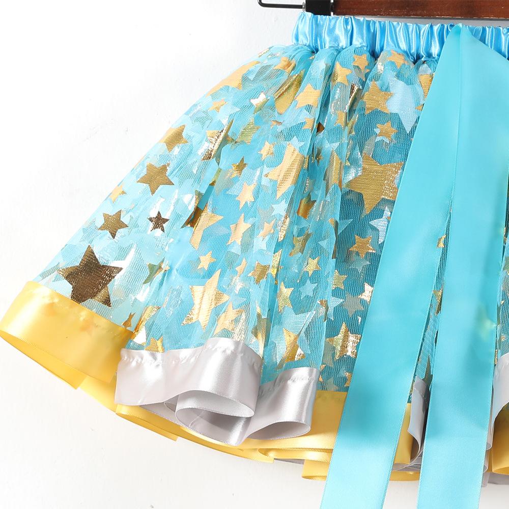 Falda tutú para niñas europeas y americanas con forro de malla, falda con estampado de estrellas y horquilla, falda corta de rendimiento, ropa para niños