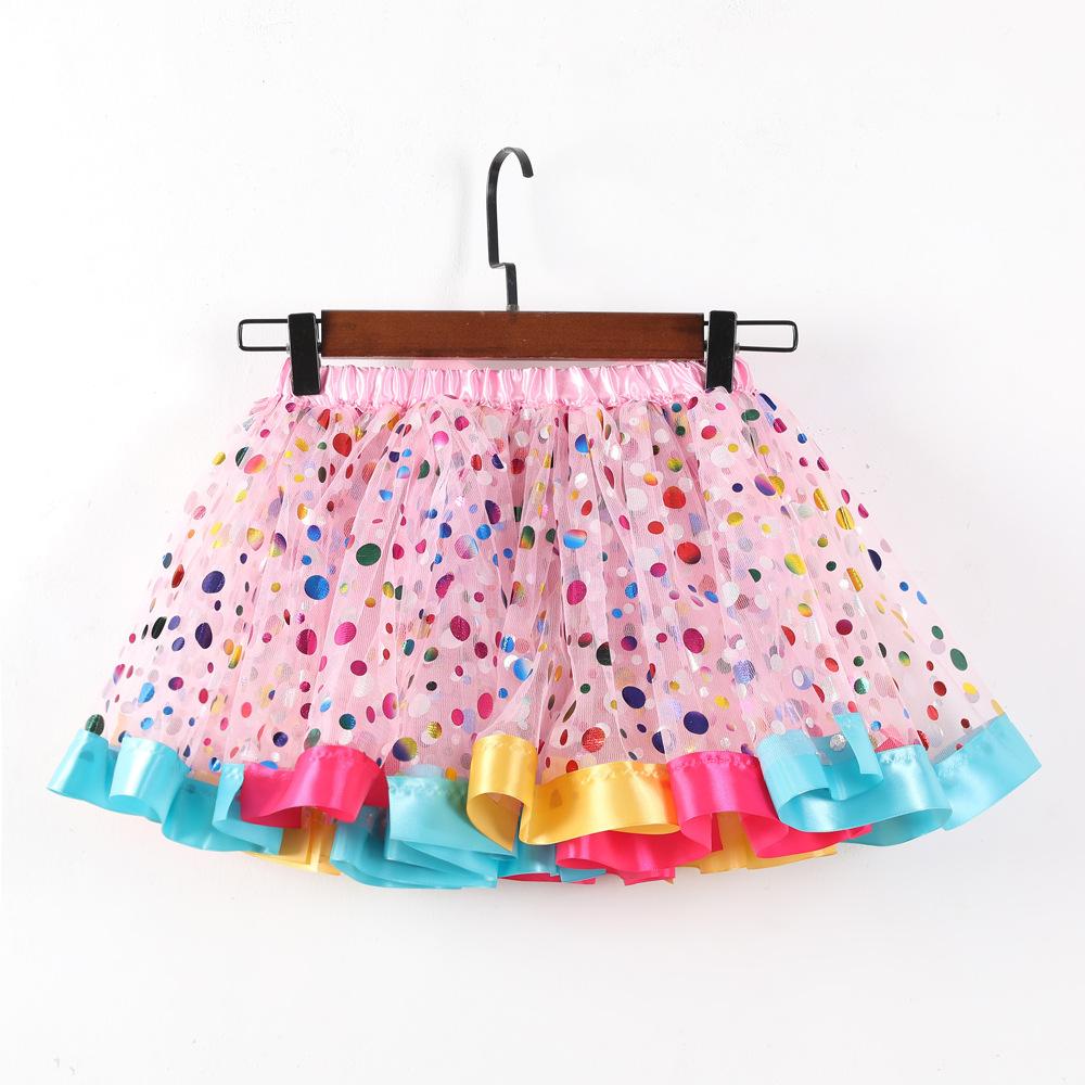 Falda tutú de malla arcoíris europea y americana para niñas, falda de princesa convexa de media longitud con tocado de lazo, tutú
